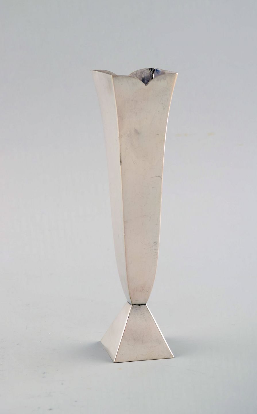 Slank modernistisk sølvvase , WMF (Württembergische METALLWARENFABRIK). Tyskland, 1950'erne. I flot stand. Måler: 19 x 4,5 cm. Stemplet.