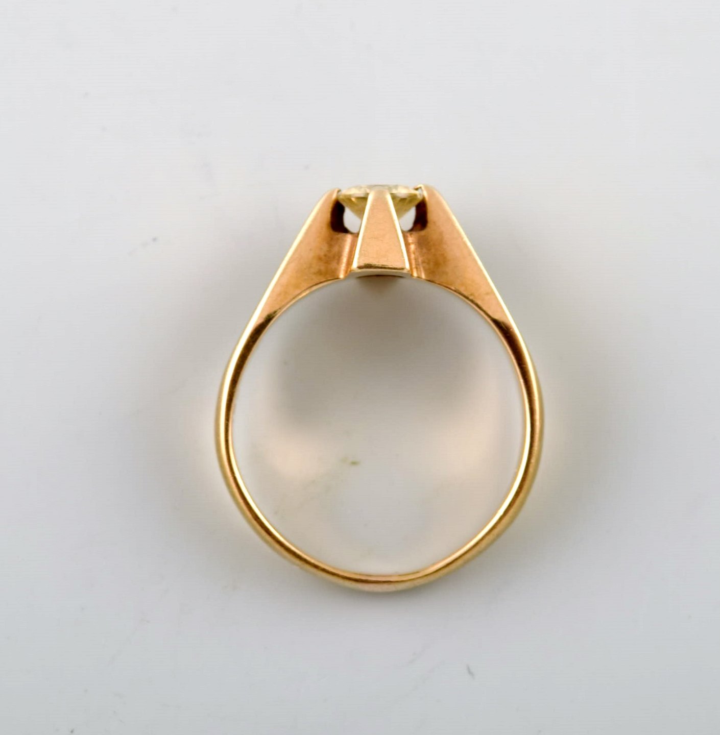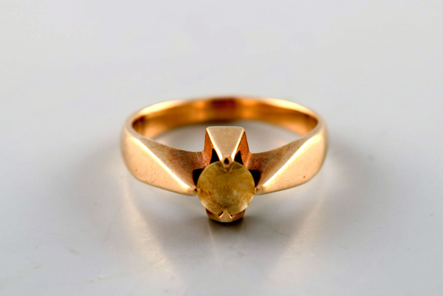 Dansk guldsmed. Art deco ring af 14 karat guld prydet med sten. 1930/40'erne. I flot stand. Stemplet: 585. Måler: 18 mm. I de fleste tilfælde kan vi mod et gebyr (kr. 300) pr ring, få ændret størrelsen.