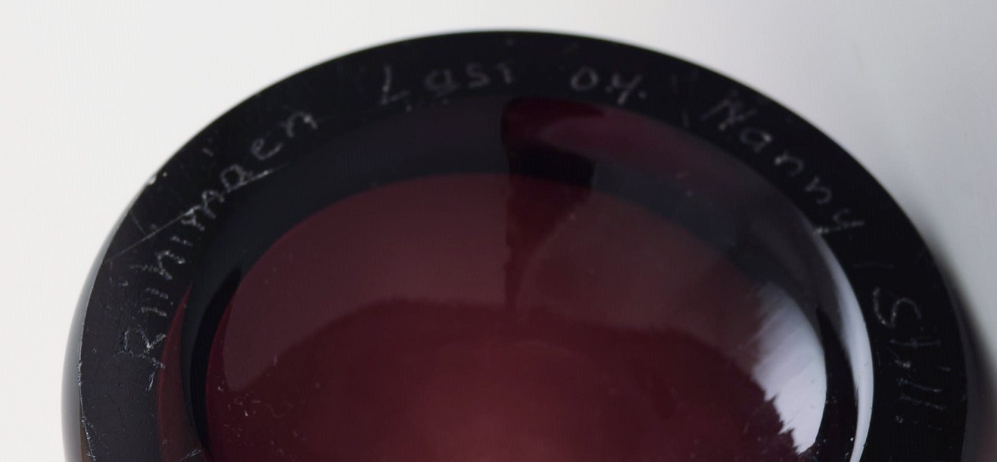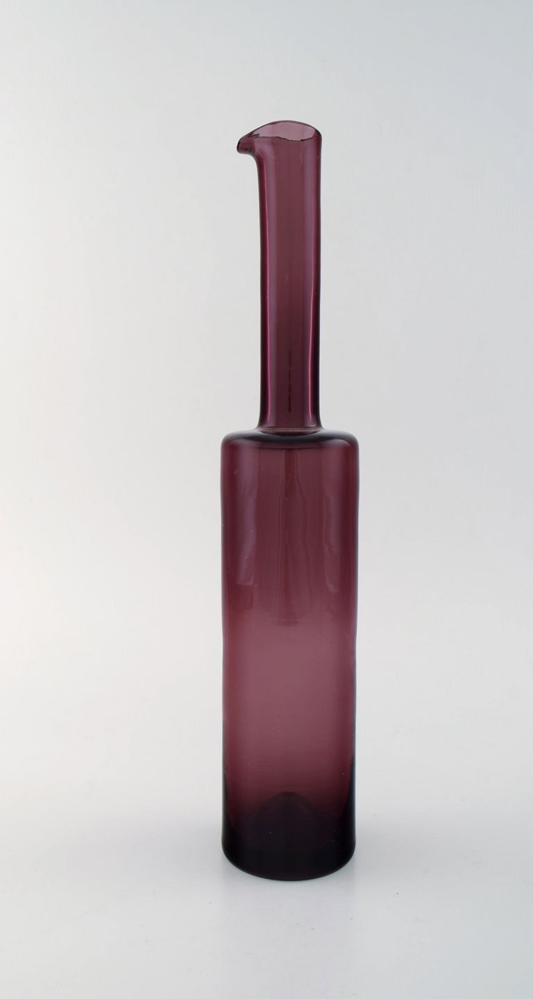 Nanny Still for Riihimäen Lasi, Finnish art glass decoration bottle vase/ pitcher. In perfect condition. Beautiful purple color. 1960 / 70's. Measures: 33,5 x 6 cm.