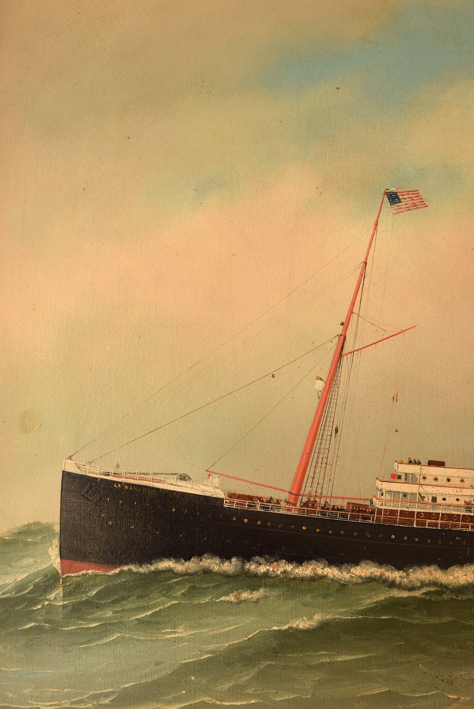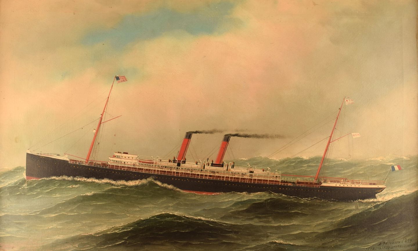 Antonio Jacobsen: "La Navarre" liner (1893-1925) from Transat. Oil on canvas.