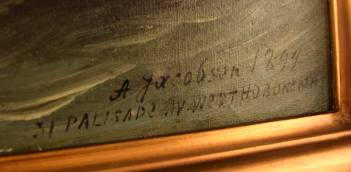 Signed and dated: A. Jacobsen 1897, 31 Palisade Av. West Hoboken N.