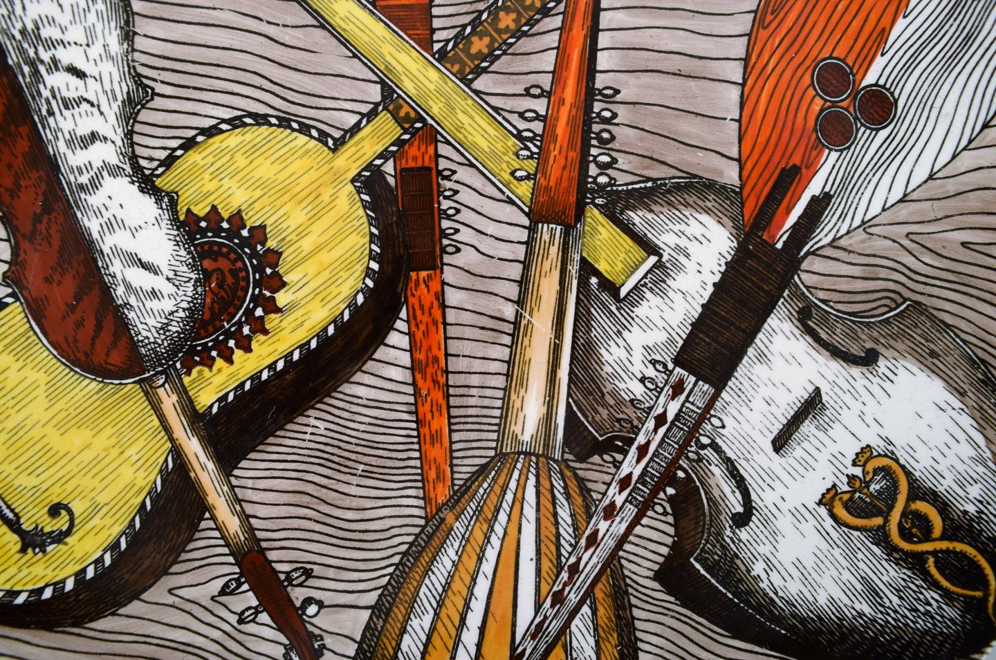 Fornasetti, Milano porcelænstallerken. "Instrumenti musicali". Håndmalet. Made in Italy. Diameter: 26 cm. I perfekt stand.