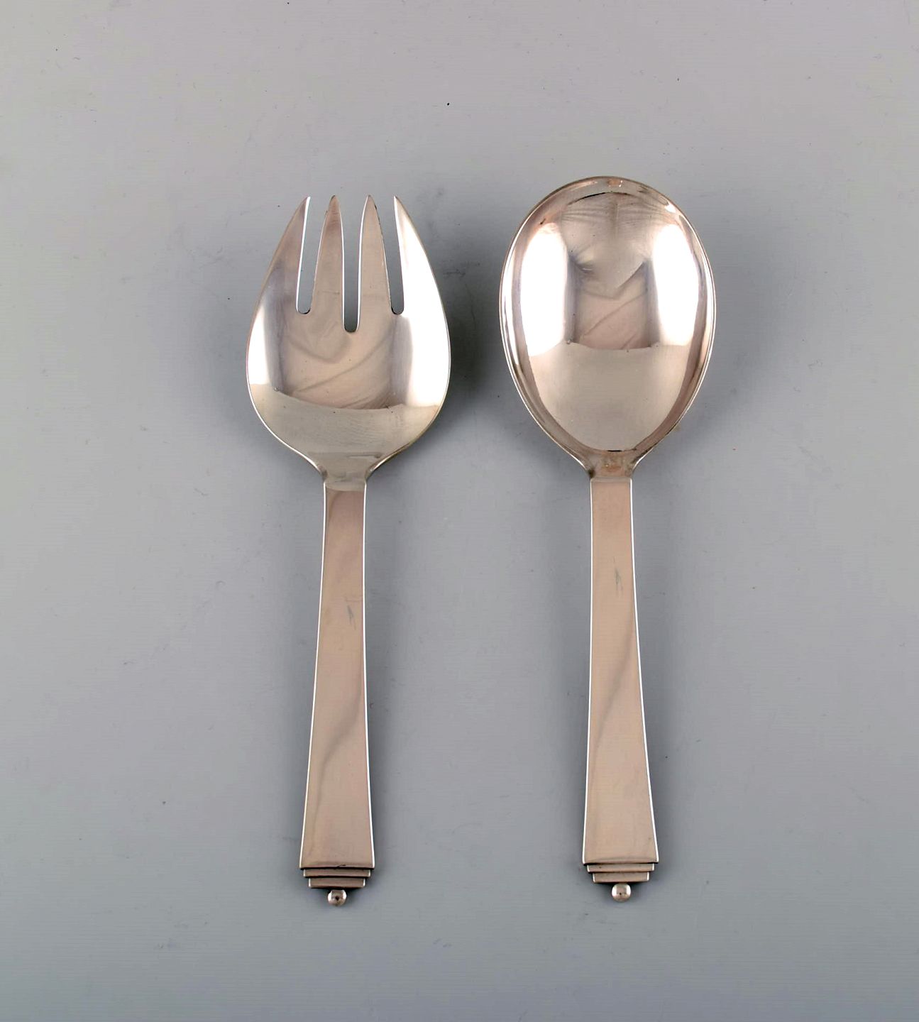 Georg Jensen Pyramid serving cutlery in sterling silver. Designed by Harald Nielsen 1933-44. In perfect condition. Measures: 25 cm. Stamped. In very good condition.