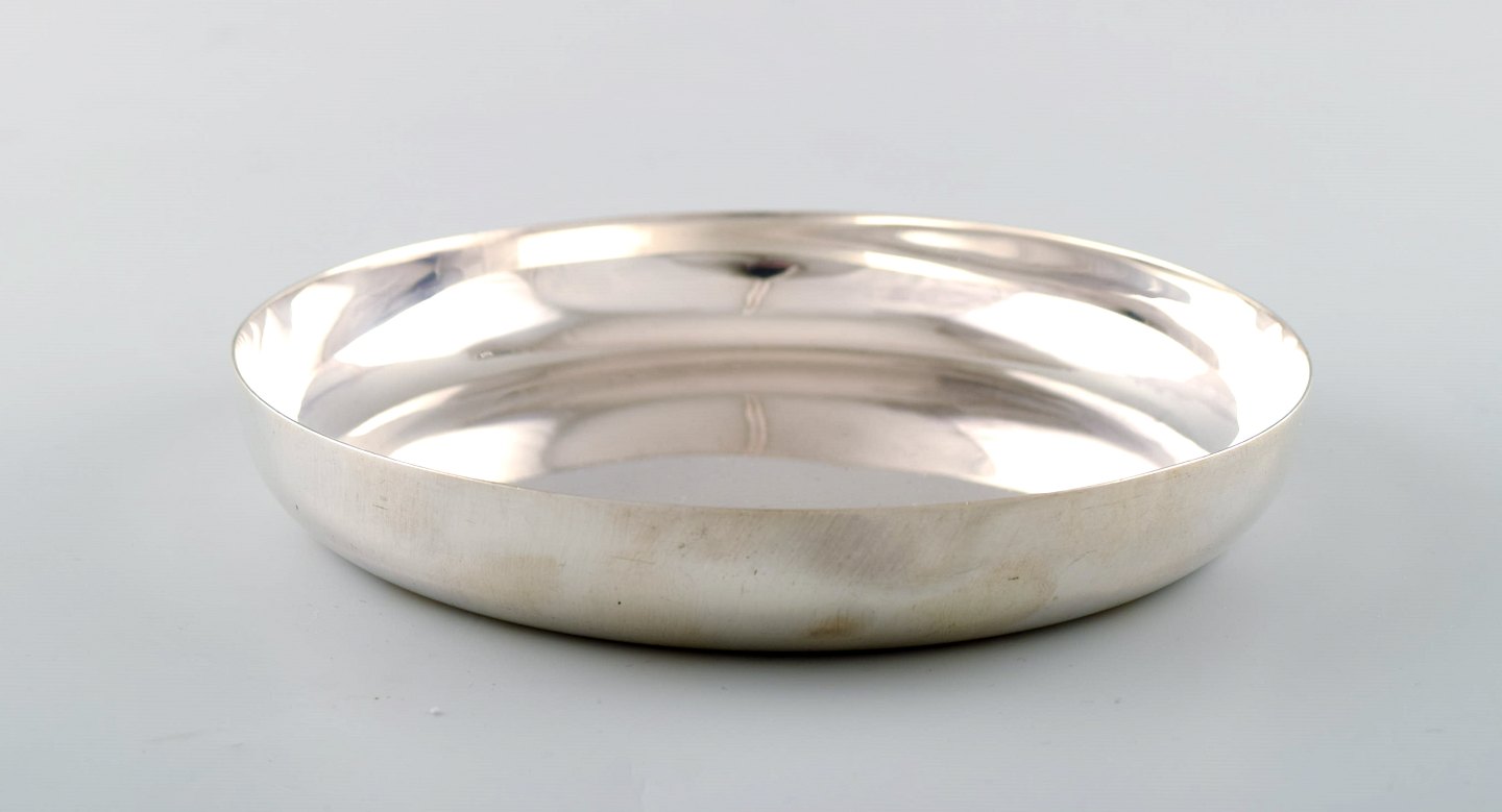 WIWEN NILSSON Lund, Sverige 1941-1956. Champagneflaske bordskåner / lav skål i sterlingsølv. Modernistisk design, 1942. Stemplet og dateret. I flot stand. Måler: 15,5 x 2,5 cm.