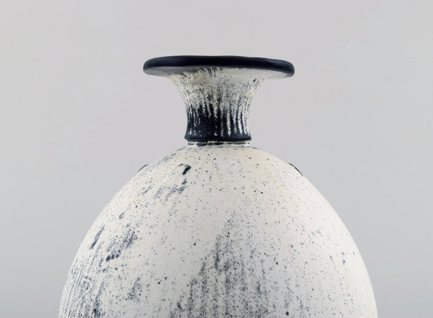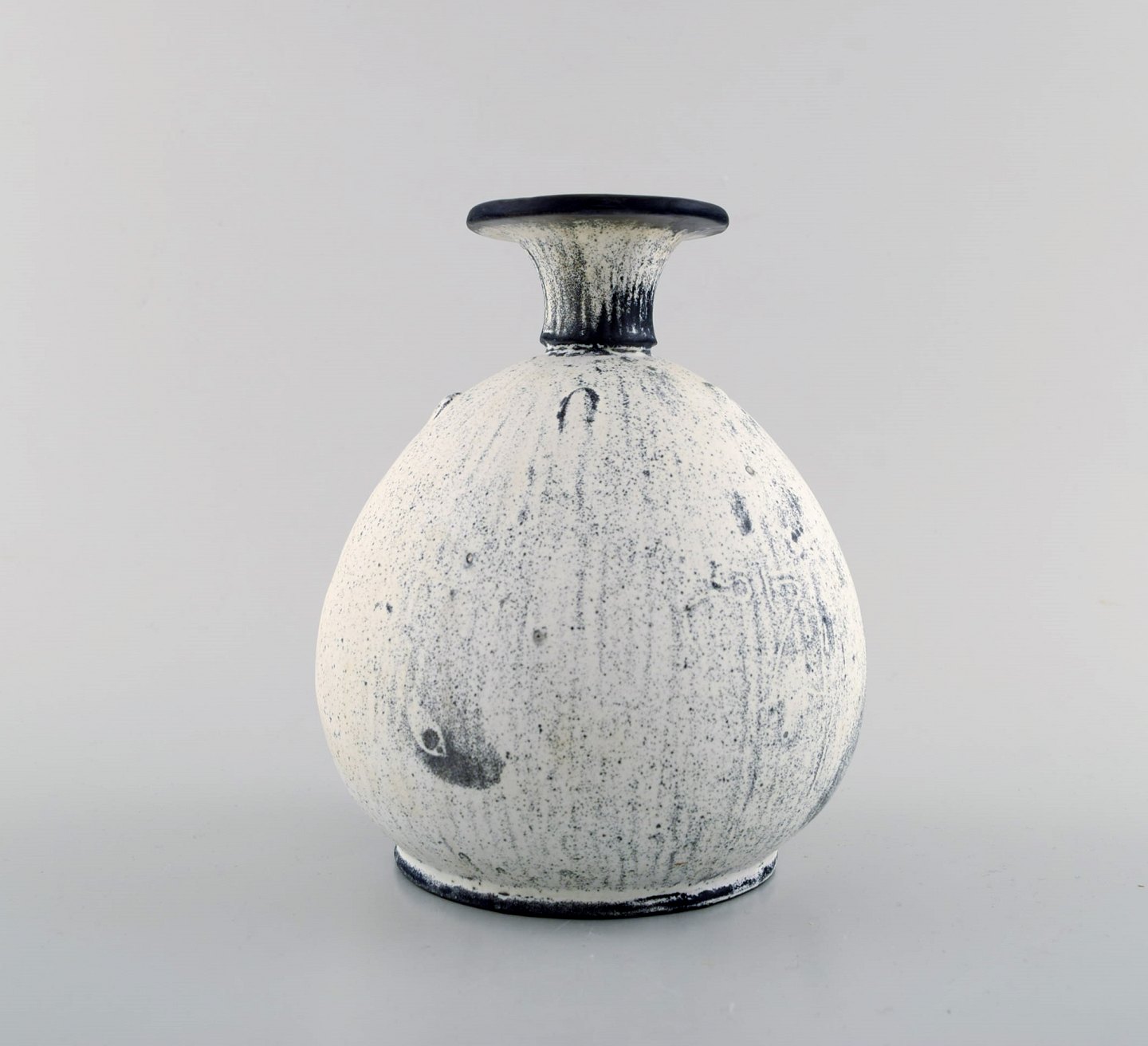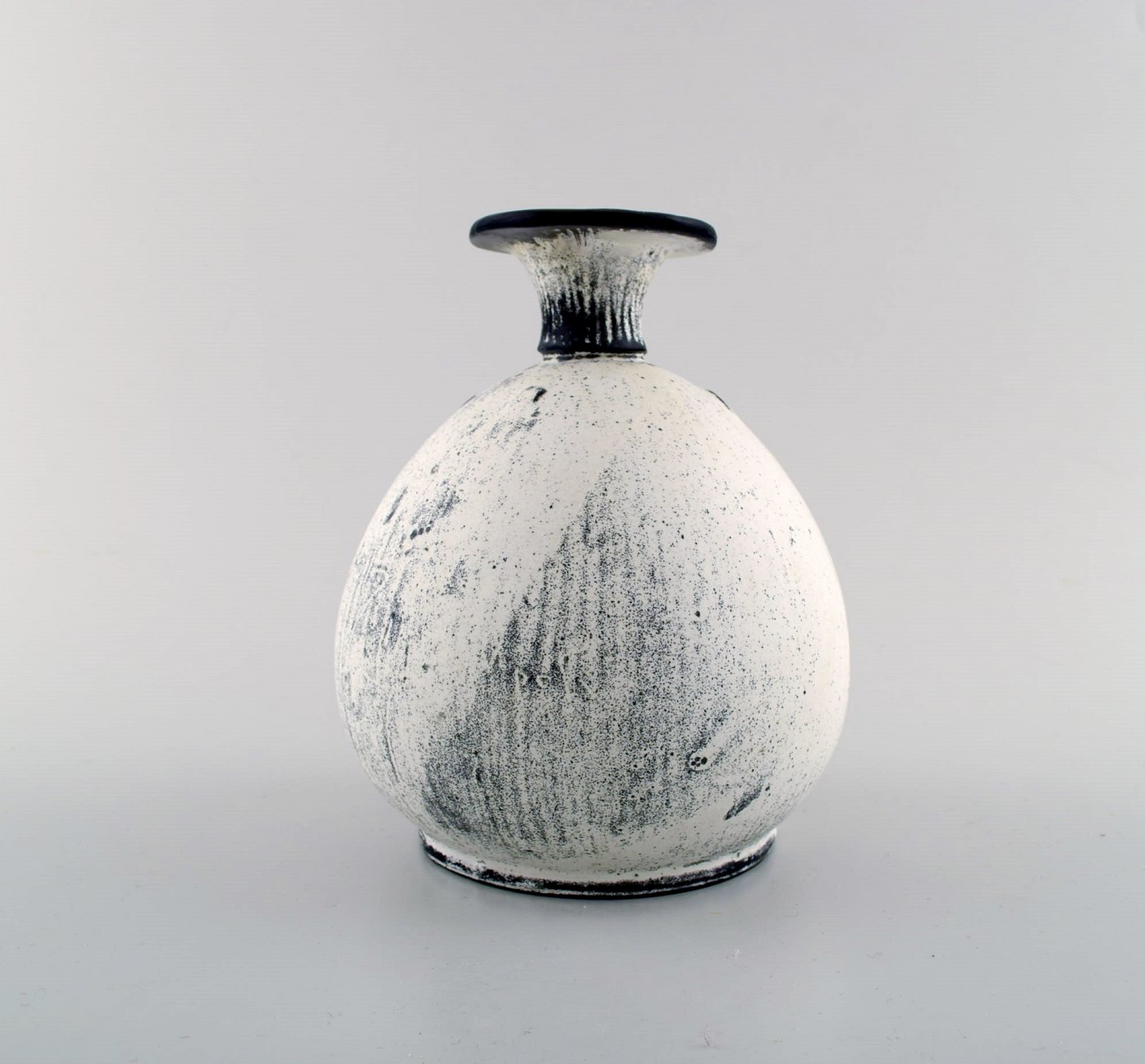 Kähler, HAK, sjælden glaseret stentøjsvase, 1930'erne. Designet af Svend Hammershøi. Smuk gråsort dobbeltglasur. Måler : 16 x 14 cm. Stemplet. I perfekt stand.