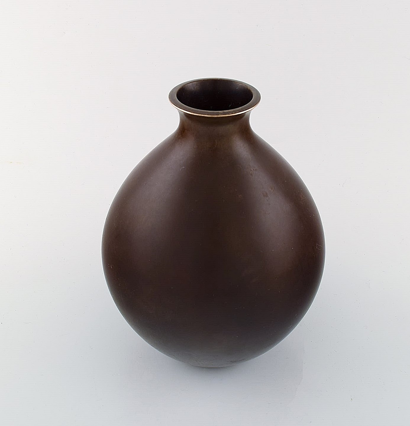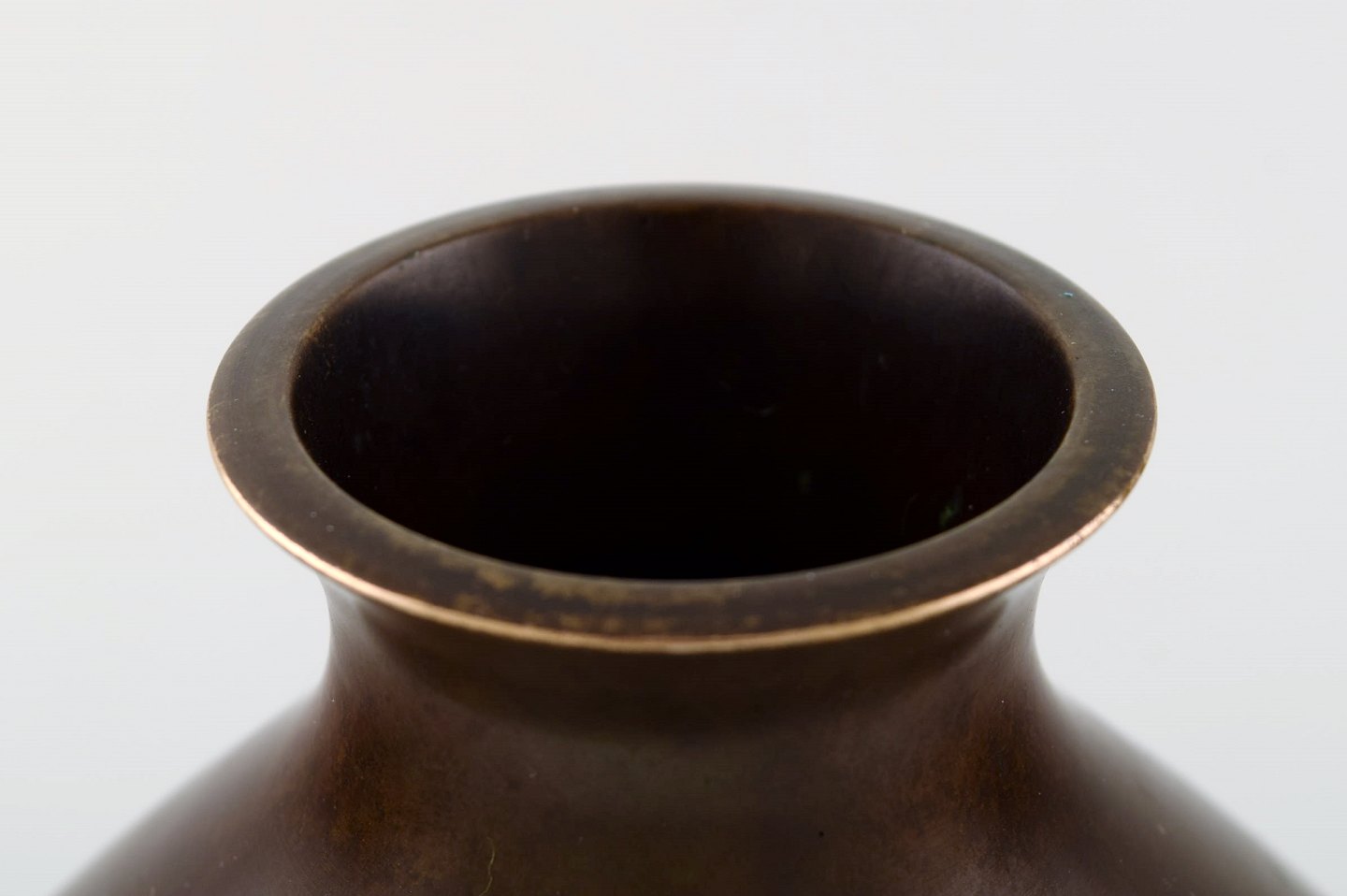 Just Andersen bronzevase, modelnummer B 1487. 1930'erne. Stemplet. Flot stand, smuk patina. Måler 19 x 16 cm.