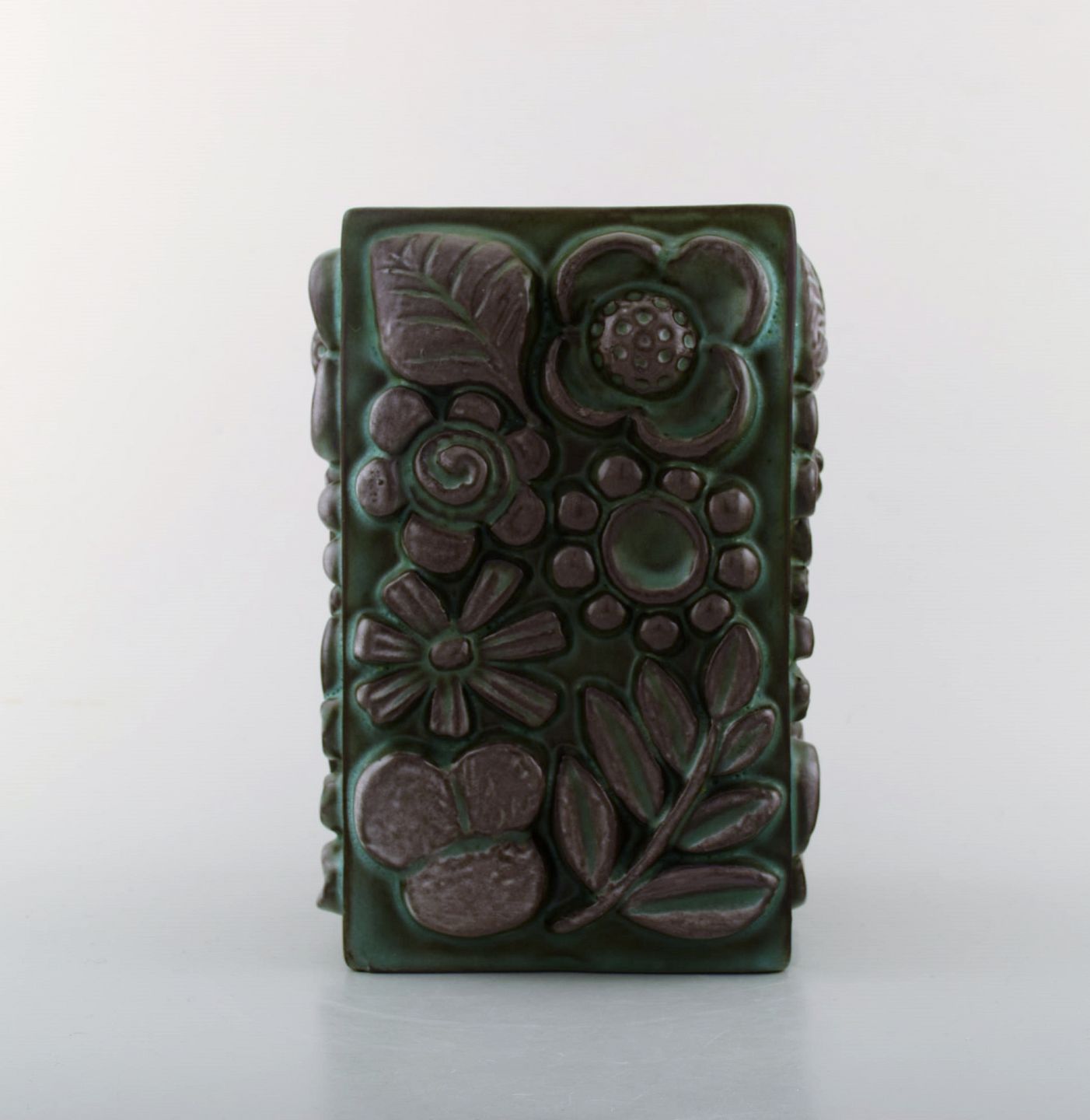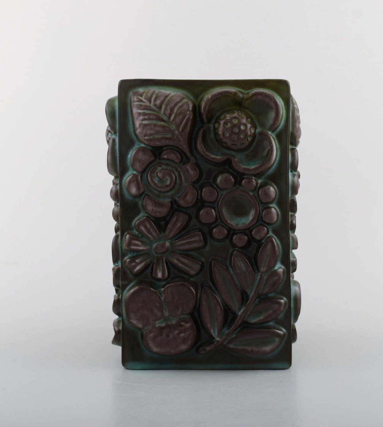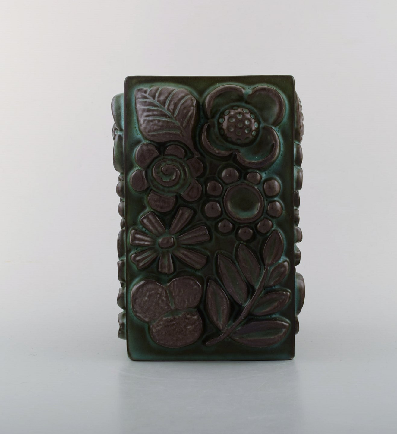 Berit Ternell for Upsala-Ekeby. Keramik vase med blomster i relief.