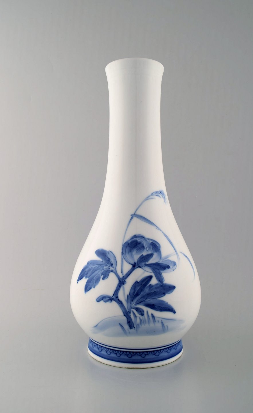 Oluf Jensen for Royal Copenhagen. Stor unika porcelænsvase med slank hals. Håndmalet med blomster. 1921.