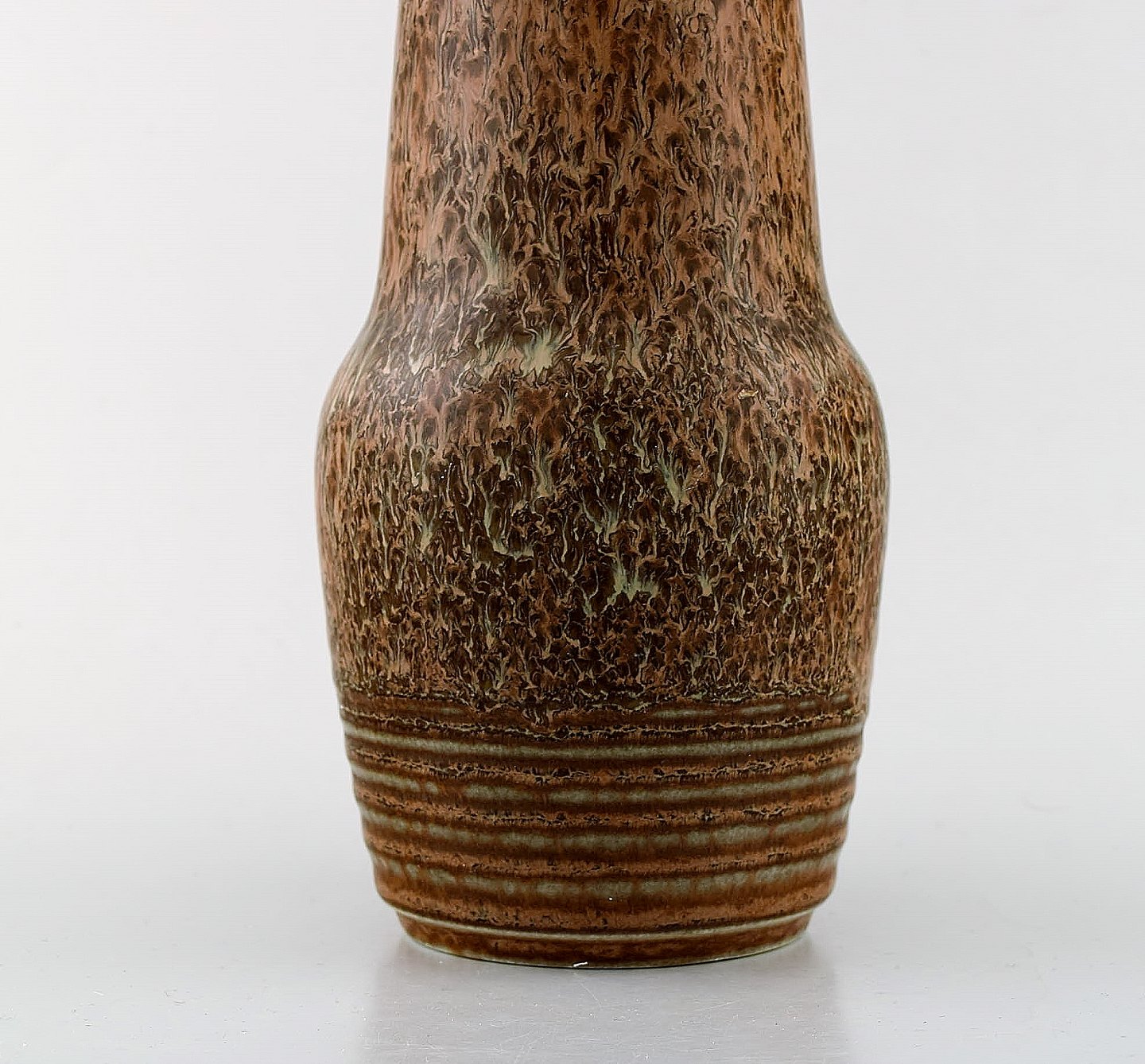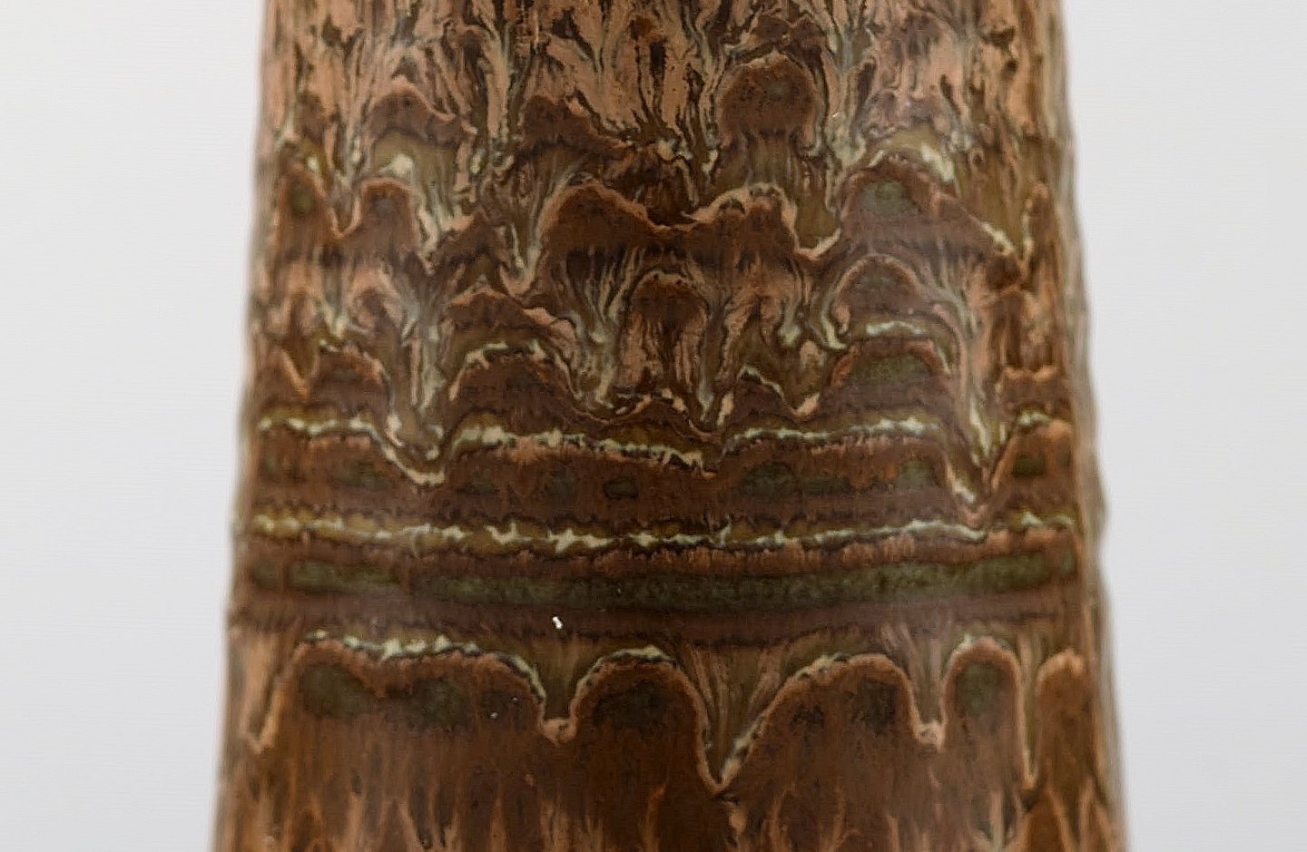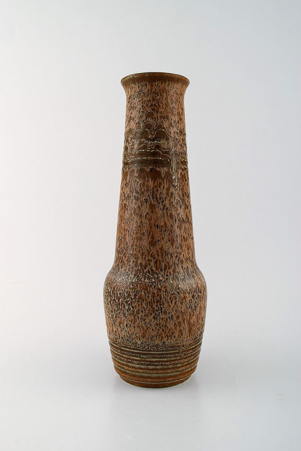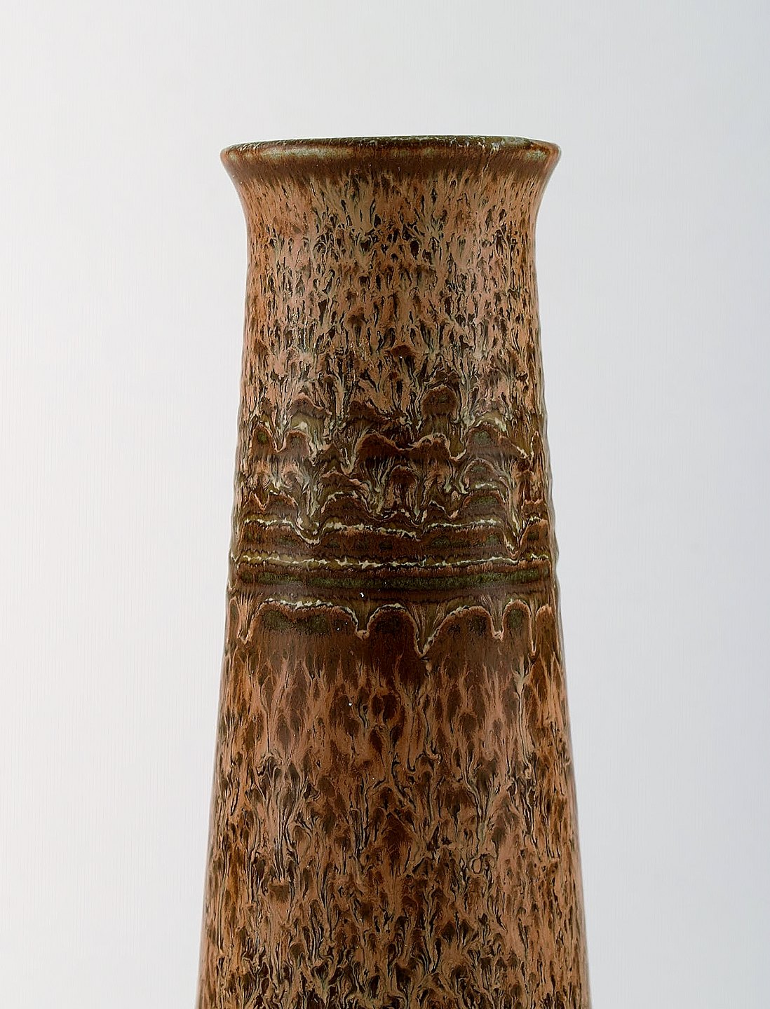 Stor Rörstrand/Rørstrand stentøjsvase af Gunnar Nylund. 28 cm. høj. Diameter 11 cm. I perfekt stand. Flot glasur i brune nuancer. 1. sortering. Stemplet.