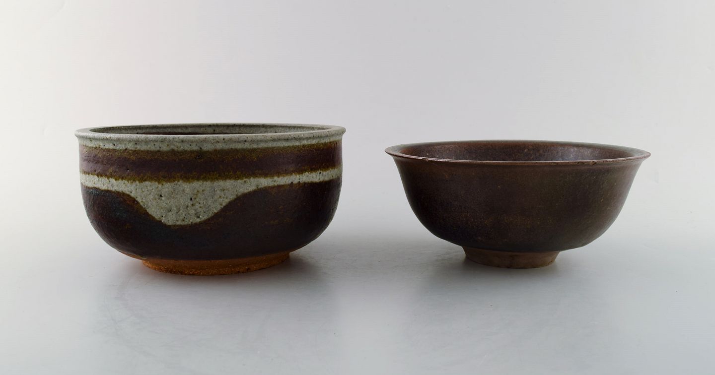 Niels Oluf 'Jeppe' Thorkelin-Eriksen (1926-1981). Dansk keramiker. 2 unika skåle i glaseret stentøj. 1960/70'erne.