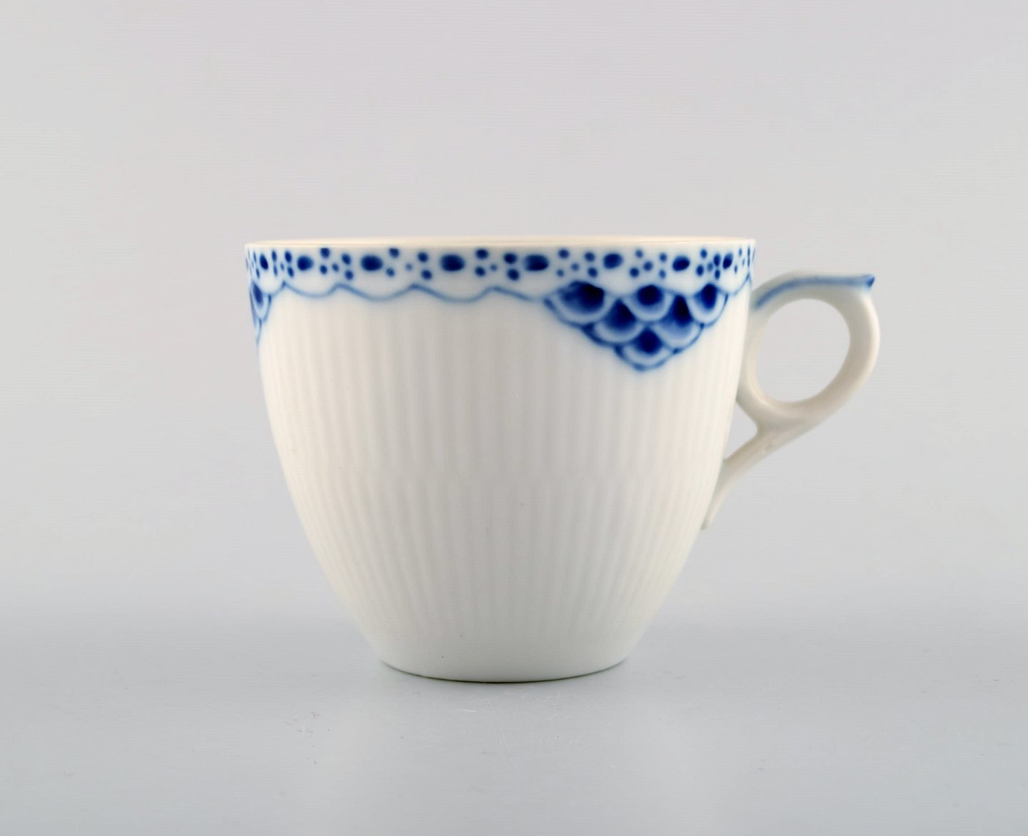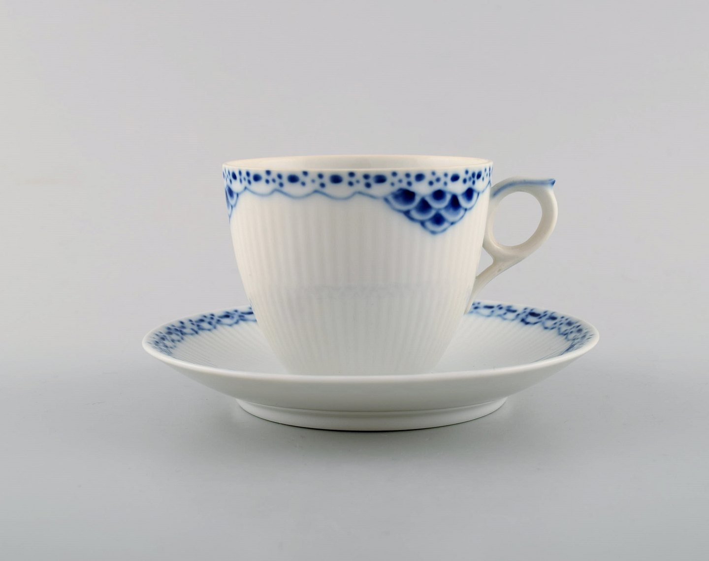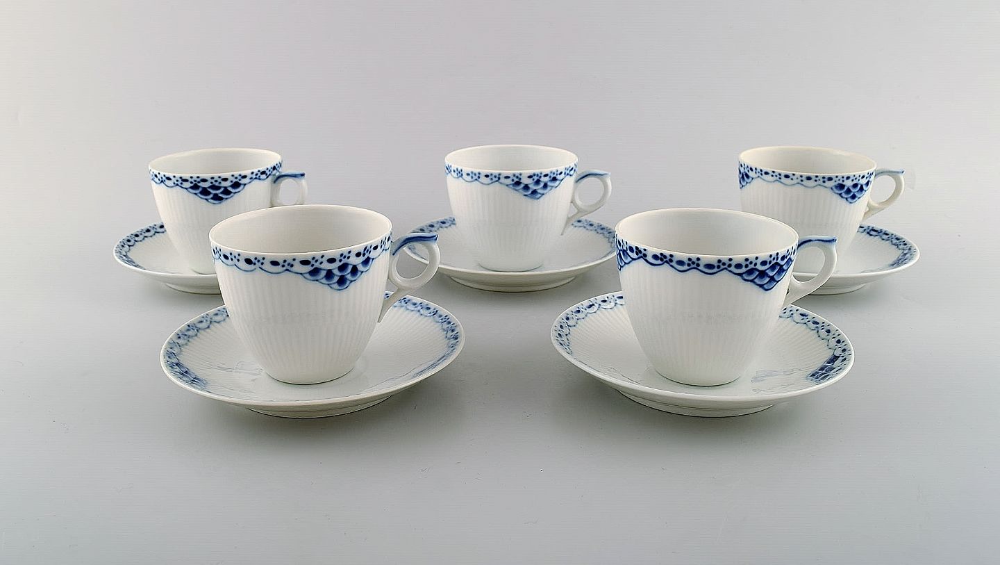 Royal Copenhagen blue painted Princess coffee cup with saucer in porcelain. Model Number 756. Set of 5. 1st factory quality. In perfect condition. The cup measures: 7,5 x 6,5 cm. The saucer measures: 13,3 cm.