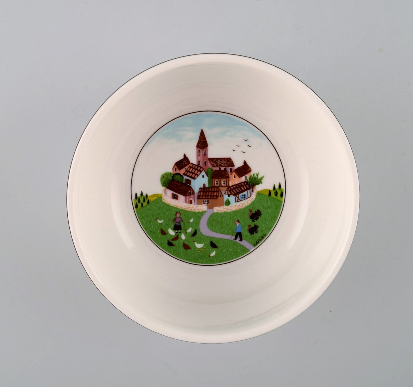 Villeroy & Boch Naif middagsservice i porcelæn. Et sæt på 6 skåle dekoreret med naivistisk landsbymotiv.