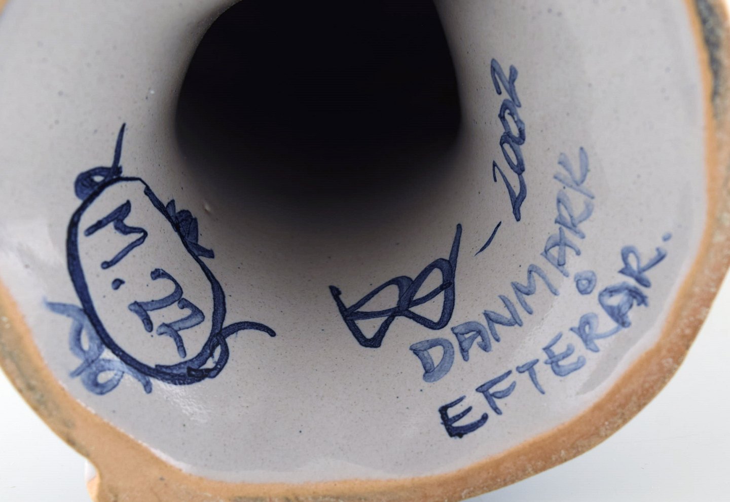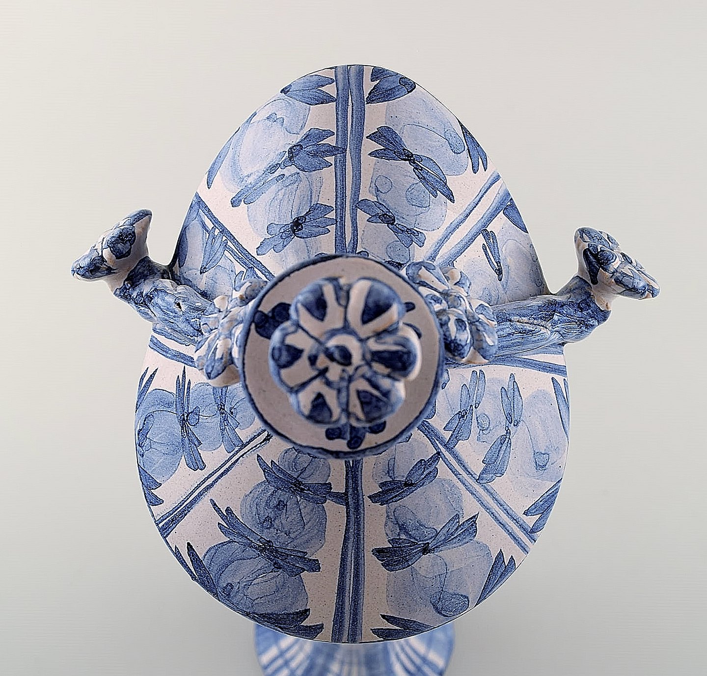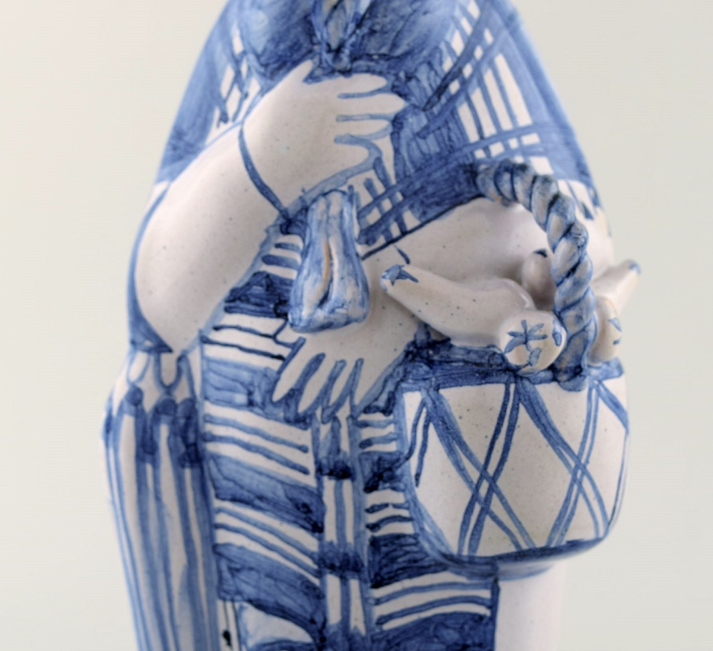Bjørn Wiinblad unik keramik figur. "Efterår" i blå "Årstiderne" fra 2002. Signeret og dateret. Måler: 33 x 12 cm. I perfekt stand. Alle 4 figurer fra "Årstiderne" på lager.