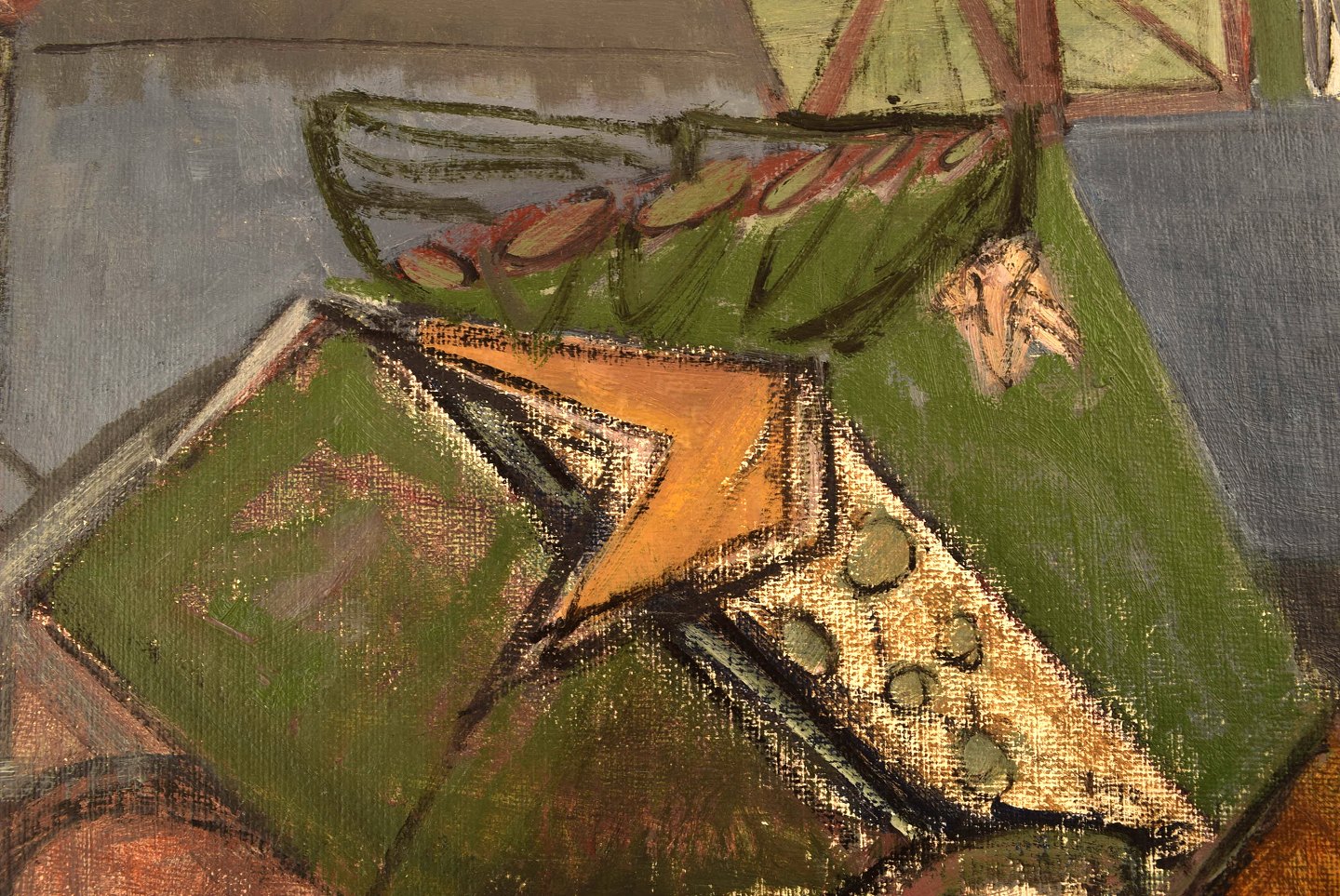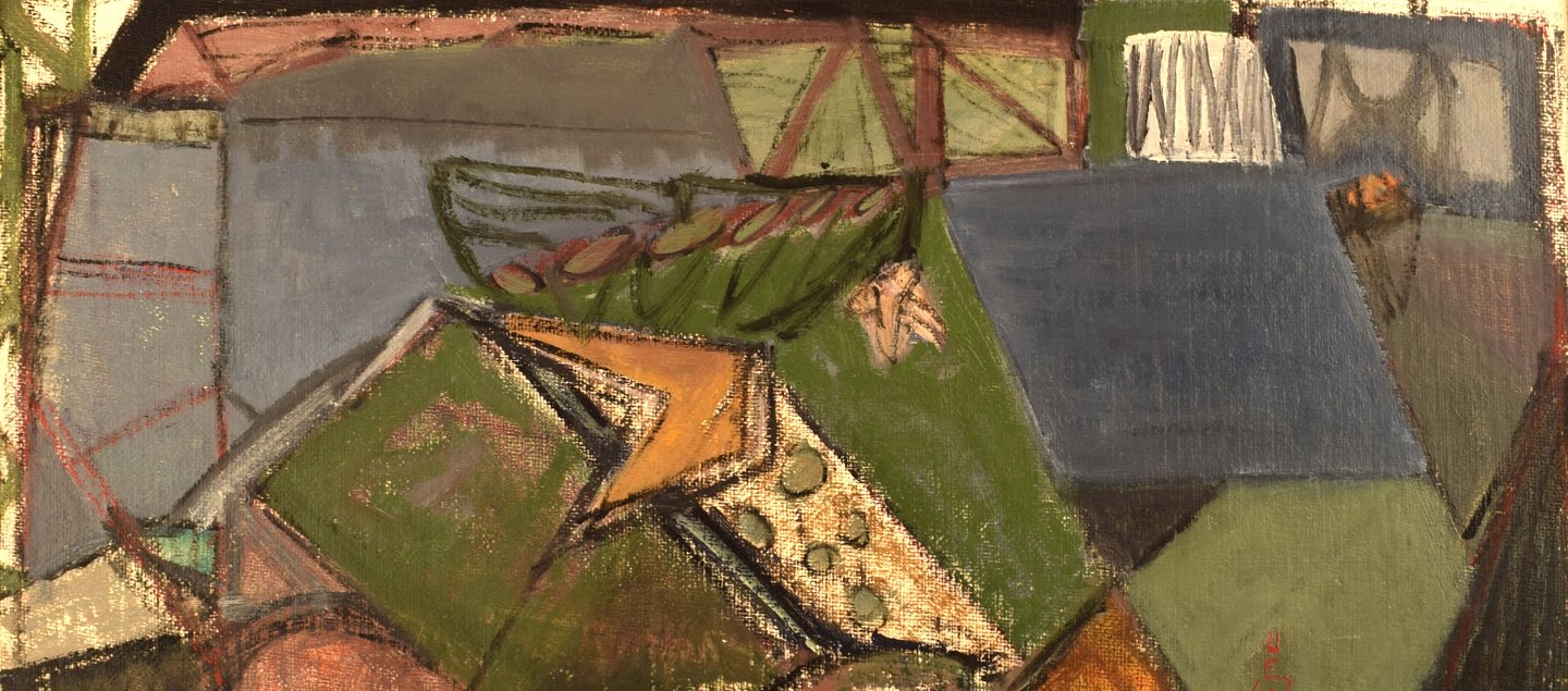 Ulf Wikström (born 1916, 1981), Swedish artist. Oil on board. Abstract composition. 1960's. In very good condition. Signed. The canvas measures: 60 x 26.5 cm. The frame measures: 5.5 cm.