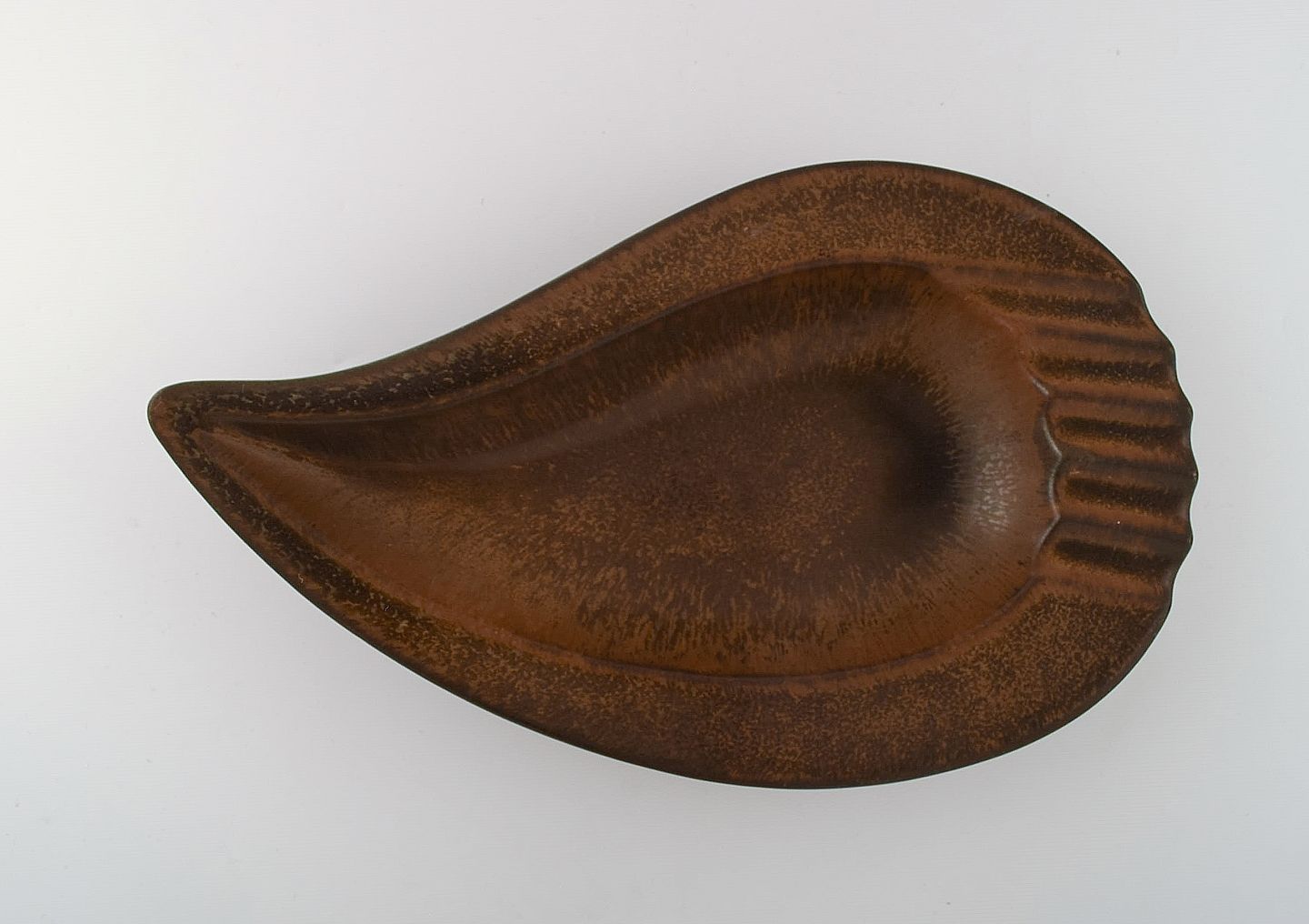 Gunnar Nylund for Rörstrand. Stort dråbeformet keramik fad i brune nuancer 1960'erne. I flot stand. Måler: 34 x 20 x 6 cm. Stemplet. 1. Sortering.