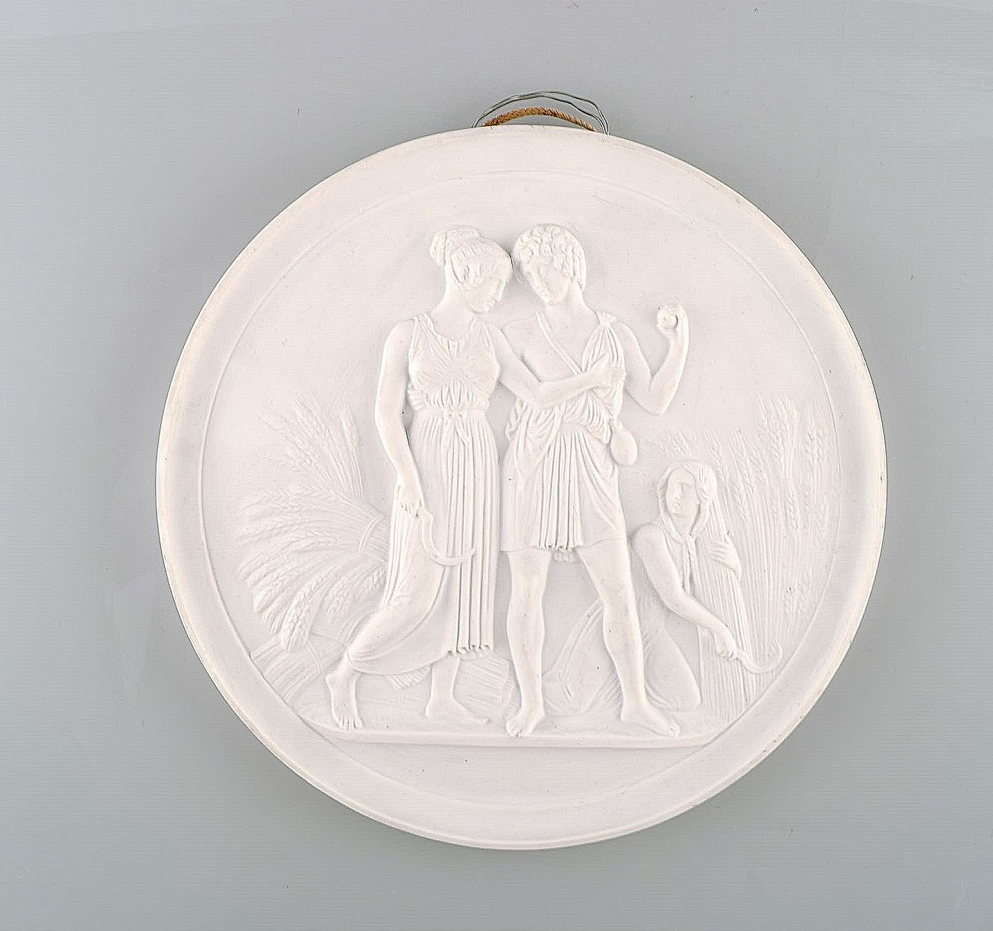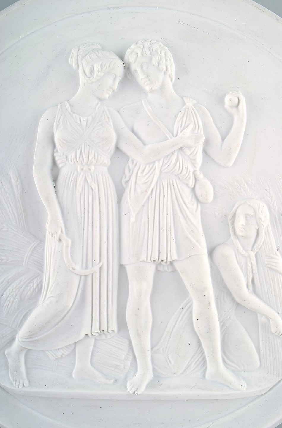 Antik Royal Copenhagen relief efter Thorvaldsen i bisquit. Sent 1800 tallet. Diameter : 26,5 cm. I flot stand. 1. sortering.