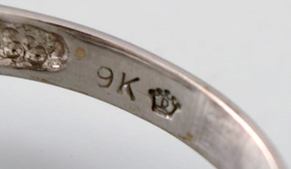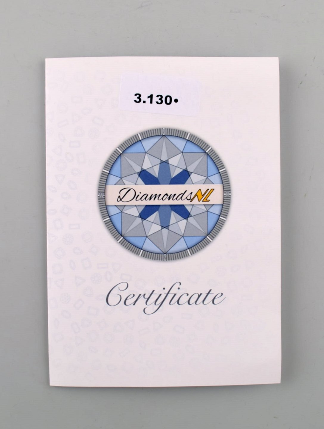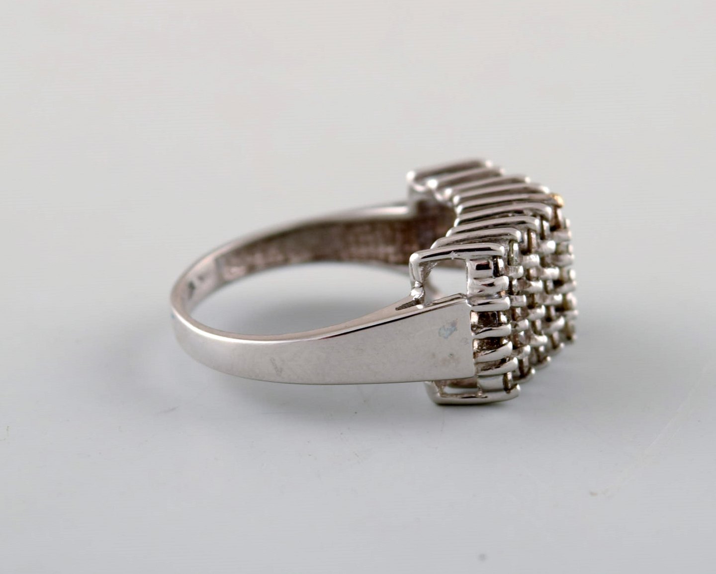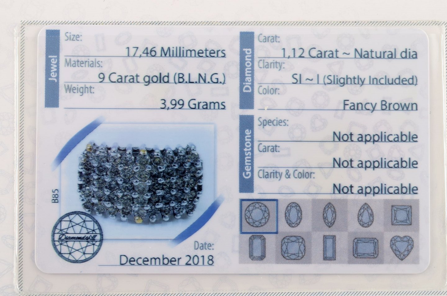 Stor art deco ring i 9 karat hvidguld med talrige diamanter. Certifikat medfølger. I flot stand. Karat: 1.12. Klarhed: SI. Farve: Fancy brown. Vægt: 3,99 gram. Måler: 17,46 mm.