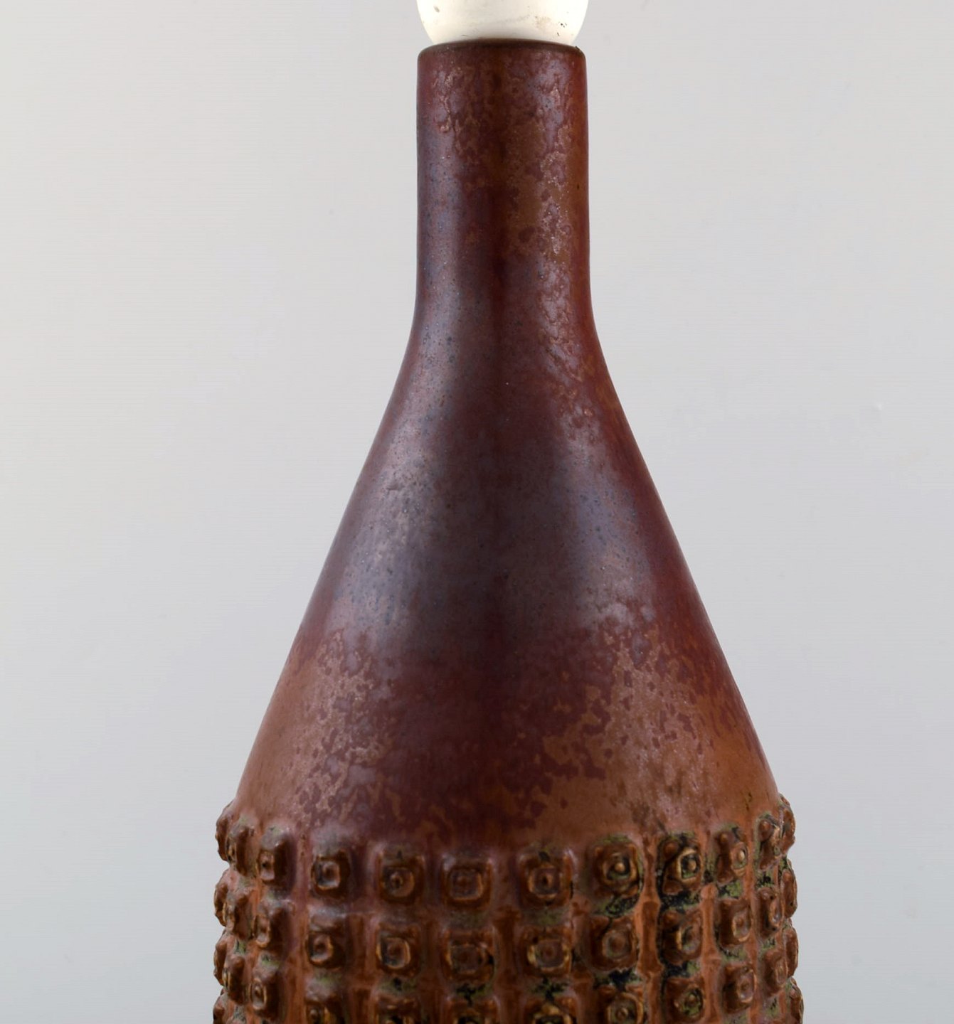 Stig Lindberg (1916-1982) for Gustavsberg Studio Hand. Large ceramic lamp. 1960's. Beautiful glaze in brown shades. Measures: 37 x 12 cm. incl. socket. In very good condition.