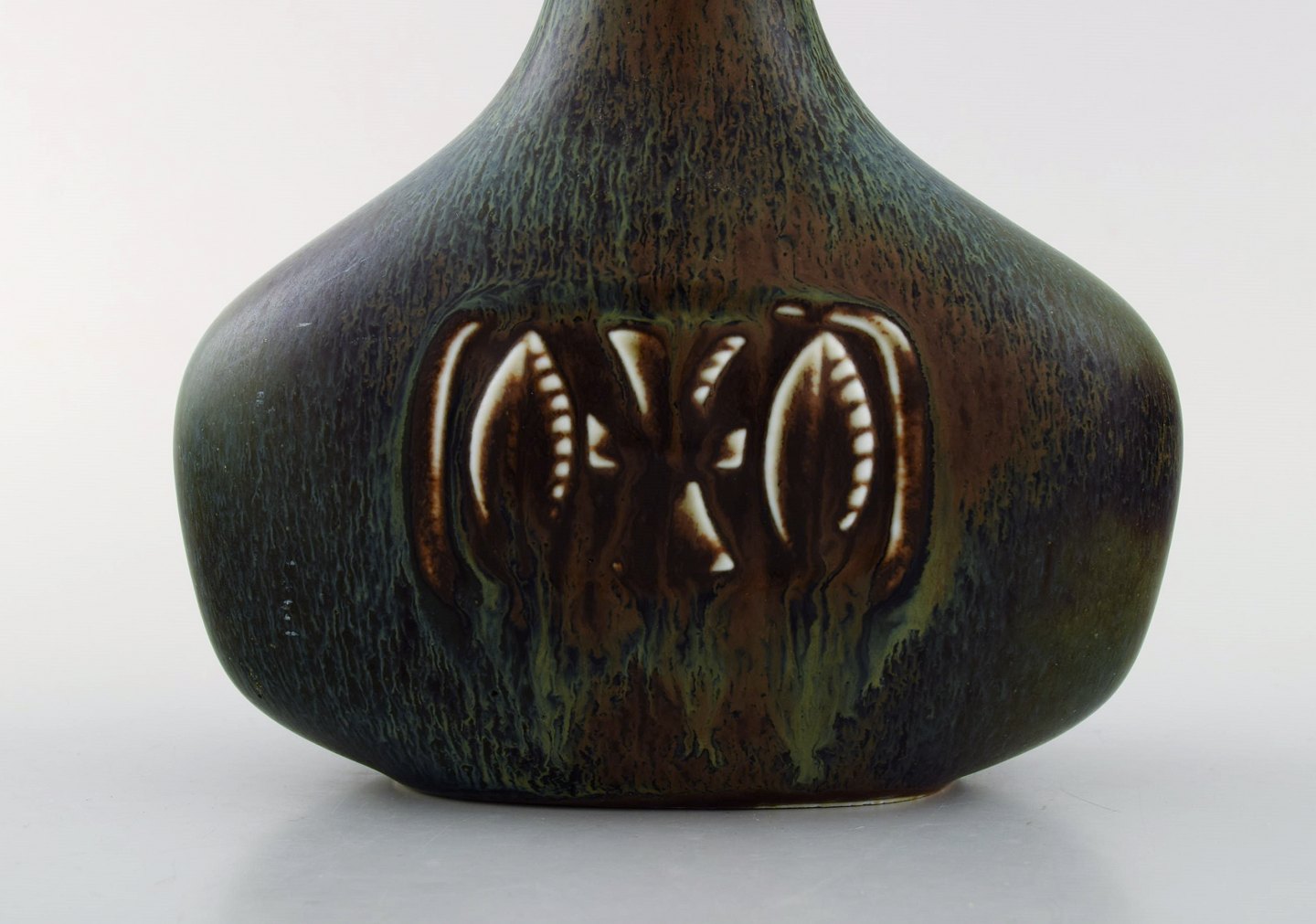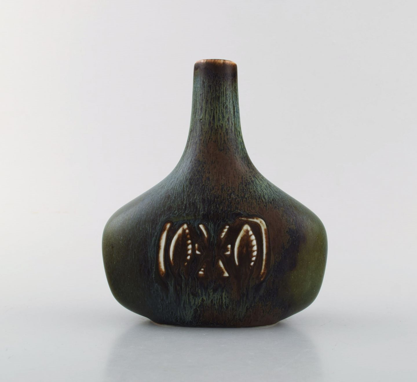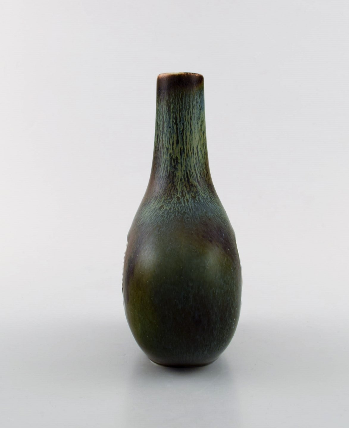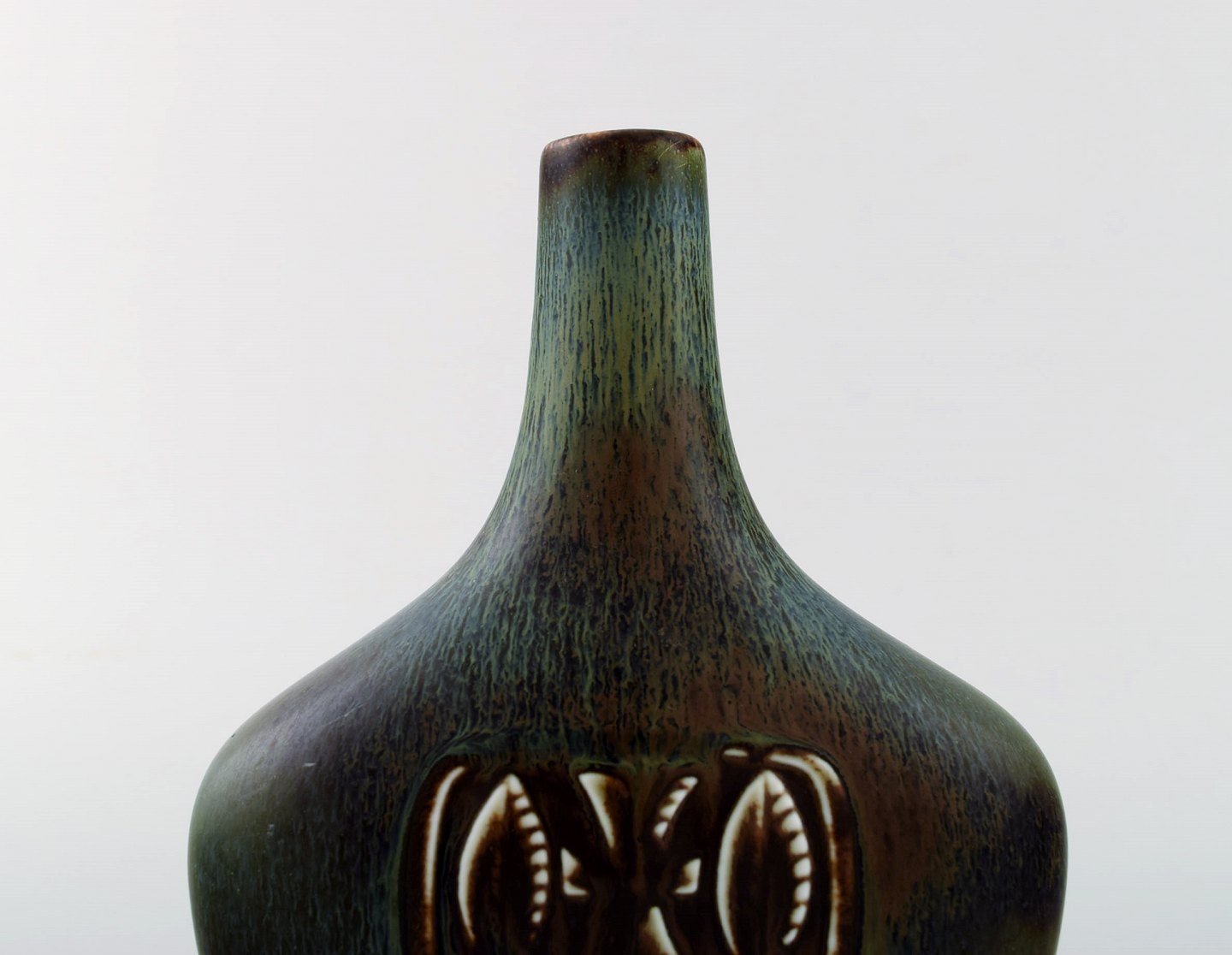 Gunnar Nylund for Rørstrand / Rorstrand. Bottle-shaped vase in glazed ceramics. Beautiful glaze in brown and green shades. Mid 20th century.