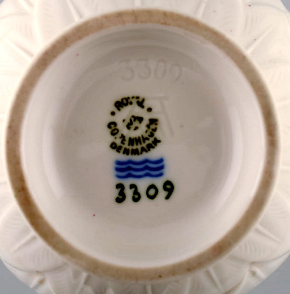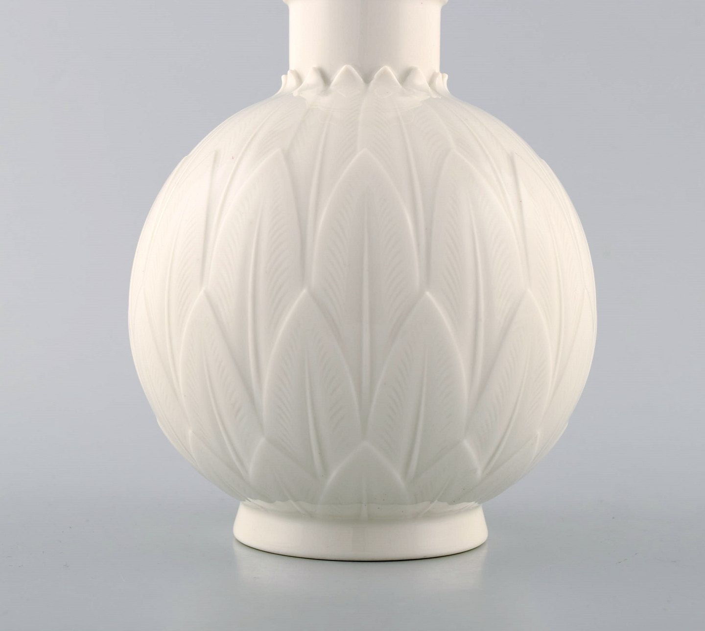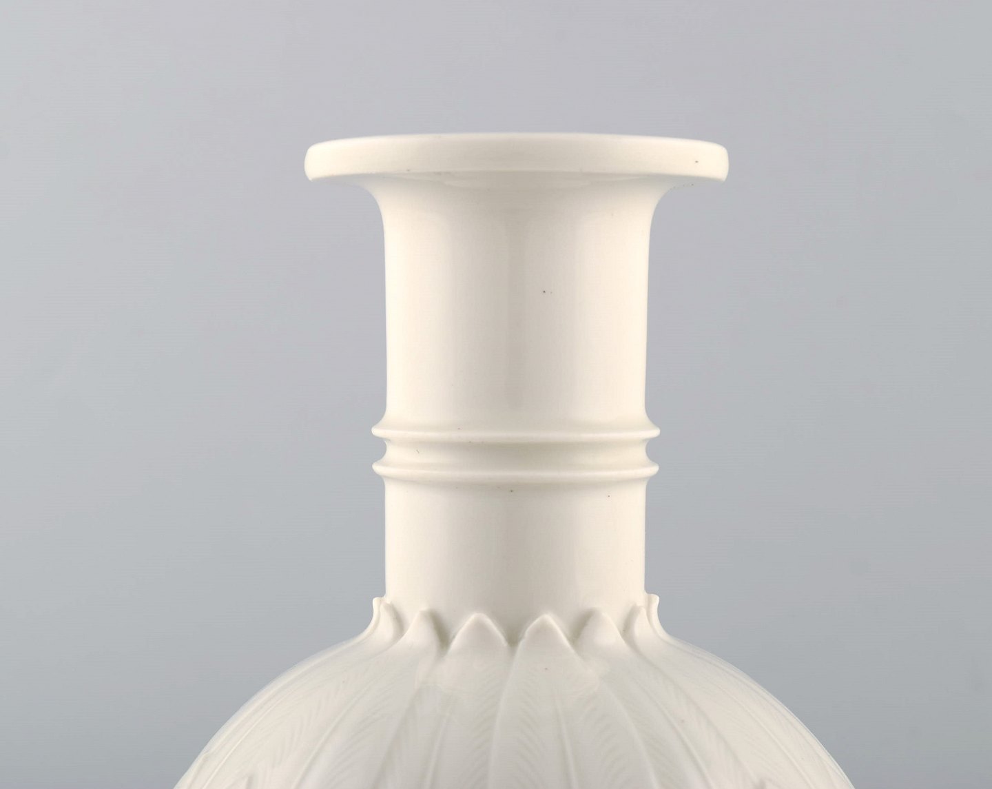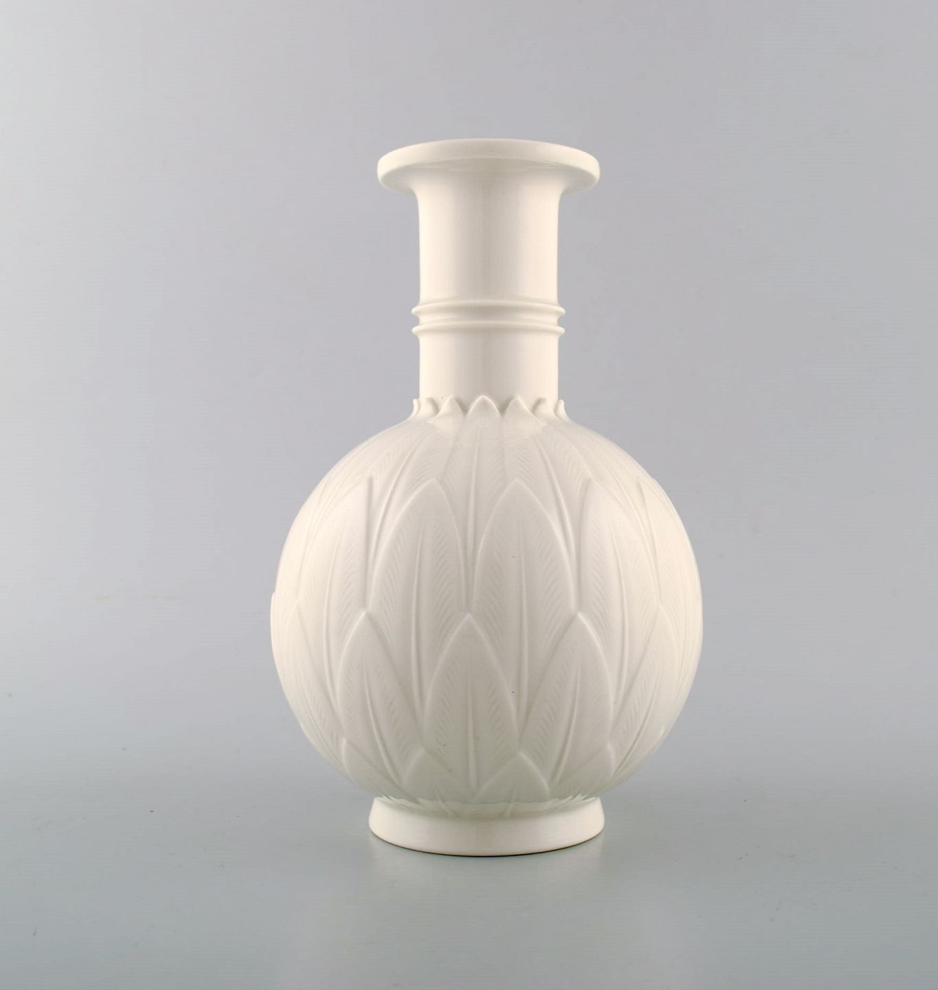 Arno Malinowski for Royal Copenhagen. Vase in blanc de chine porcelain decorated foliage in relief. Number 3309. Signed in monogram. Mid 20 c. Height 20 cm. 1st. In perfect condition.