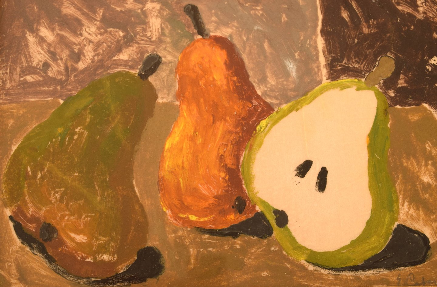 ERIC CEDERBERG, listed Swedish artist. Still life with pears. Gouache on cardboard. Signed. Measures: 25 x 16 cm. The frame measures 5.5 cm. In perfect condition.