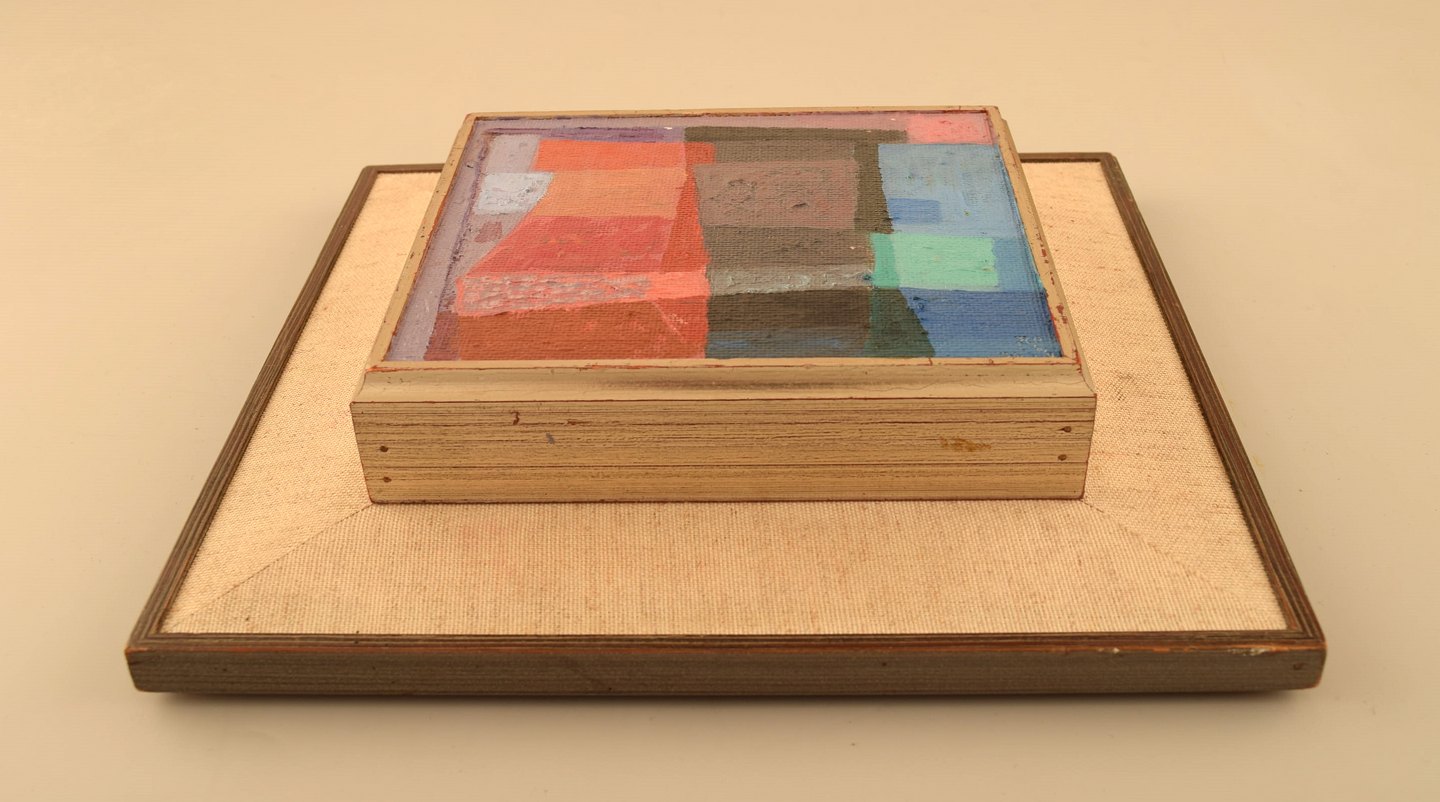 Ragnar Ring, Swedish painter. Oil on board. "Vases". Abstract composition. Dated 1976. In very good condition. Signed and dated. The board measures: 13 x 12 cm. The frame measures: 5 cm.