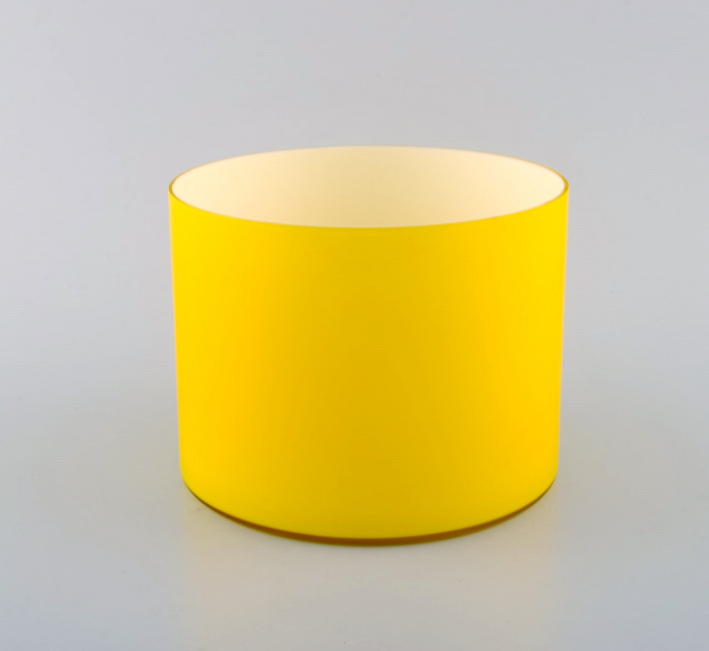 Kastrup / Holmegaard. Et par store skåle i gul opalineglas. 1960'erne. I flot stand. Mærkat. Største måler: 18 x 8 cm. Mindste måler: 15 x 12 cm.