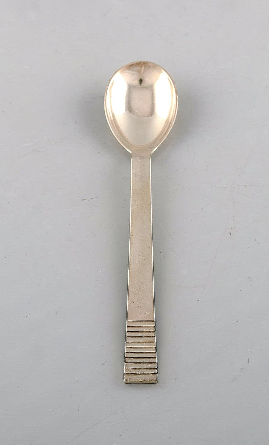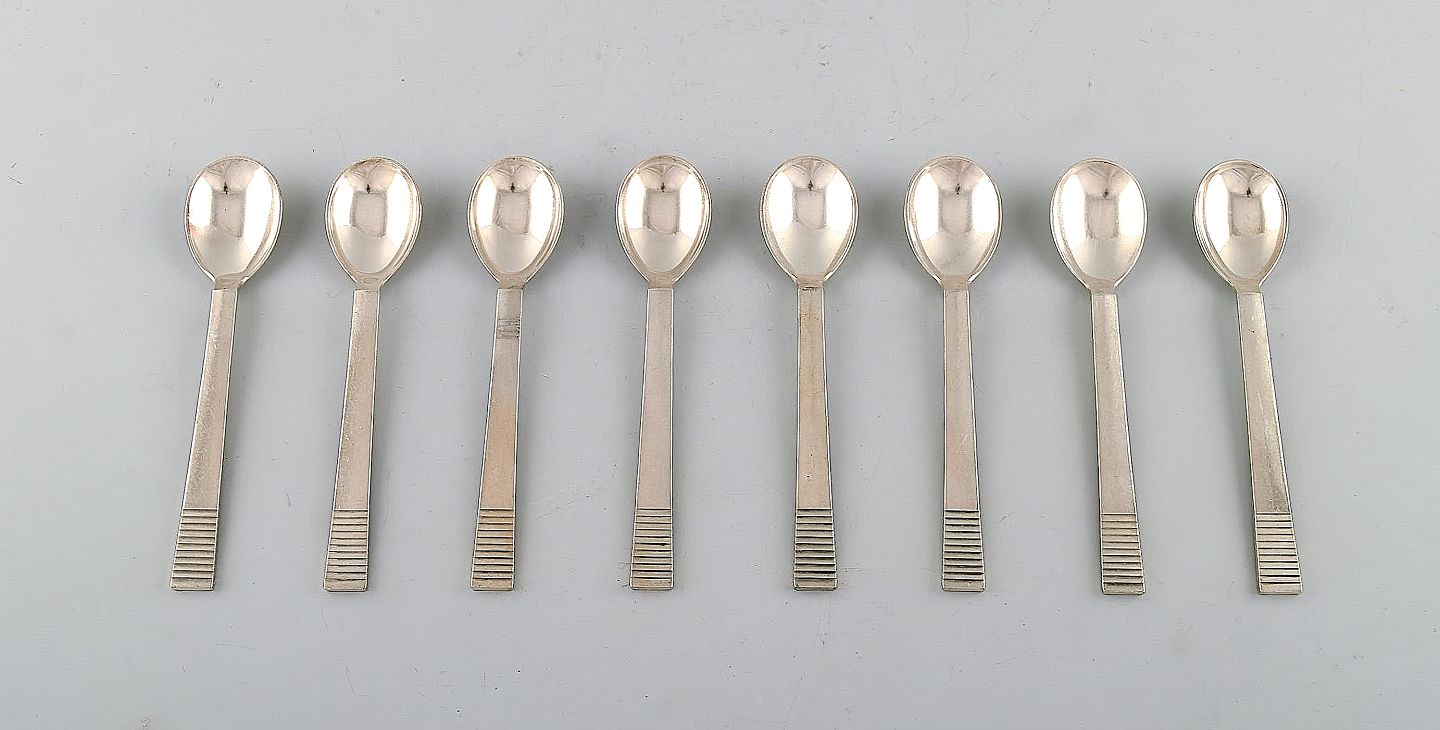 Georg Jensen Parallel/Relief. Sæt på otte teskeer i sterlingsølv. Måler: 12,5 cm. I flot stand stand. Tidligt stempel: 1933-1944 og 1945-51.