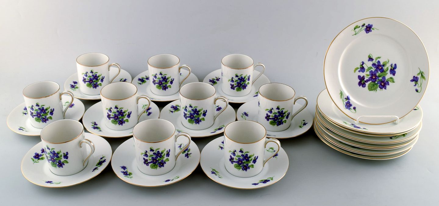 Håndmalet Rosenthal kaffeservice i porcelæn. Komplet til 10 personer med tilhørende tallerkener. 1930/40'erne.