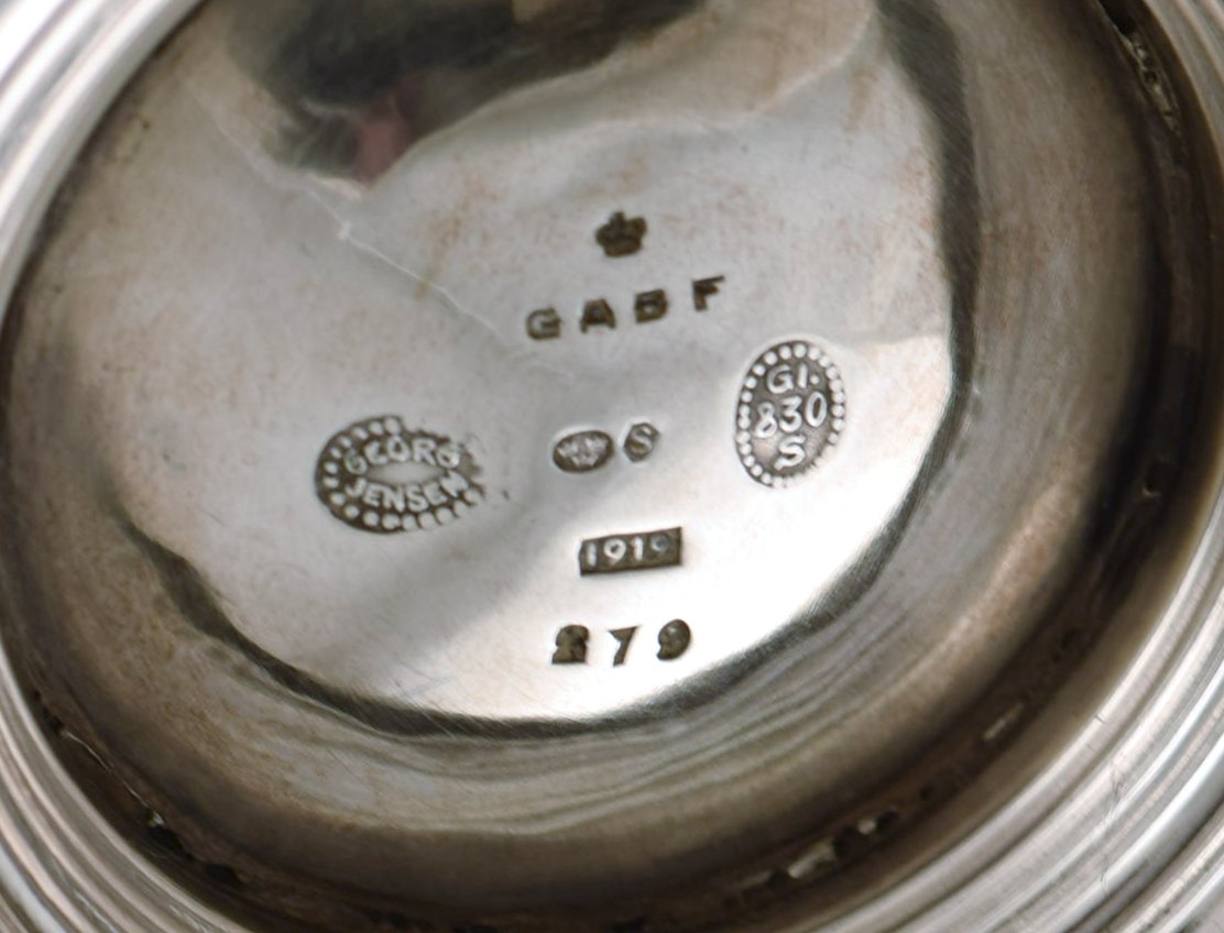 Johan Rohde for Georg Jensen. Rare and early teapot in sterling silver. Round body and ivory handle. Dated 1919.