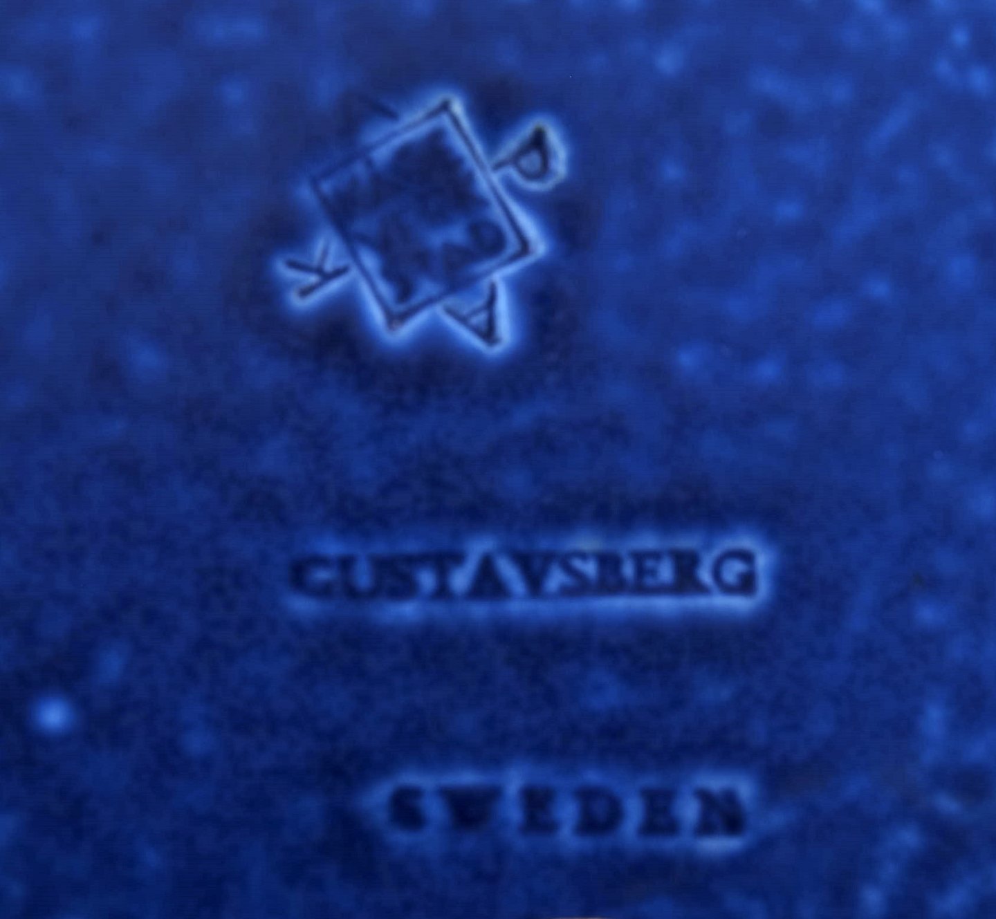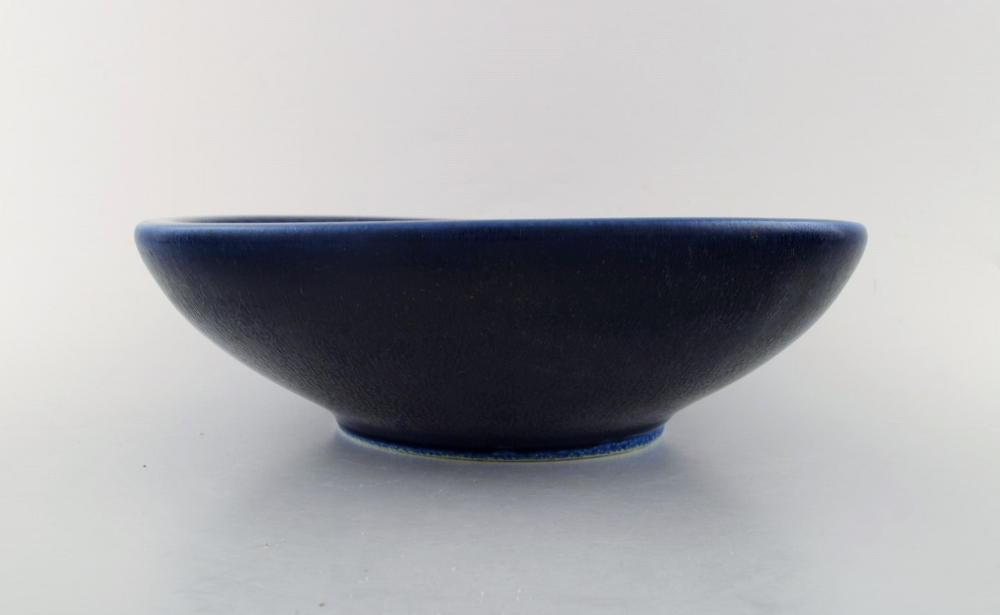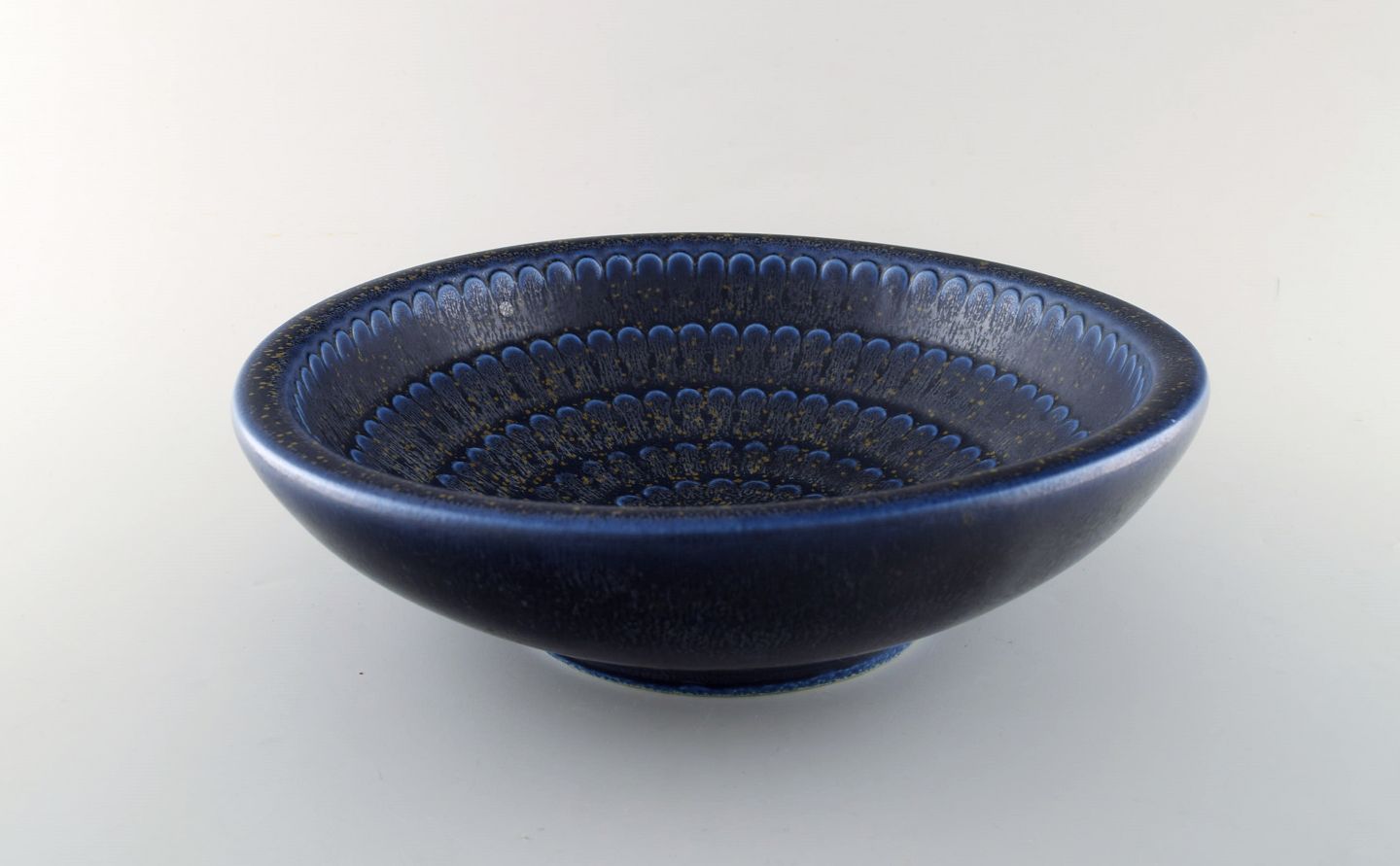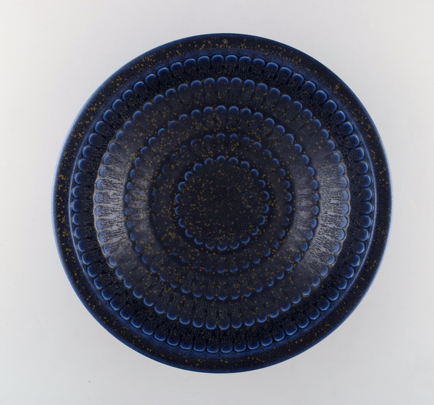 Wilhelm Kåge (1889-1960) for Gustavsberg. Large Bowl of stoneware, decorated with brown and blueish glaze. Stamped. Gustavsberg Kåge Verkstad. In perfect condition. Measures 30 cm x 9.5 cm.