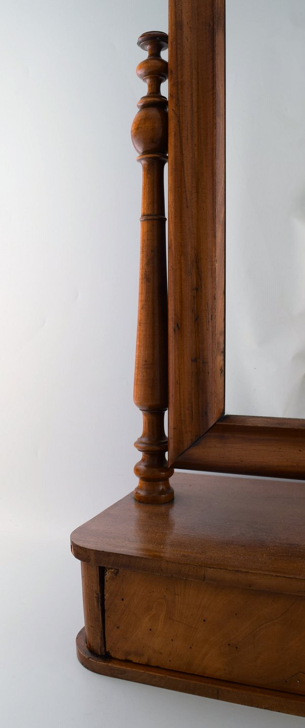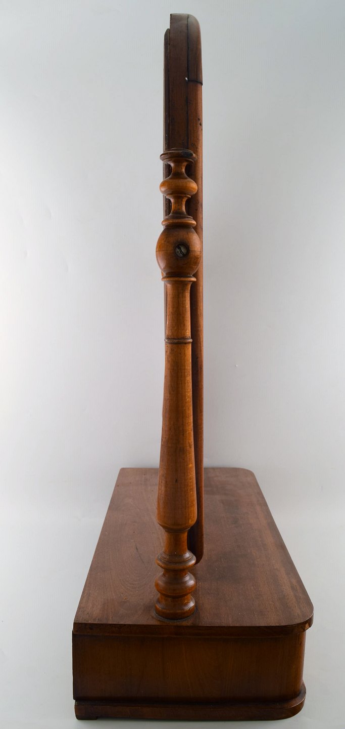 Stort dansk mahogni vippespejl med skuffe. Sent 1800-tallet. I flot stand. Måler: 61 x 44 cm.