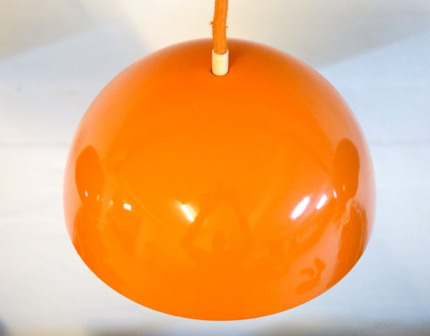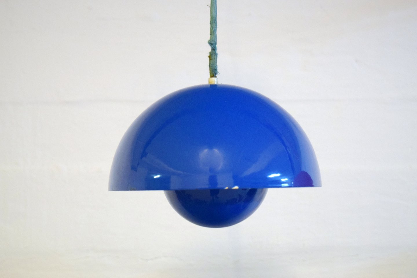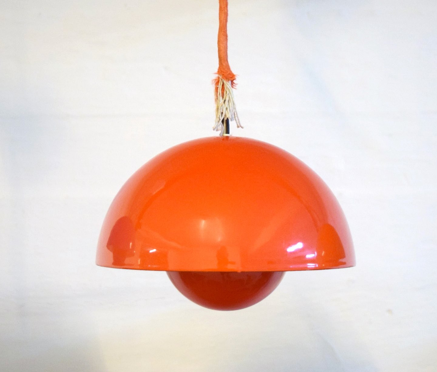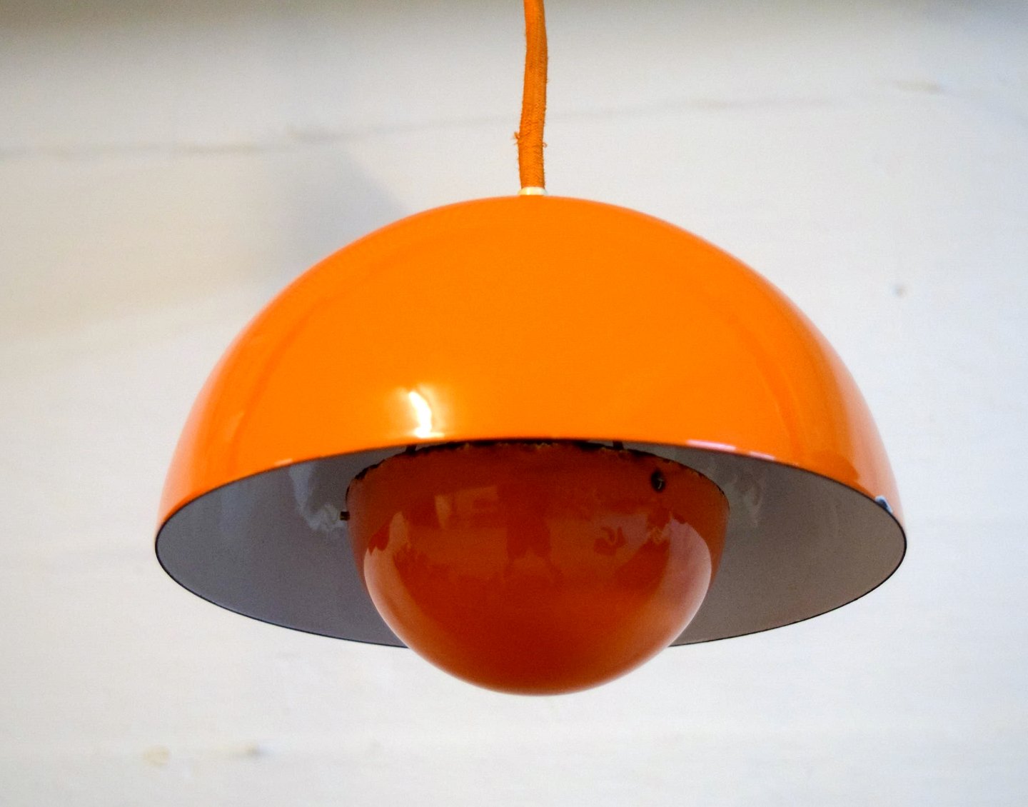 Verner Panton (1926-1998). Five early Verner Panton "Flowerpot" pendants / ceiling lights in orange, red and blue enamel. 1970's.