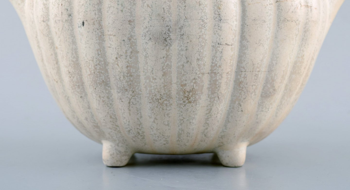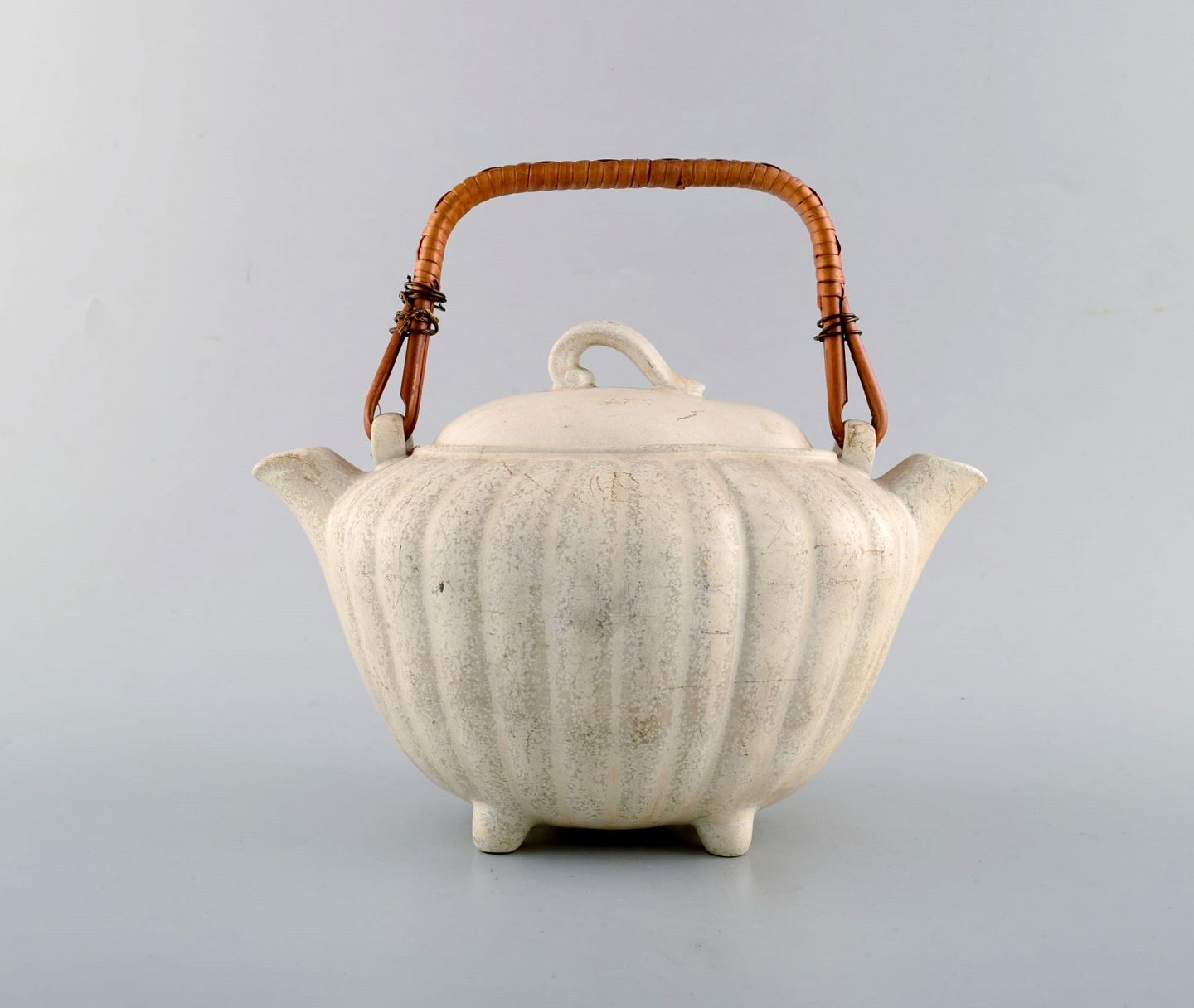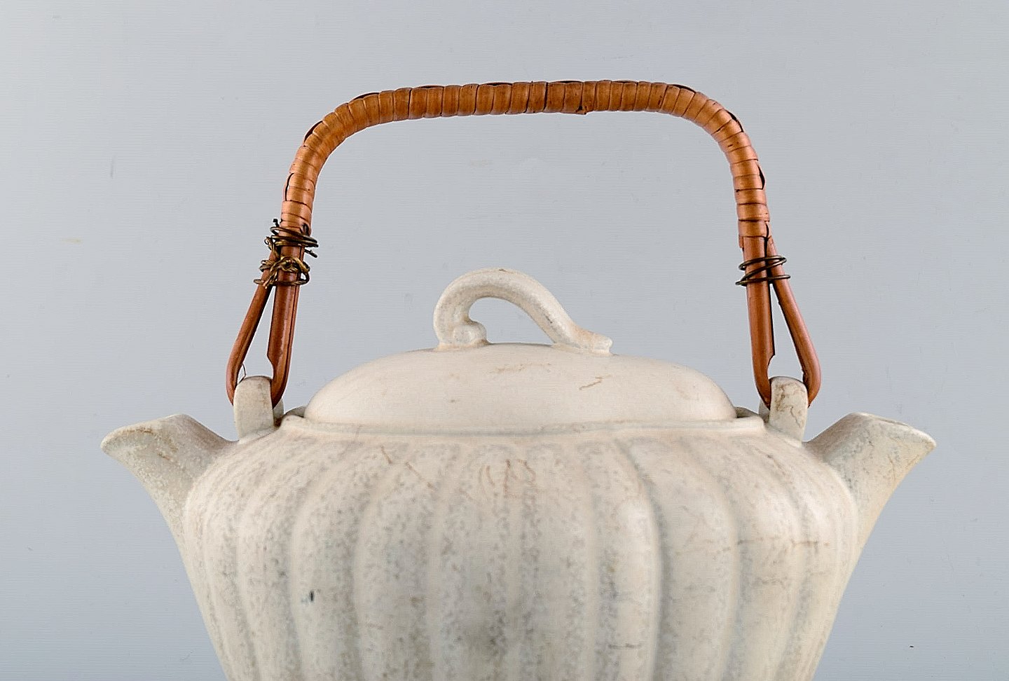 Gunnar Nylund for Rørstrand. Dobbeltkande i glaseret keramik. Cremefarvet æggeskalsglasur og hank i flet. 1960'erne.