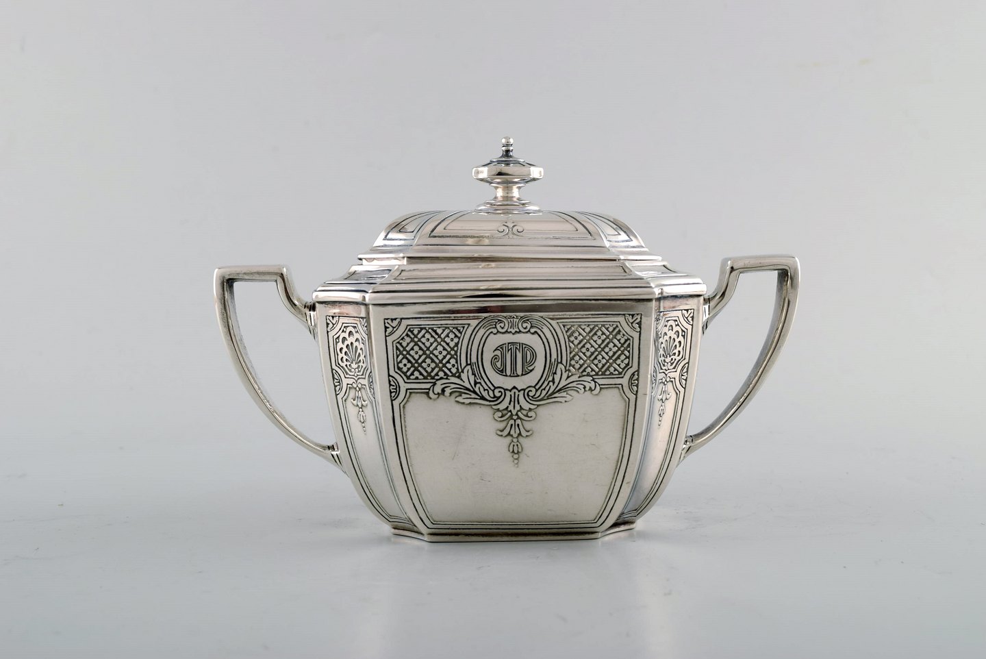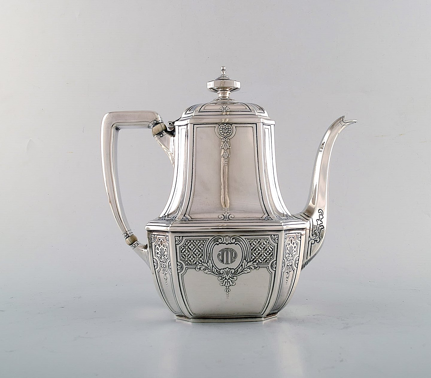 Tiffany & Company (New York). Kaffeservice i sterlingsølv. Klassicistisk stil, 1870'erne. Bestående af kaffekande, sukkerskål og flødekande. I flot stand. Stemplet. Kaffekanden måler: 22,5 x 21,5 cm.