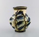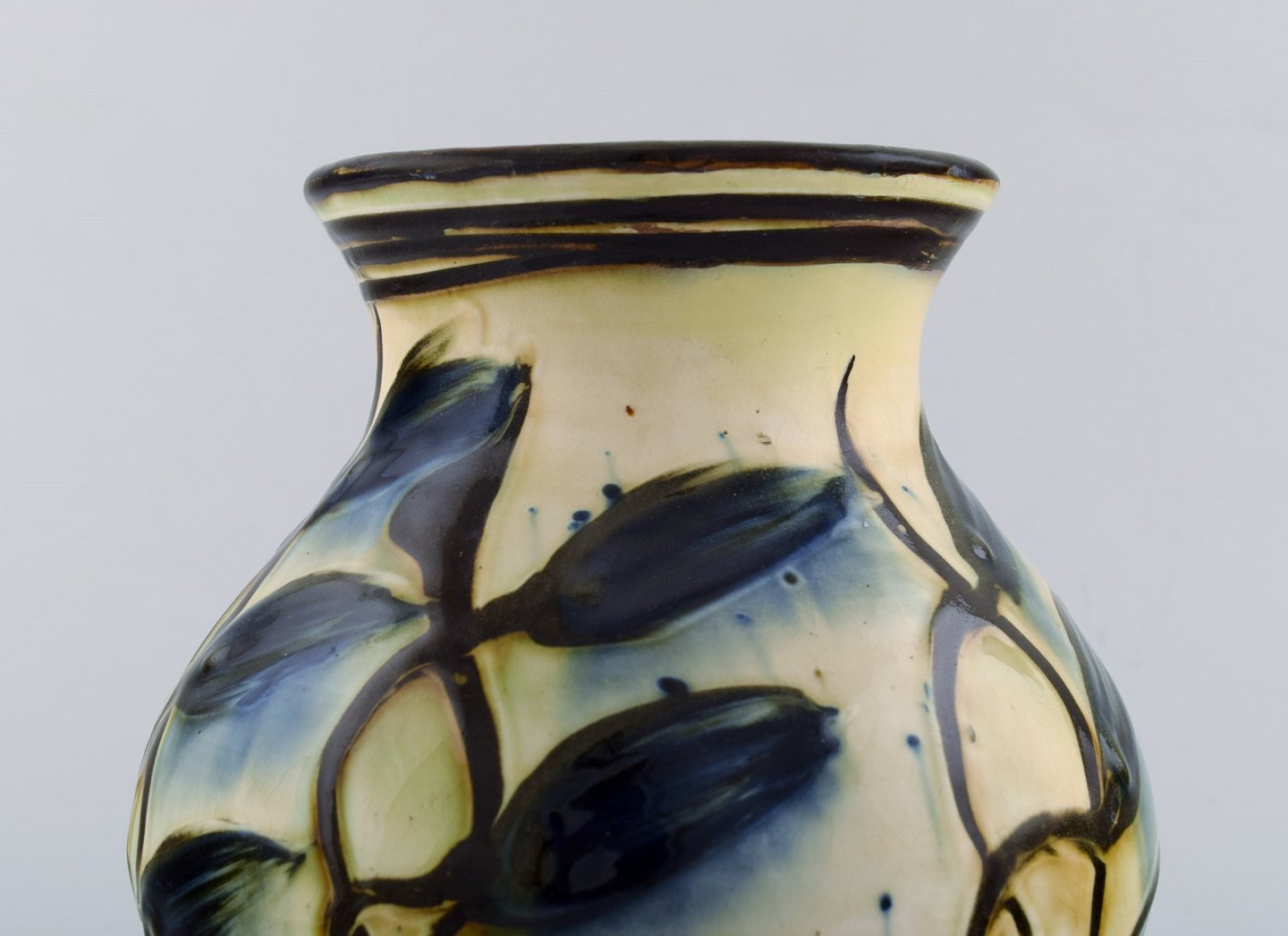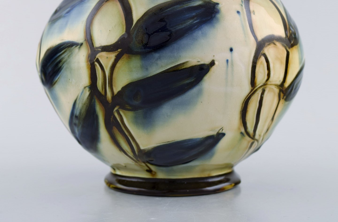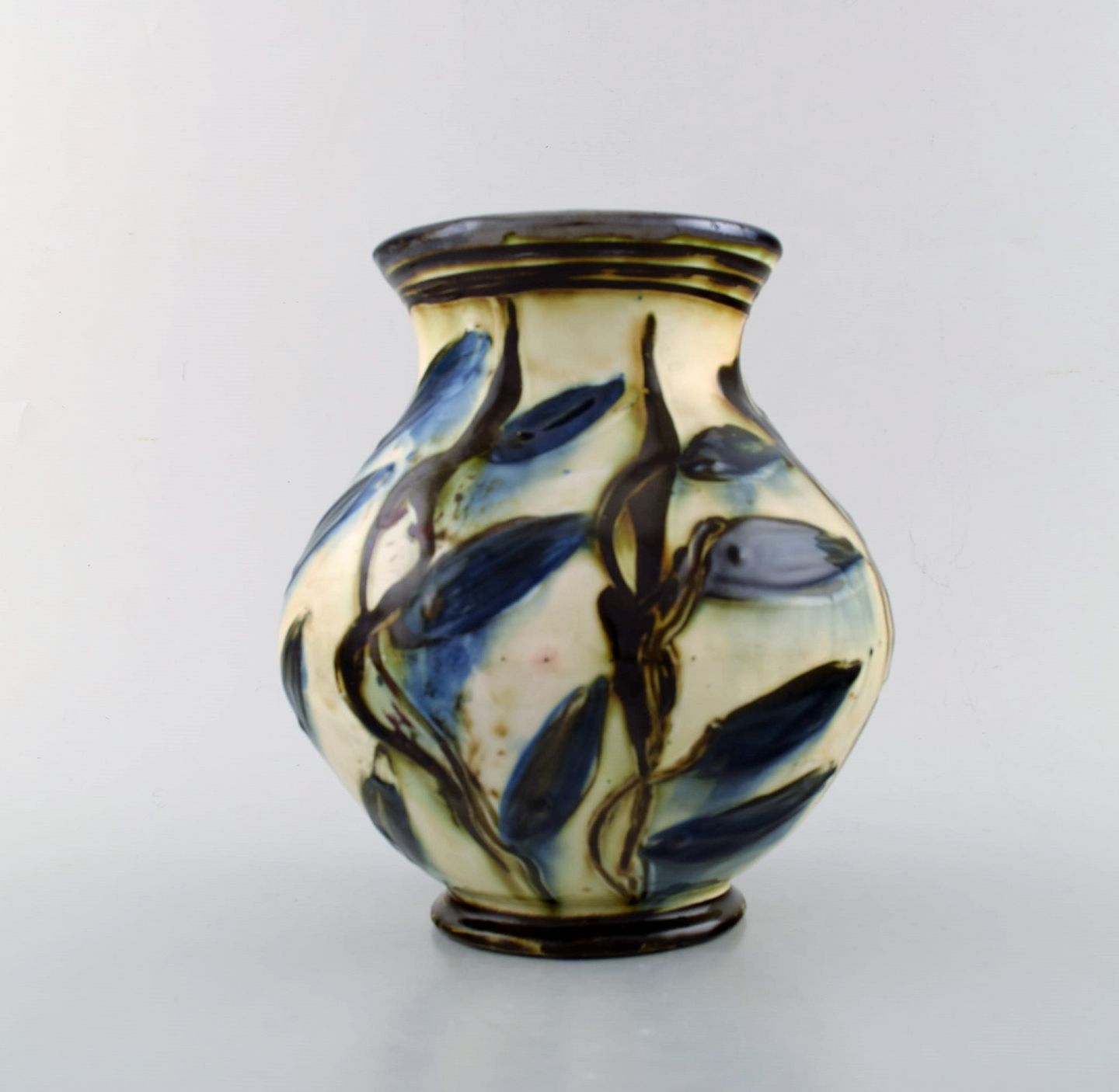 Kähler, HAK, glazed stoneware vase in modern design. 1930 / 40's. Blue flowers on cream colored background. Stamped. Measures: 21 x 20 cm. In very good condition.