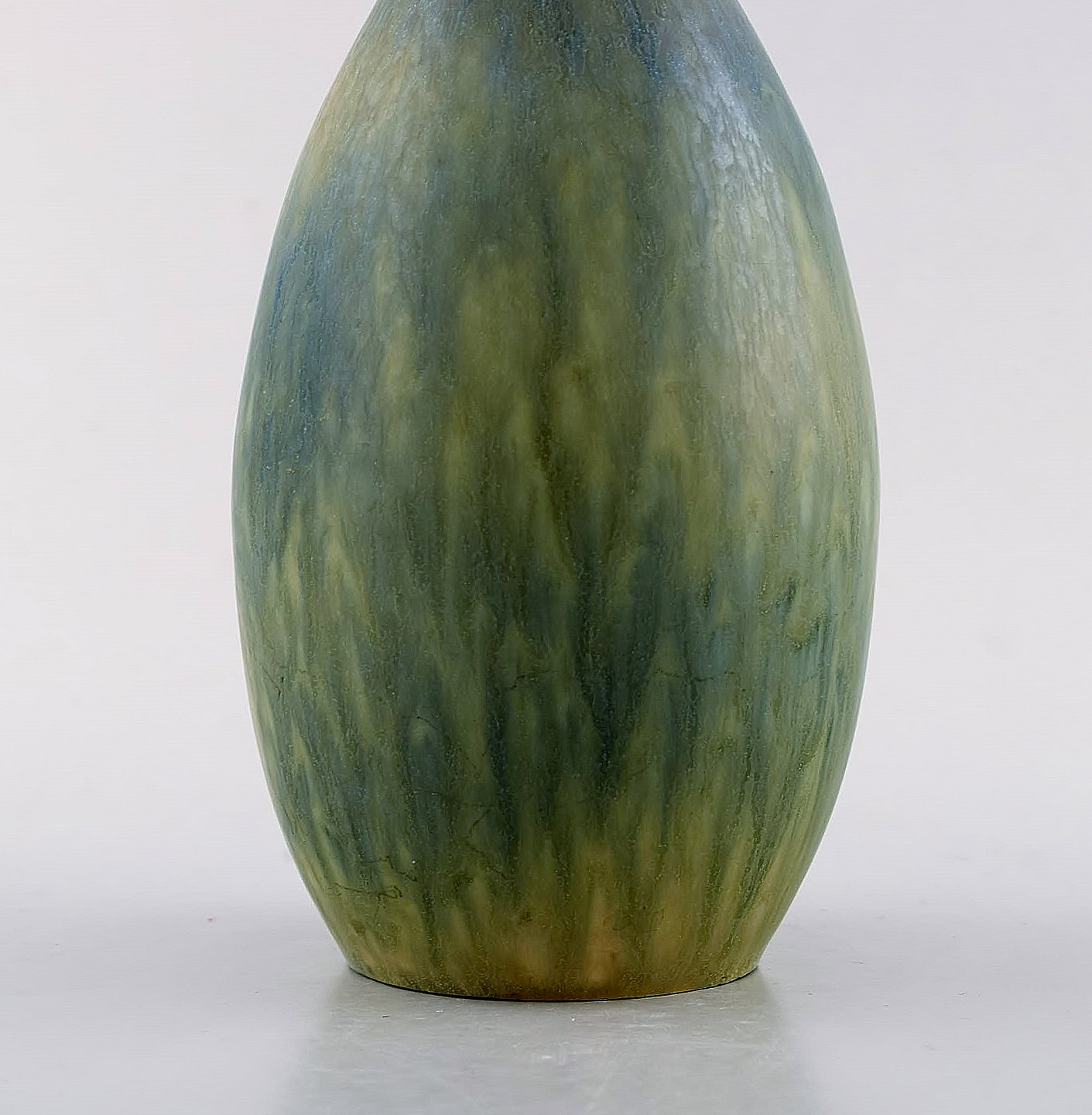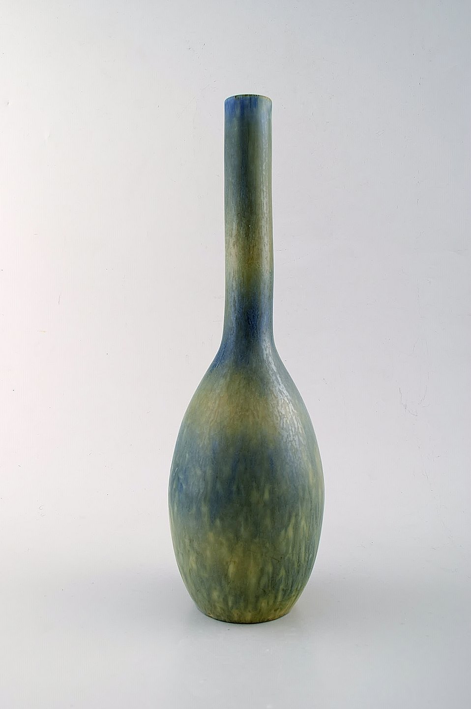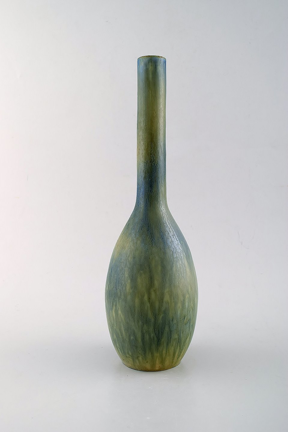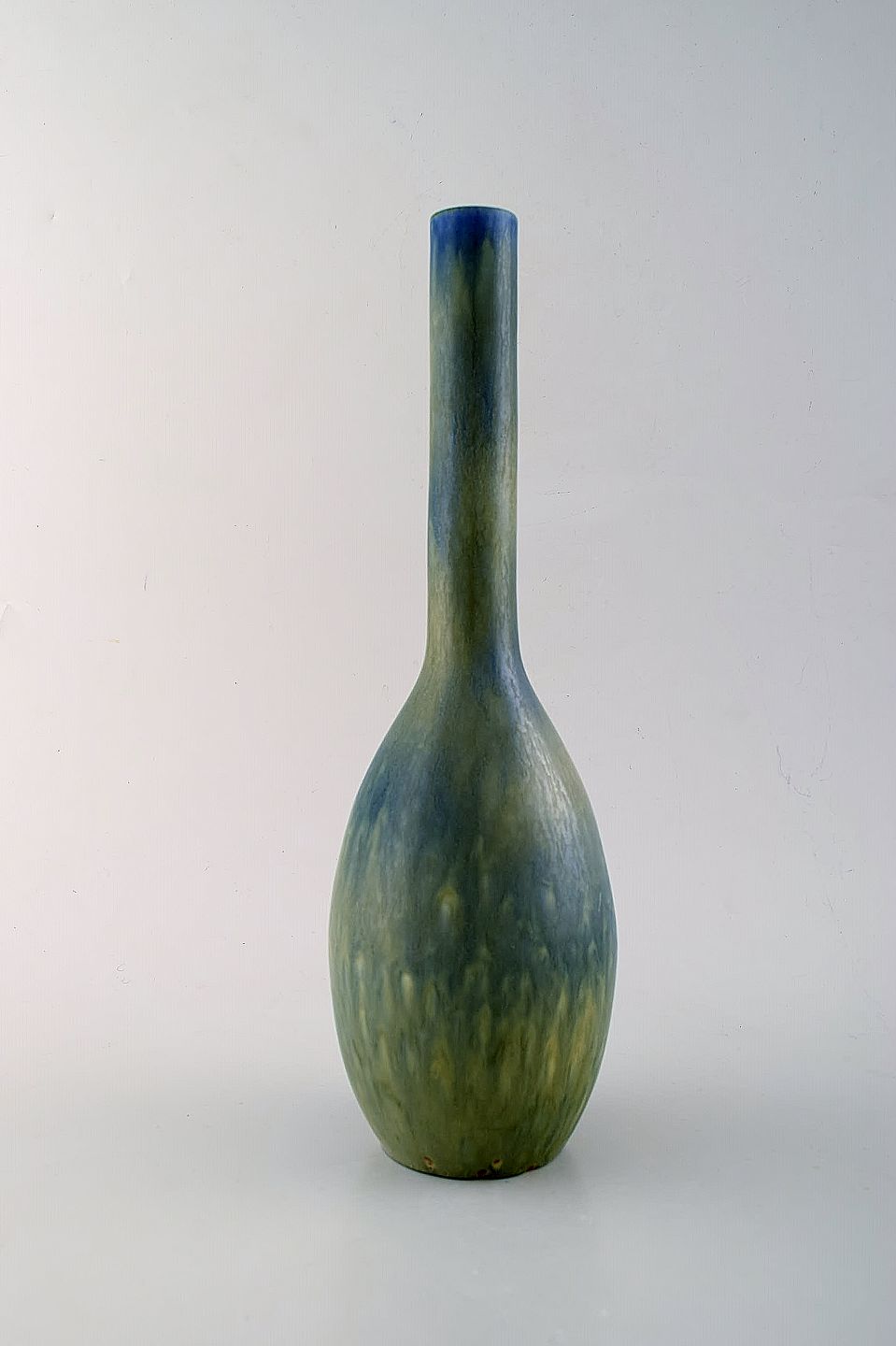 Carl-Harry Stålhane for Rørstrand. Large ceramic vase with narrow neck. Beautiful glaze in blue / green shades. 1960's. Measures: 31,5 x 10,5 cm. In very good condition. 1st factory quality. Signed.