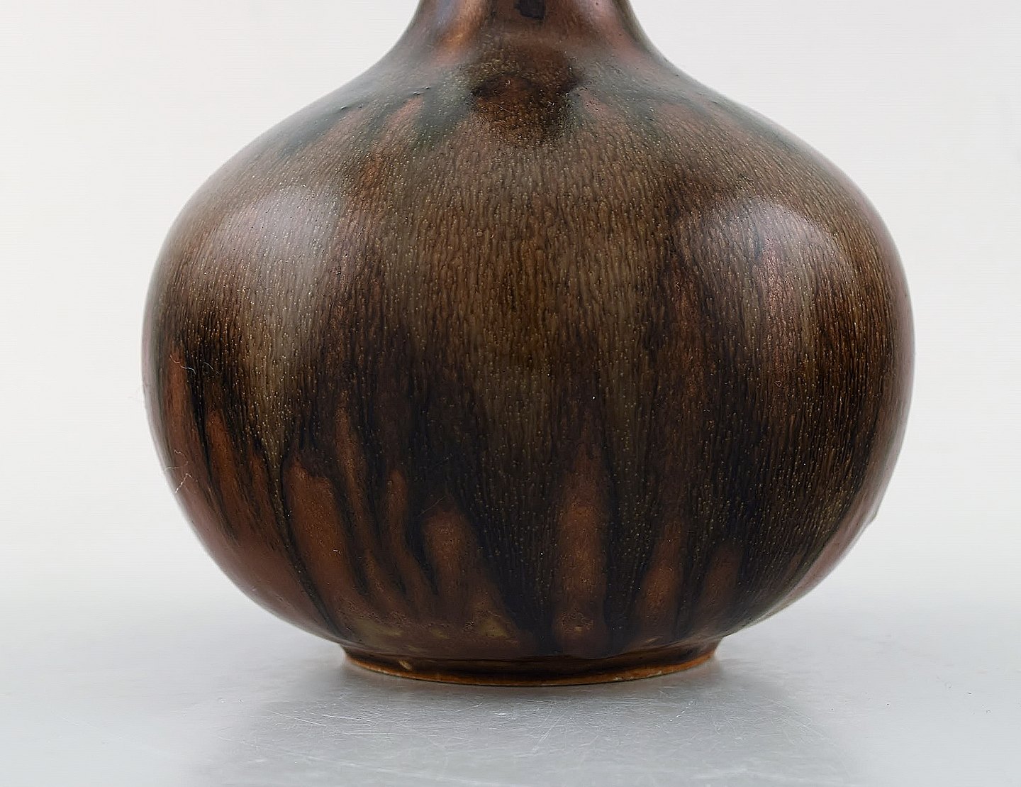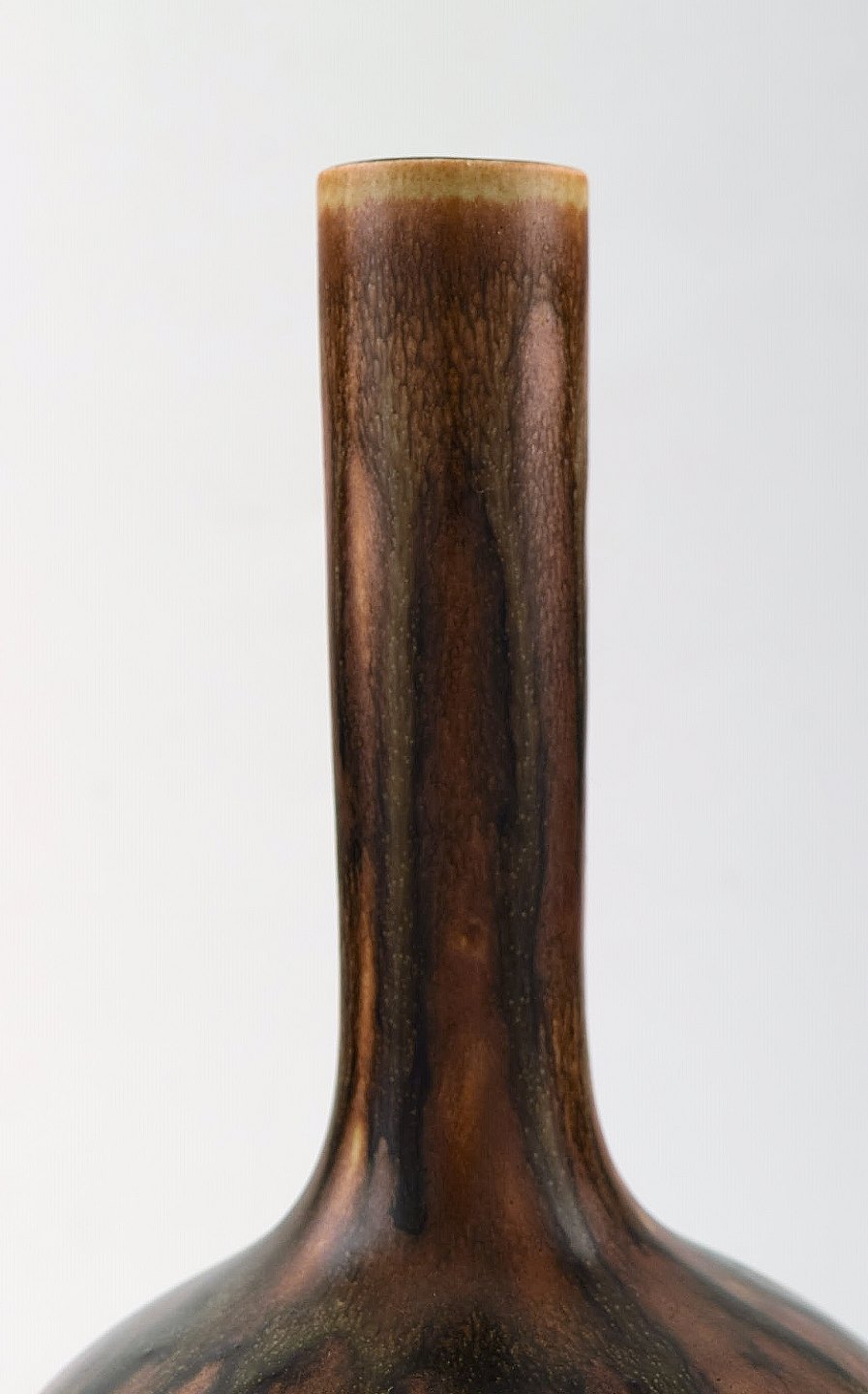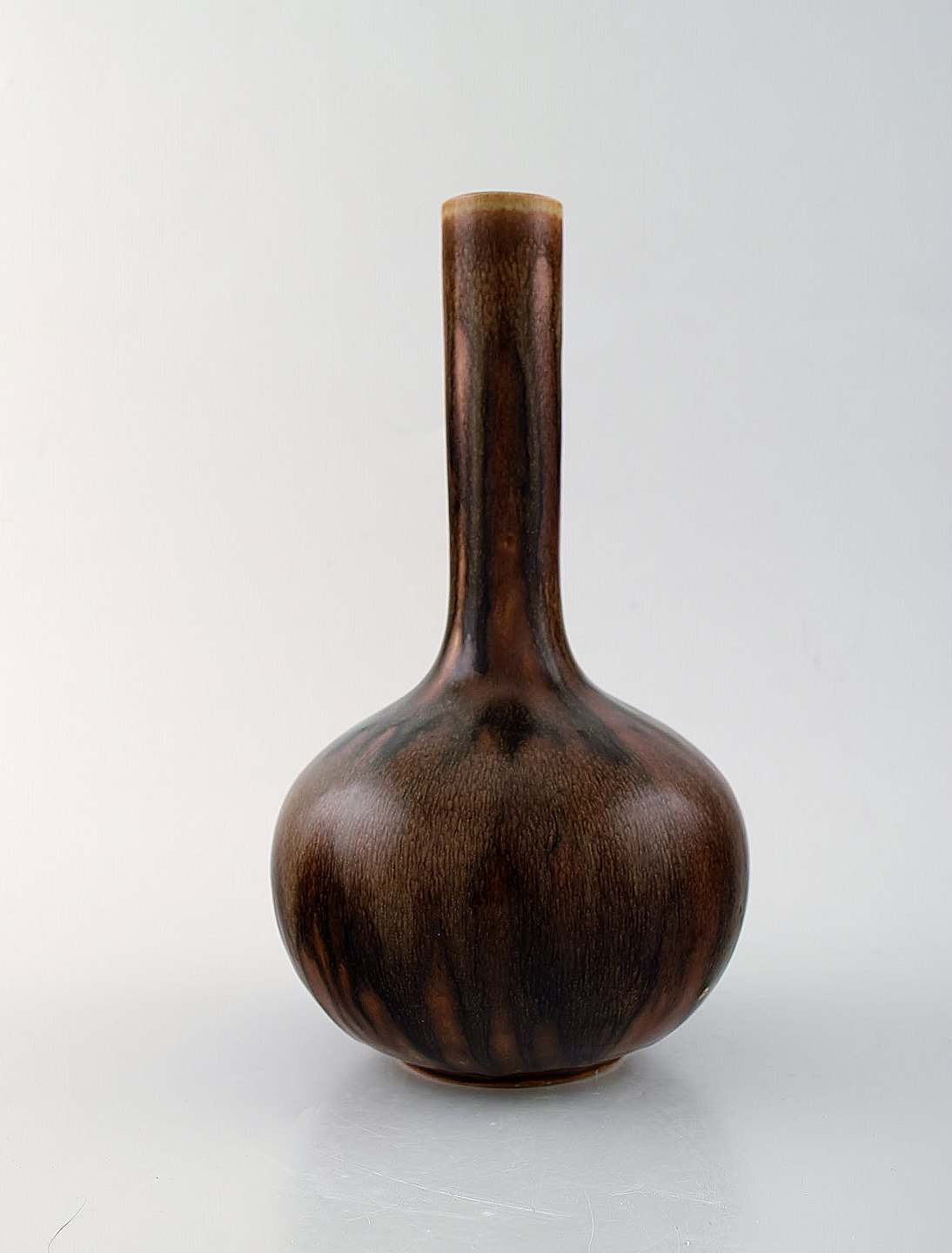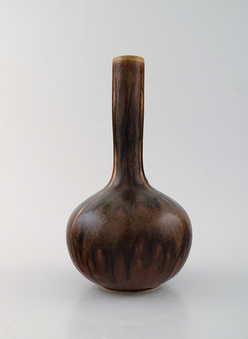 Axel Salto for Royal Copenhagen. Vase in glazed stoneware. Beautiful glaze in chestnut colored shades. Long-necked shape. 1940 / 50's.