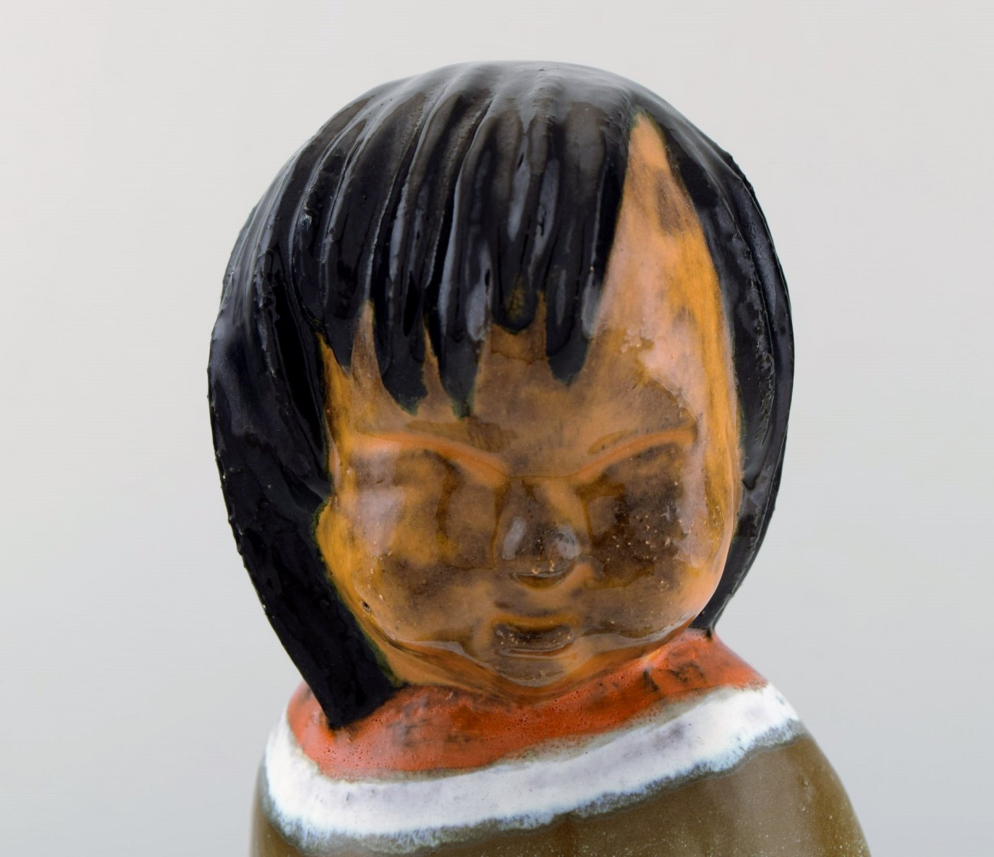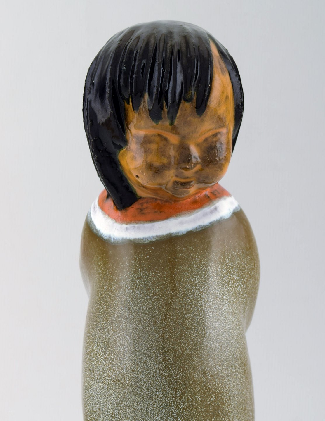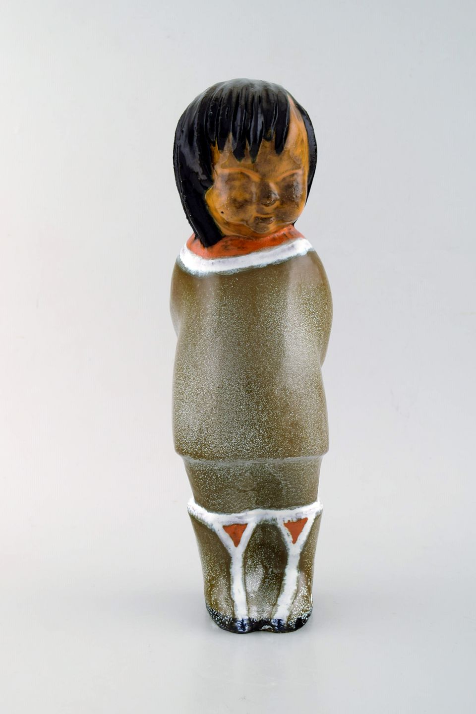 Vicke Lindstrand for Upsala-Ekeby. Ceramic figure, Greenlandic girl. Signed. In perfect condition. Measures 31 cm.
