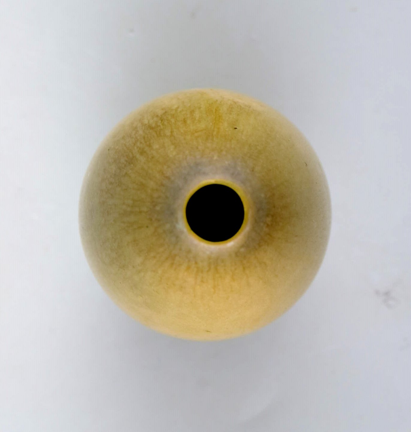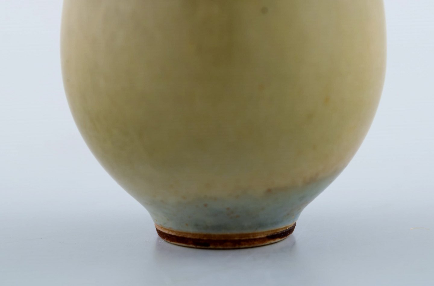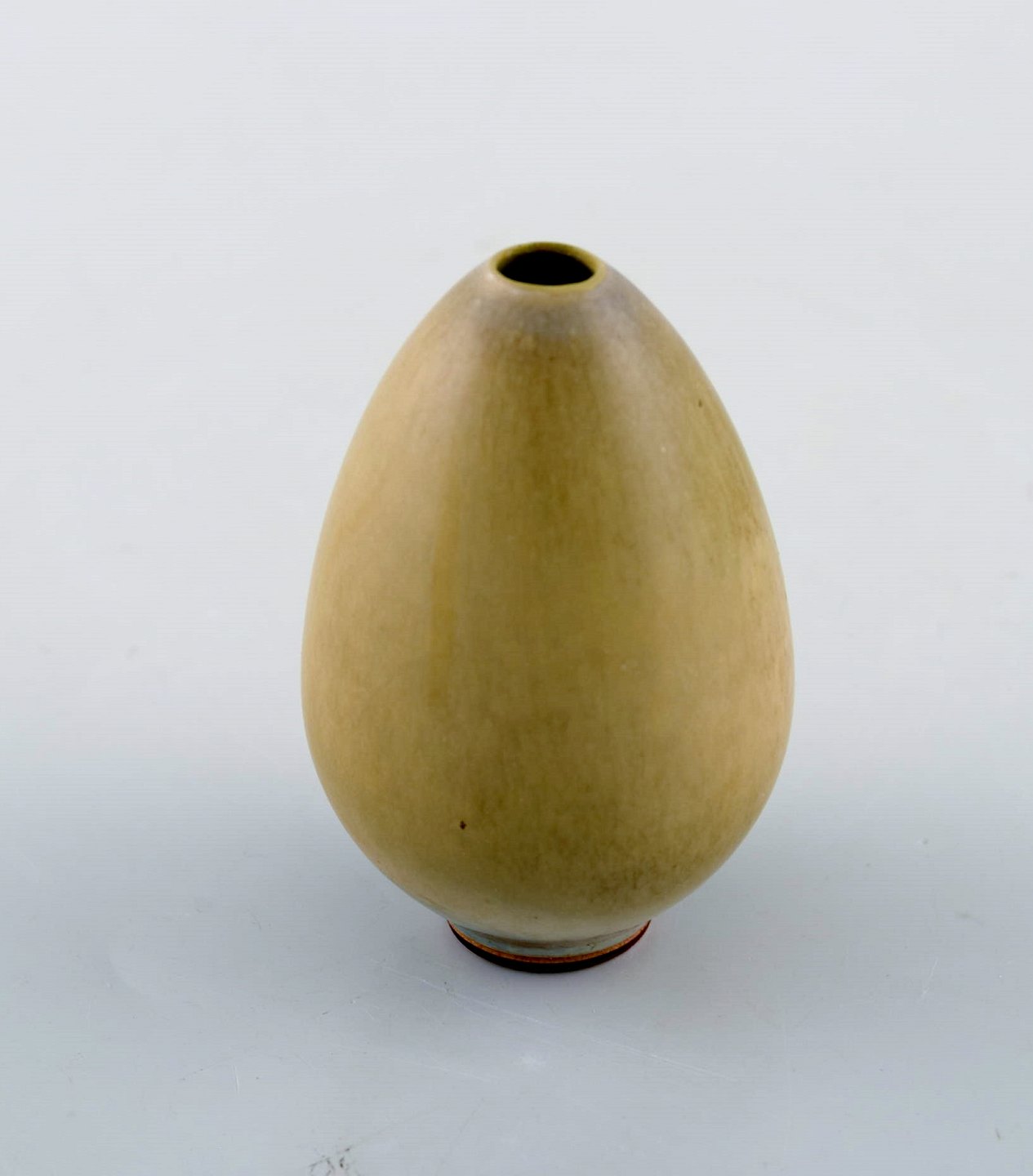 Berndt Friberg (1899-1981), Gustavsberg Studio Hand. 1950/60 s. Rare pottery vase, egg shaped, beautiful glaze in green and yellow shades. Stamped. Measures: 7 x 4,5 cm. In perfect condition.