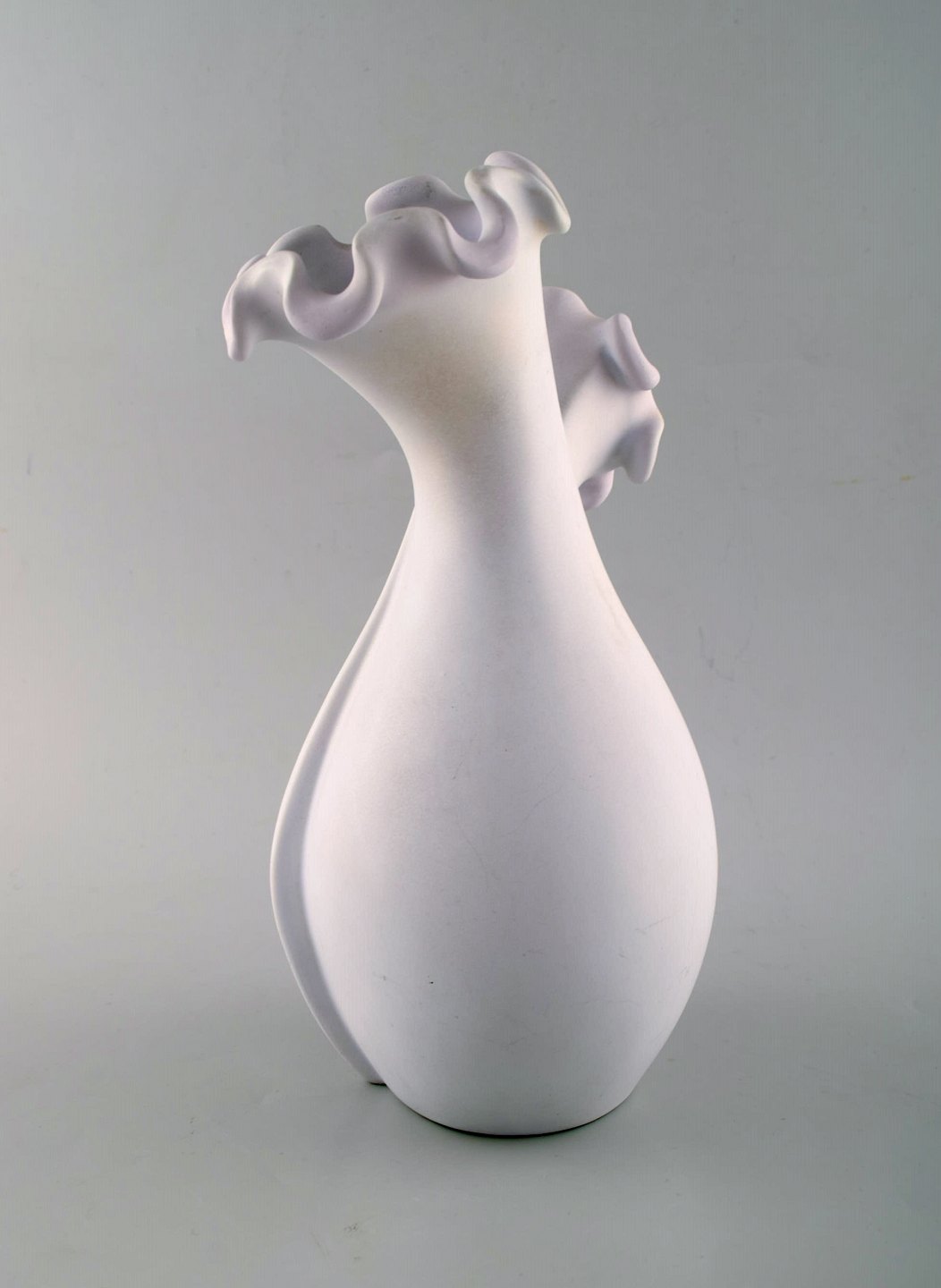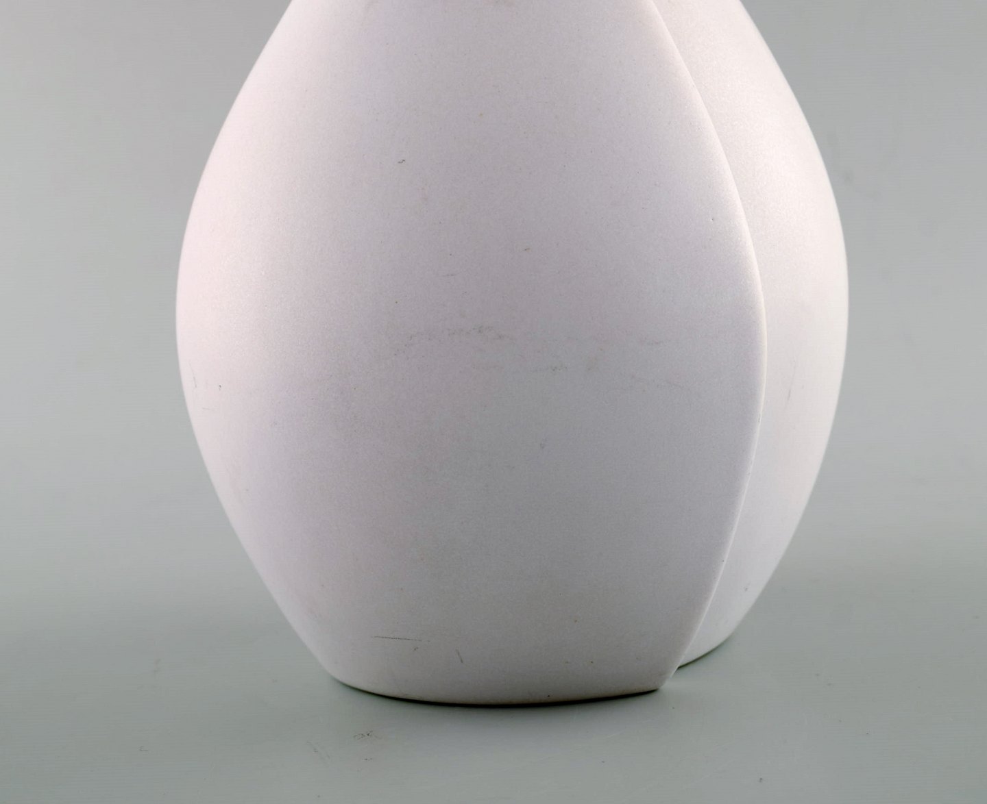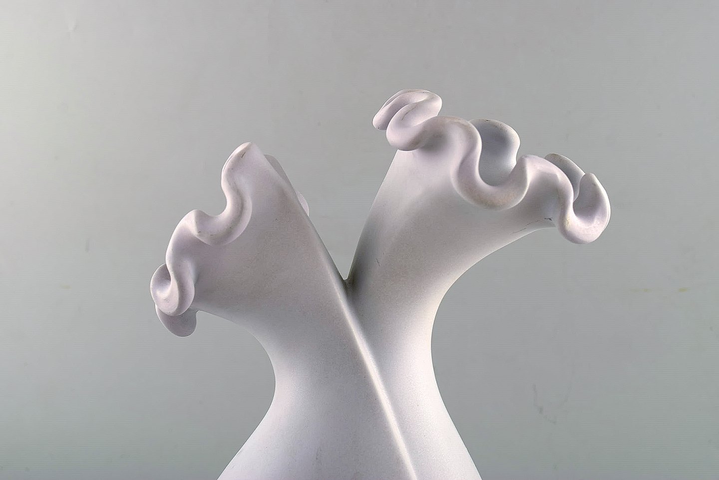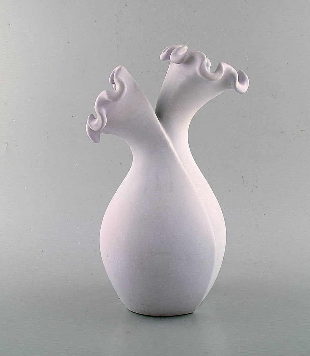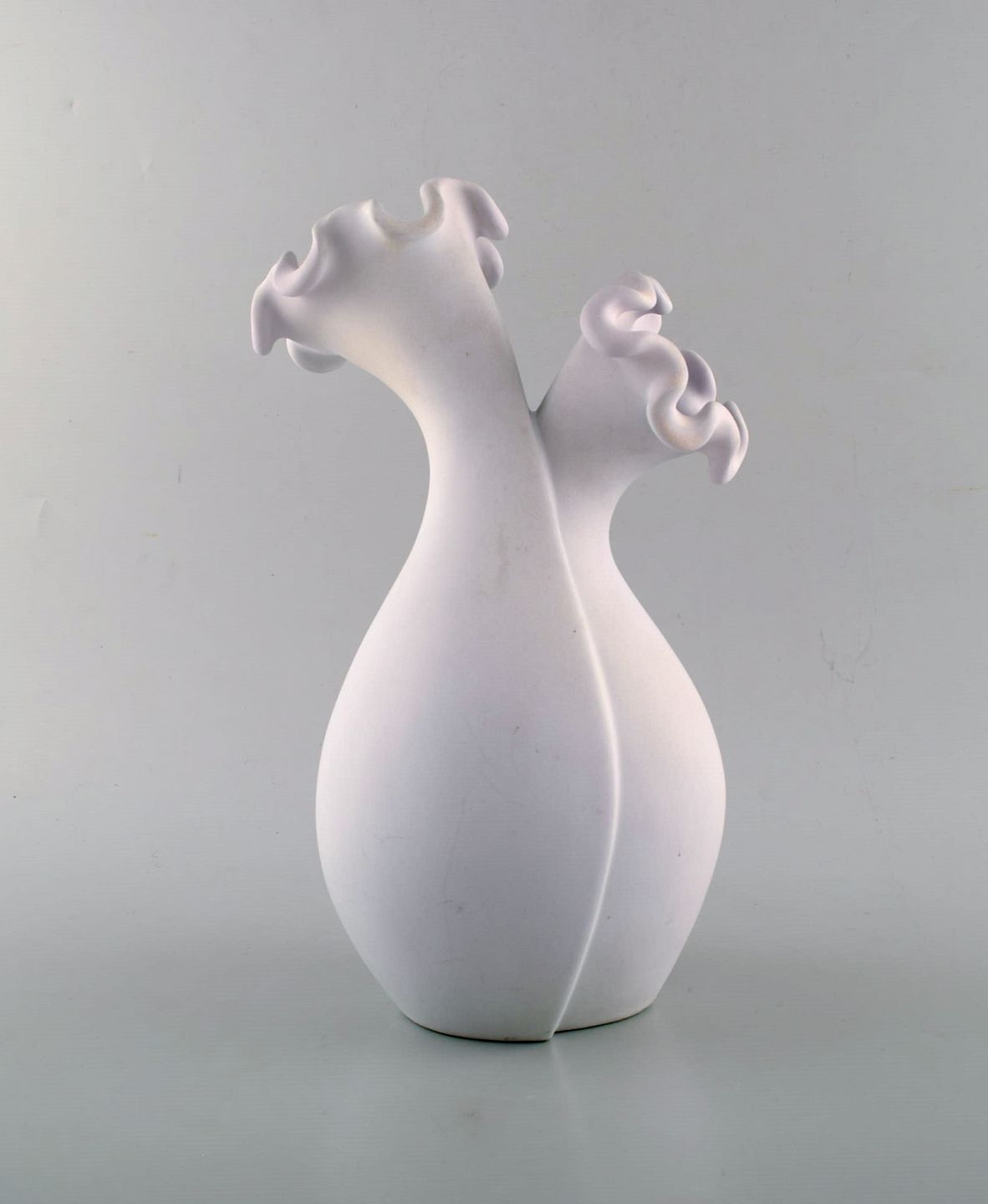 Wilhelm Kåge for Gustavsberg Studio Hand. Large "Våga" ceramic double vase in white carrara glaze. Iconic and surreal design. The Surrea series was designed in 1936.
