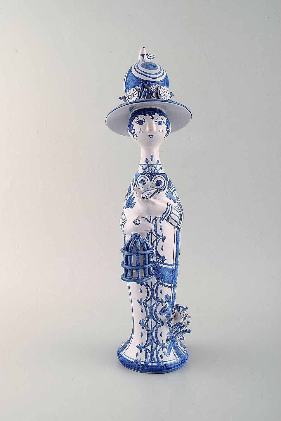 Bjørn Wiinblad's unique ceramic figure. "Spring" in blue "Seasons" 1988. The blue house. Measures: 36 x 10,5 cm. Perfect condition. All four figures from the "Seasons" in stock.