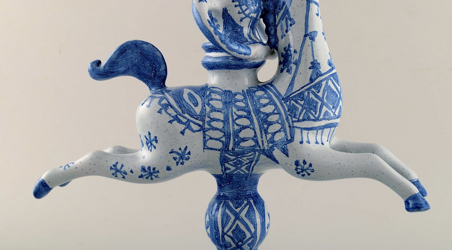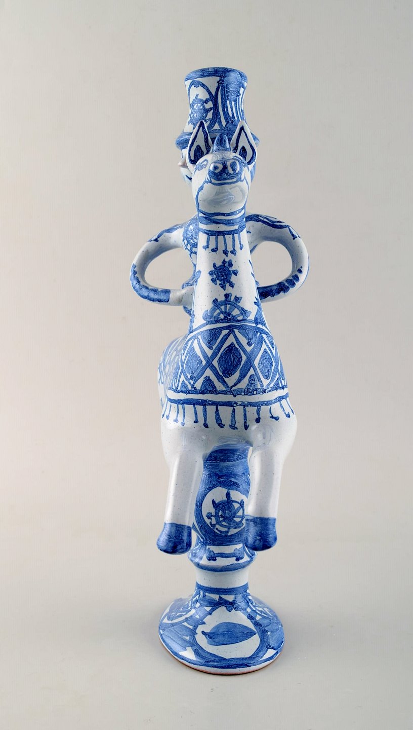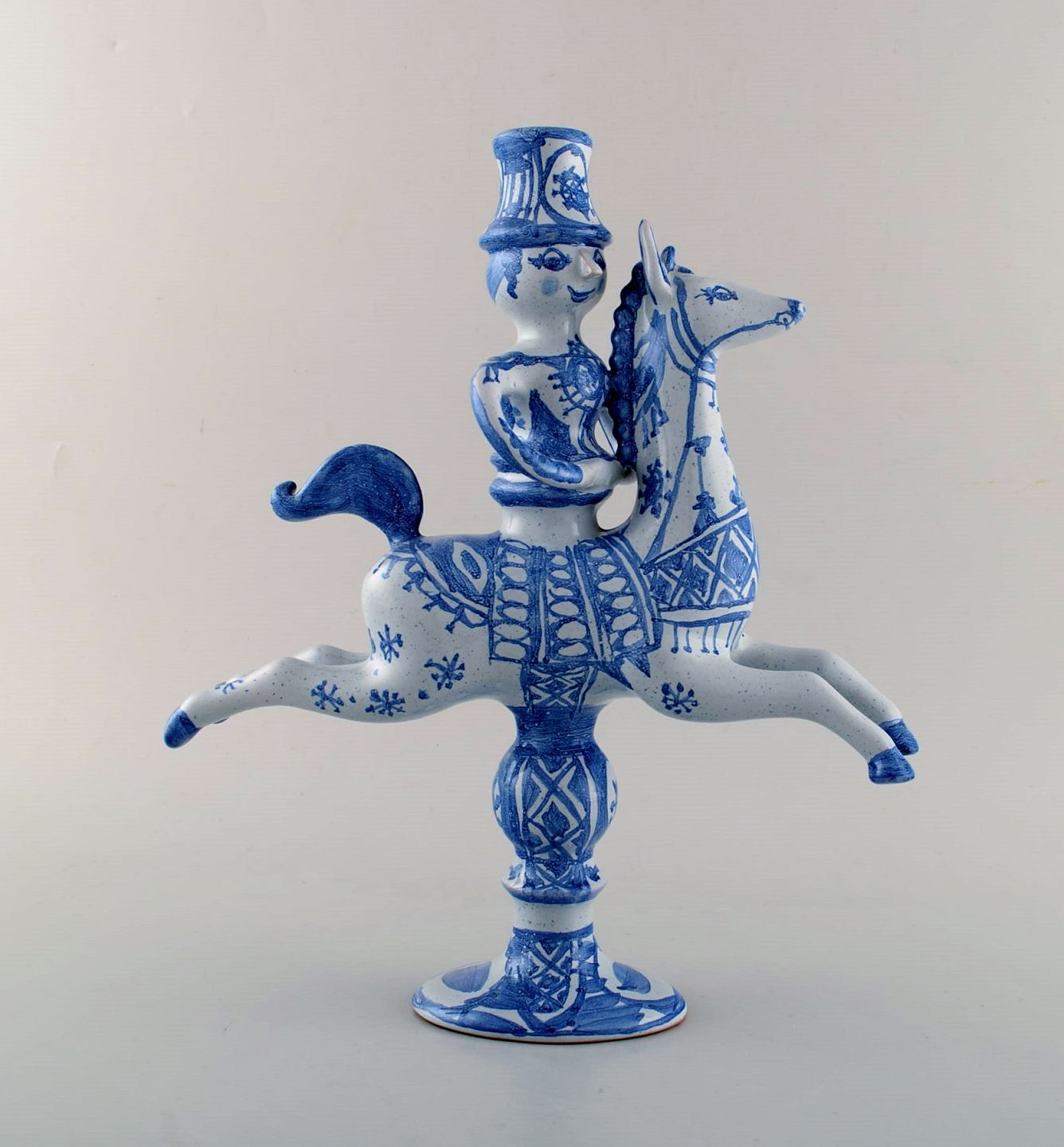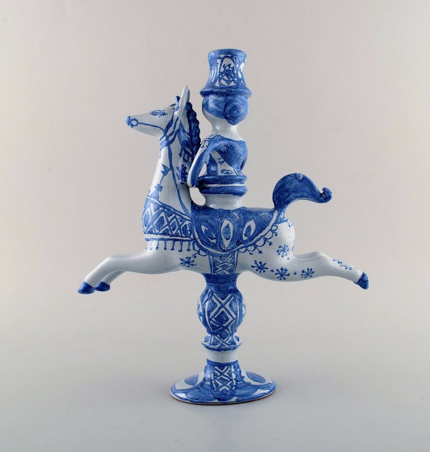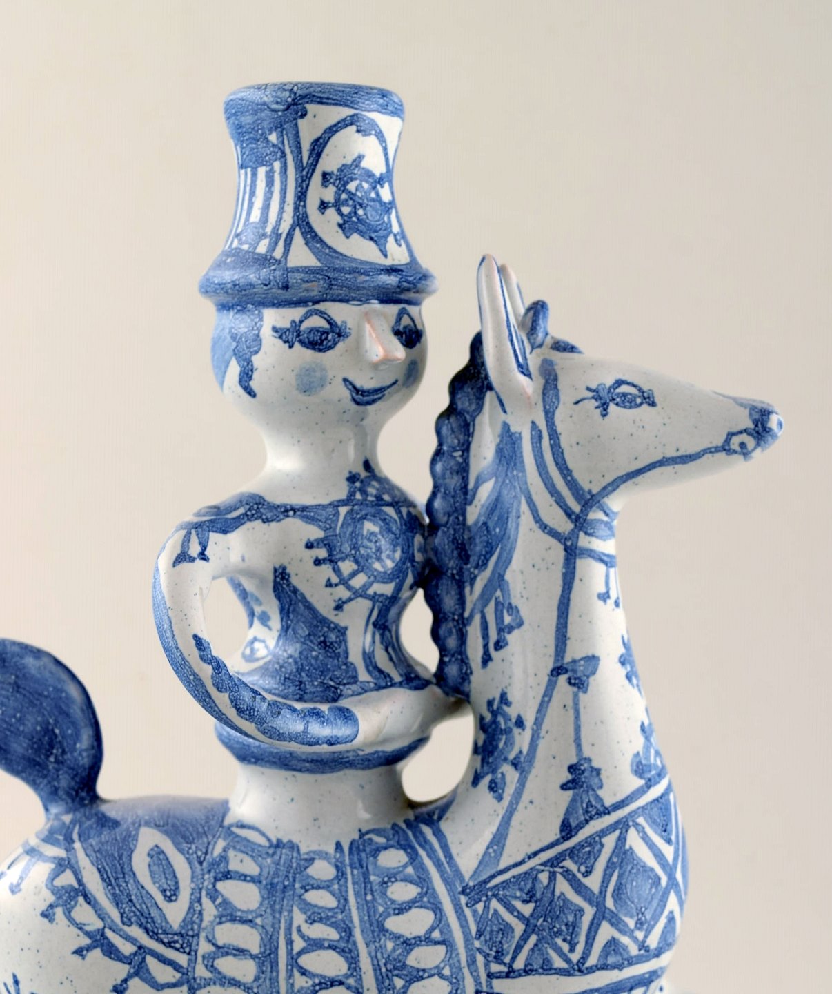 Bjorn Wiinblad figurine from the blue house. Figure / candlestick rider on horseback with space for a light. Decoration number L4. This is from 1974. Measures: 31 x 25 cm. Perfect condition.