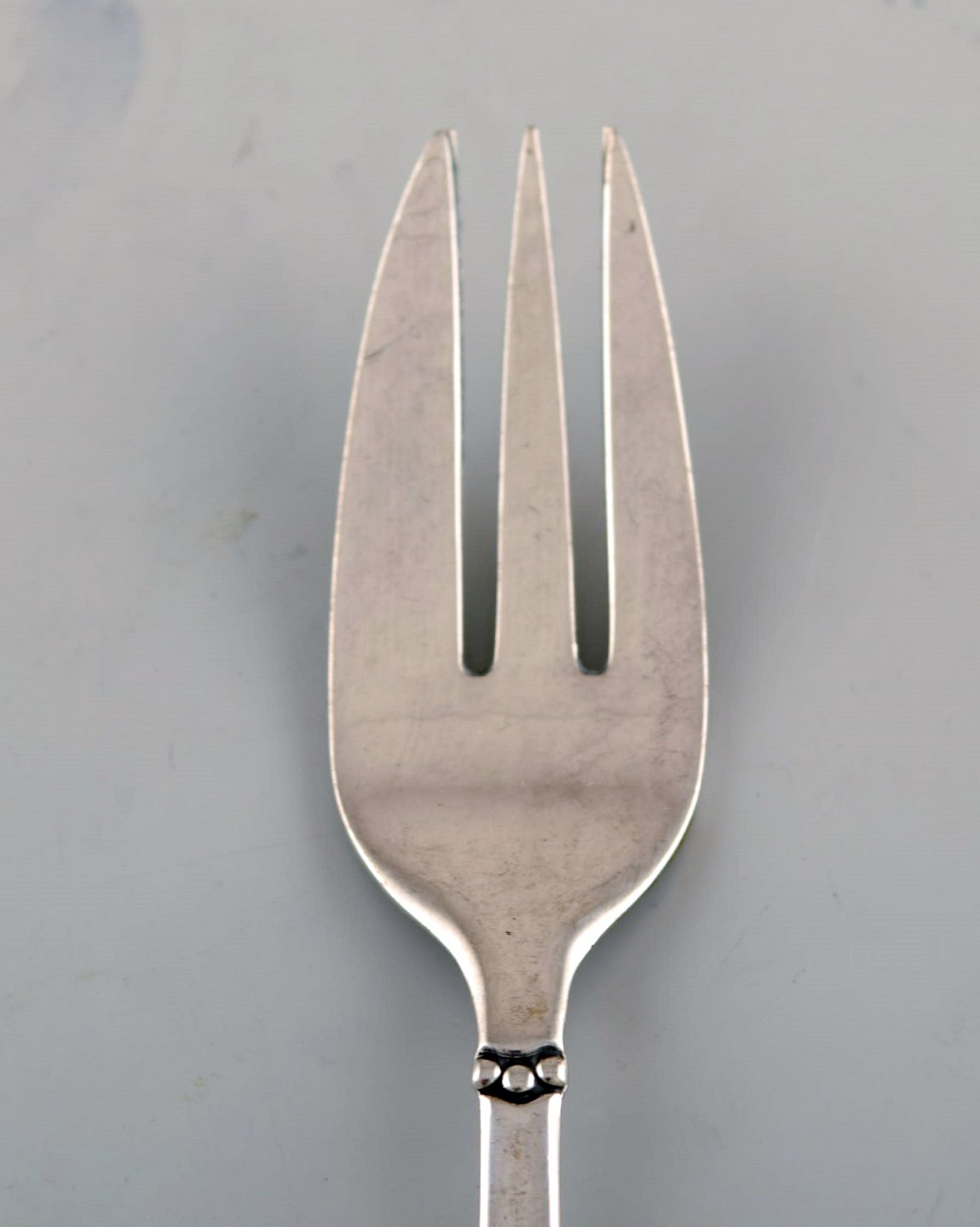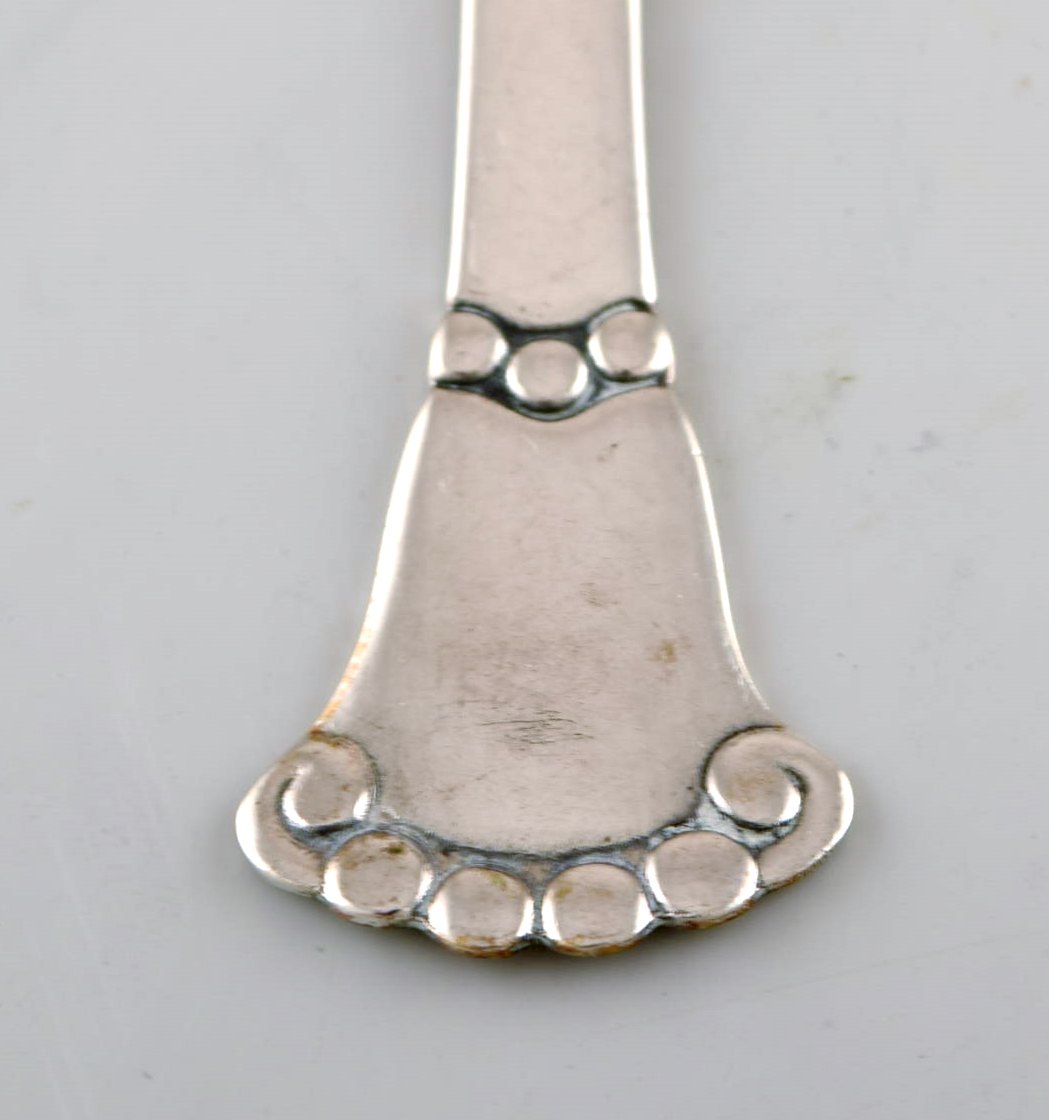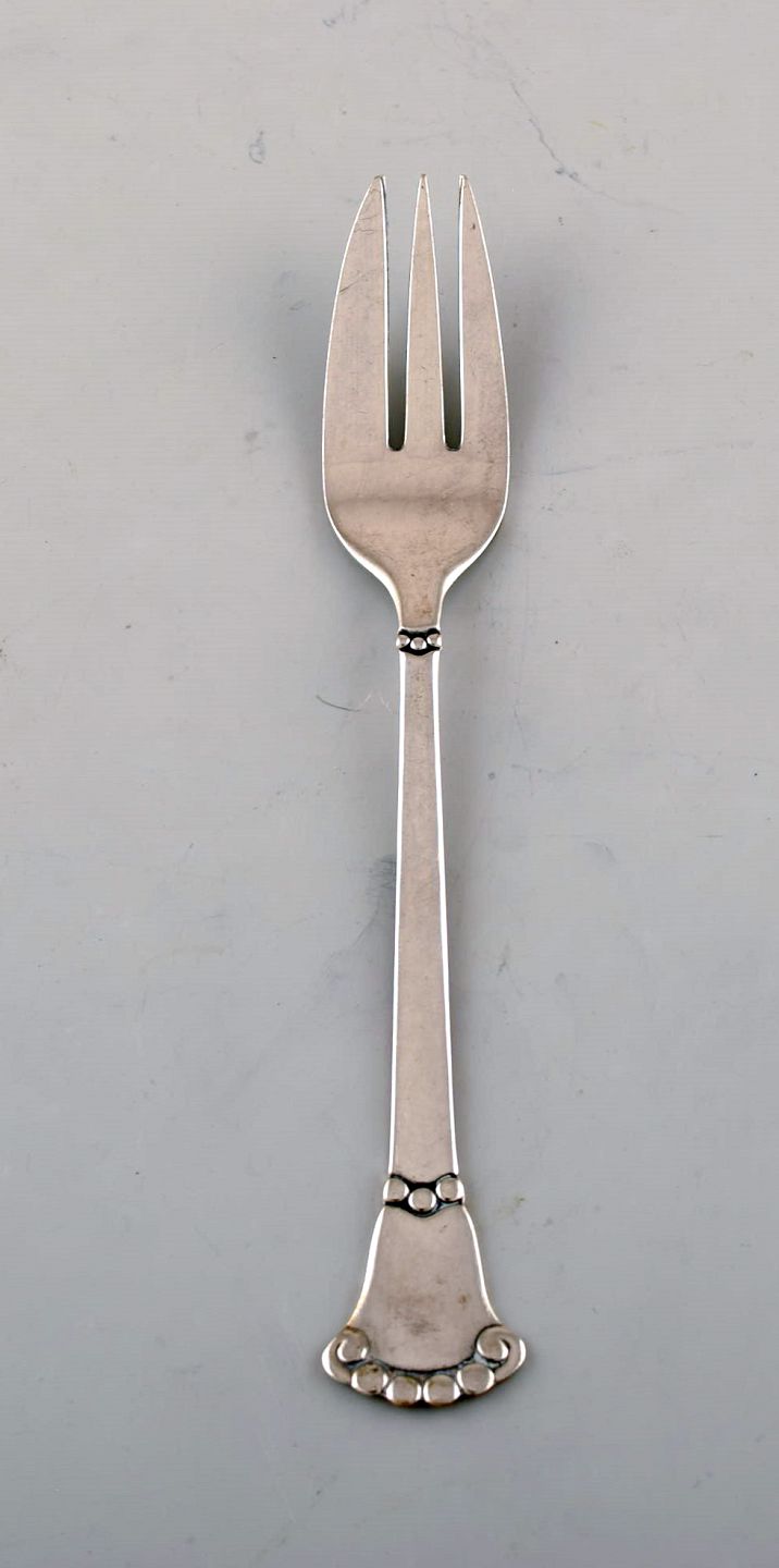 S. Chr. Fogh, 1912-1973. Dansk sølvsmed. "Kugle" kagegaffel i hammerslået sølv. 1930/40'erne. Tre stk. på lager. I flot stand. Måler: 15 cm. Stemplet.
