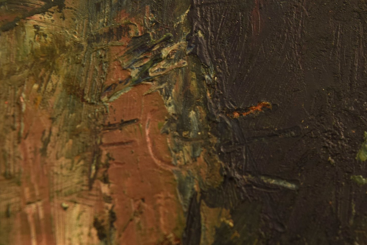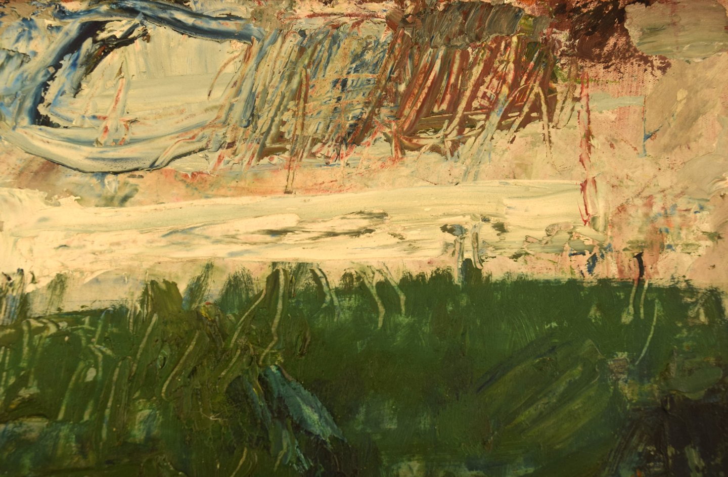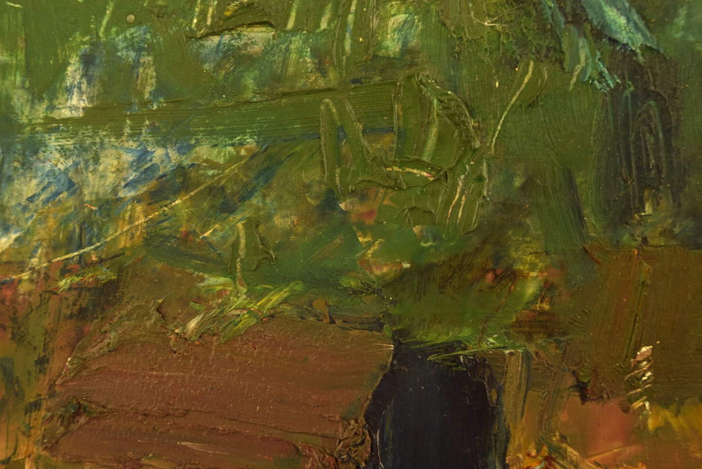 Lili Ege (1913-2004). Dansk kunstmaler. Olie på plade. "Gurostølen" Modernistisk landskab. Dateret 1970. Signeret. I flot stand. Pladen måler: 27 x 20 cm. Rammen måler: 1 cm.