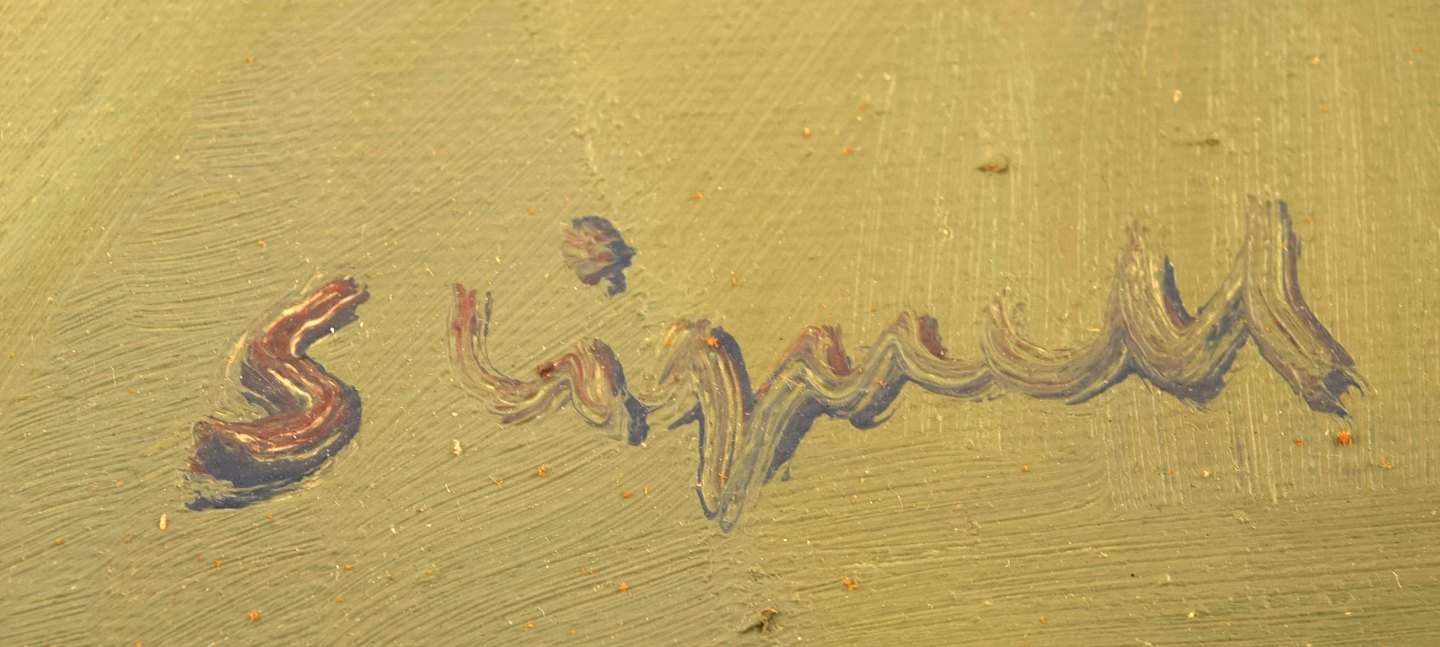 Sven Lignell. Svensk kunstner født 1927. Olie på lærred. Modernistisk landskab. 1960'erne. Signeret. I flot stand. Lærredet måler: 33 x 25 cm. Rammen måler: 4 cm.