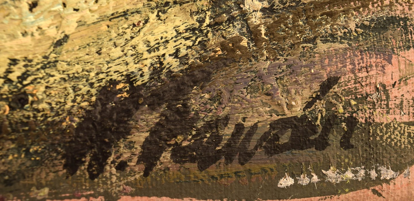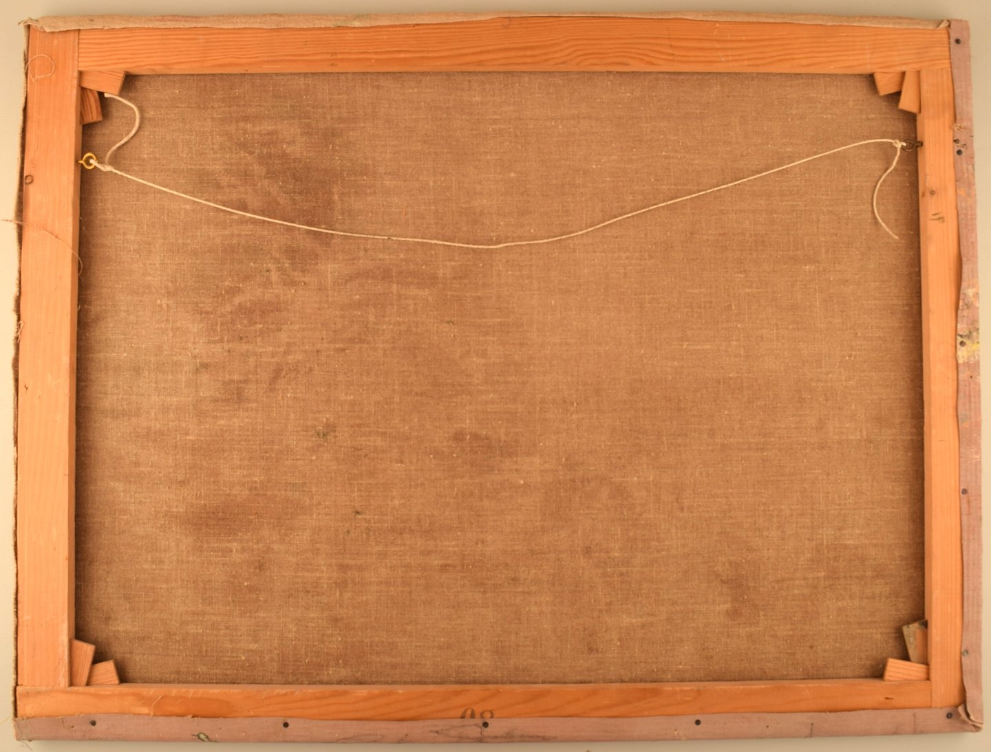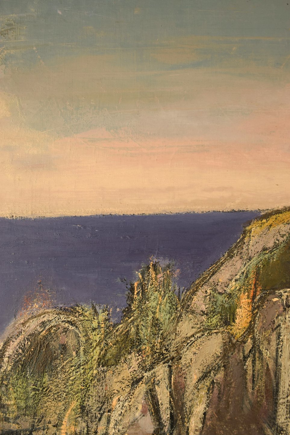 Helge Franzén (1913-2008). Svensk kunstner. Kystlandskab med klipper. Olie på lærred. 1960'erne.