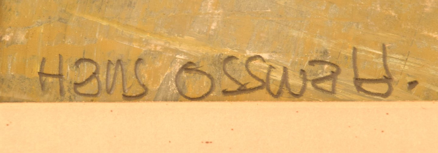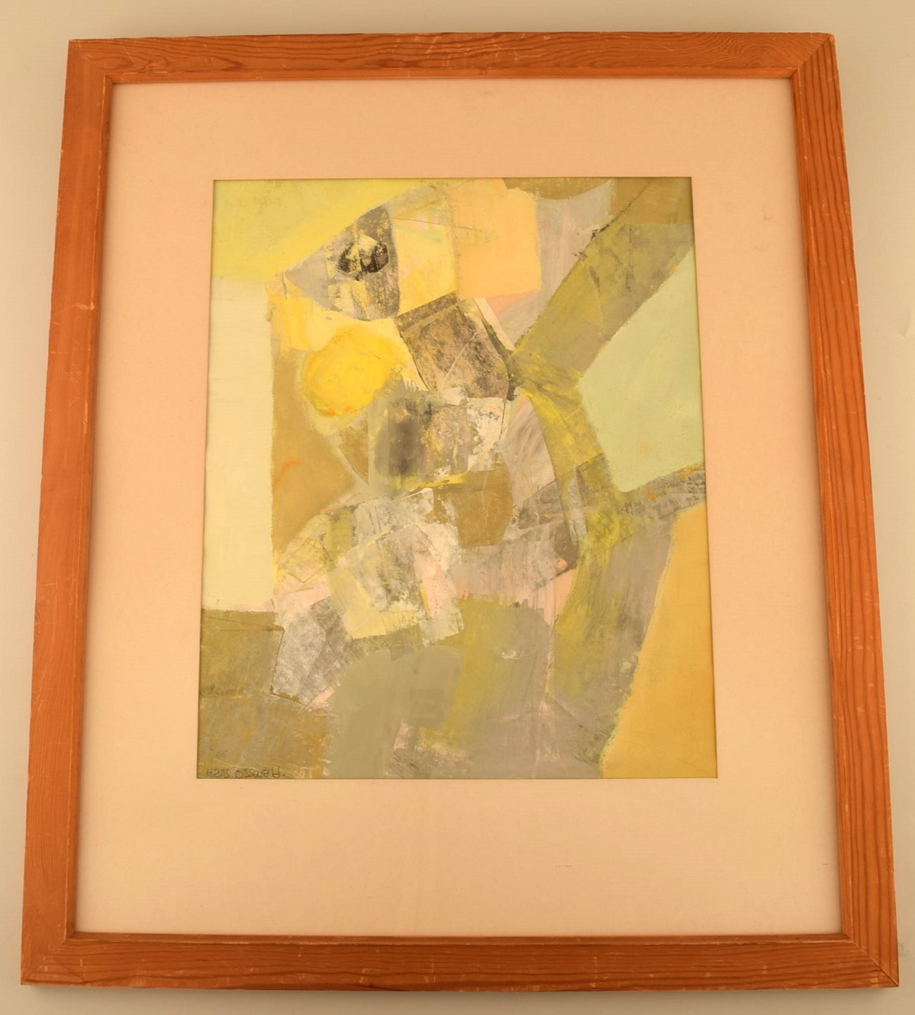 Hans Osswald. Svensk kunstner. Akryl på papir. Dateret 1962. I flot stand. Signeret og dateret. Lysmål: 38 x 31 cm. Totalmål: 53 x 44,5 cm. Rammen måler: 3 cm.