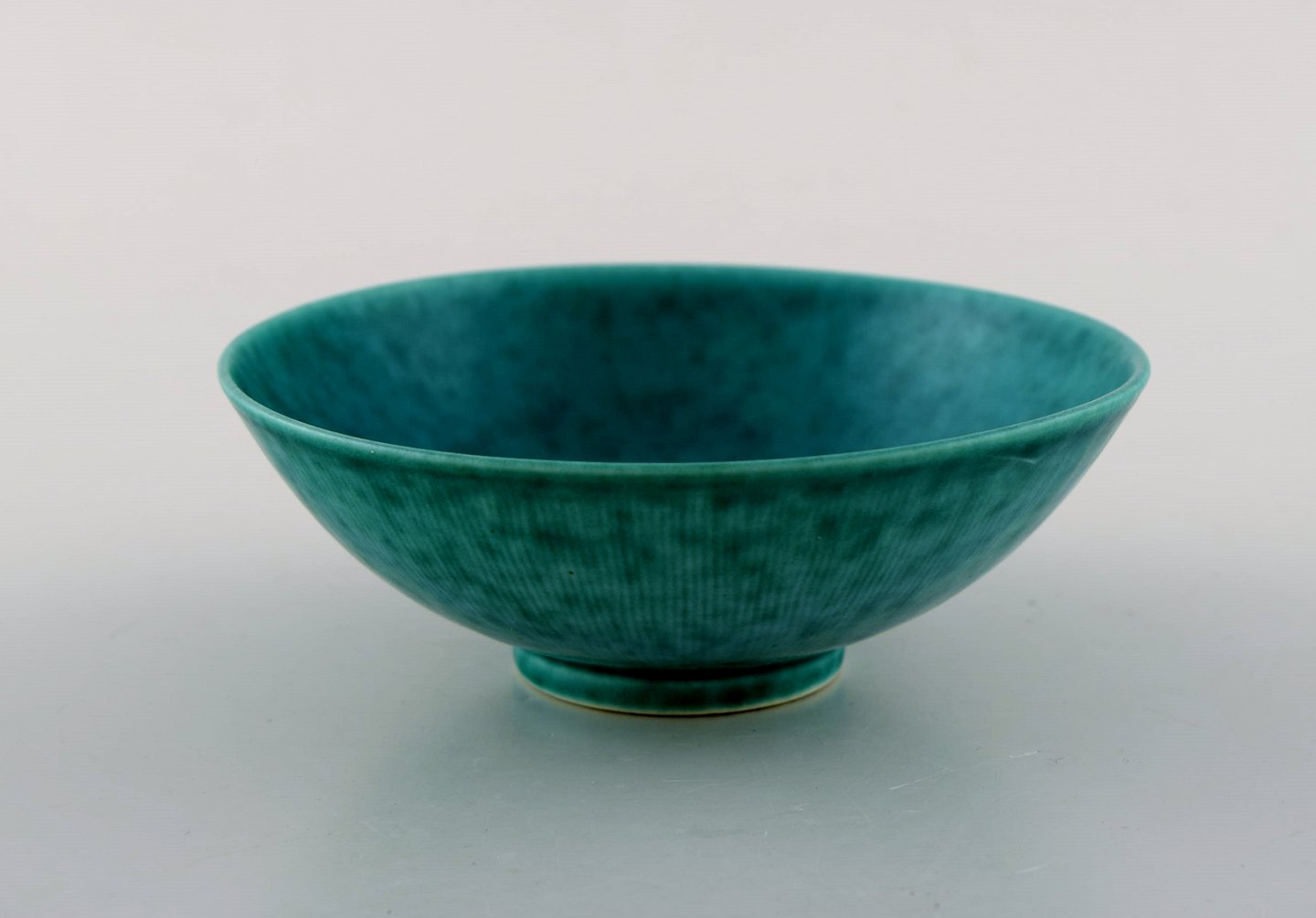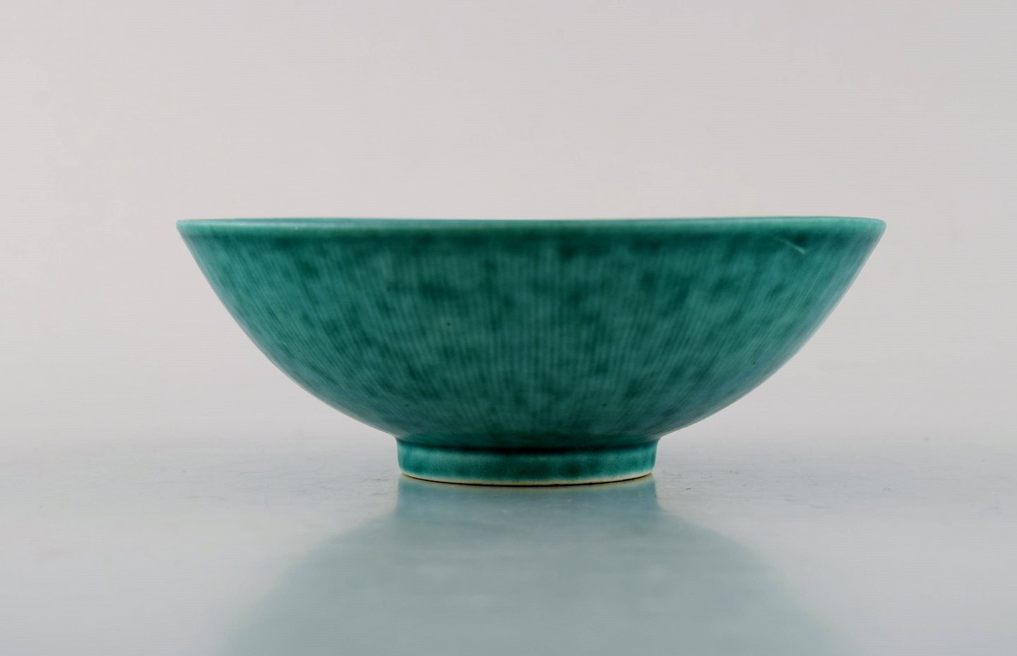 Wilhelm Kåge for Gustavsberg. Three Argenta ceramic bowls. Sweden 1940's. Largest measures: 12.5 x 6 cm. Stamped. In very good condition.
