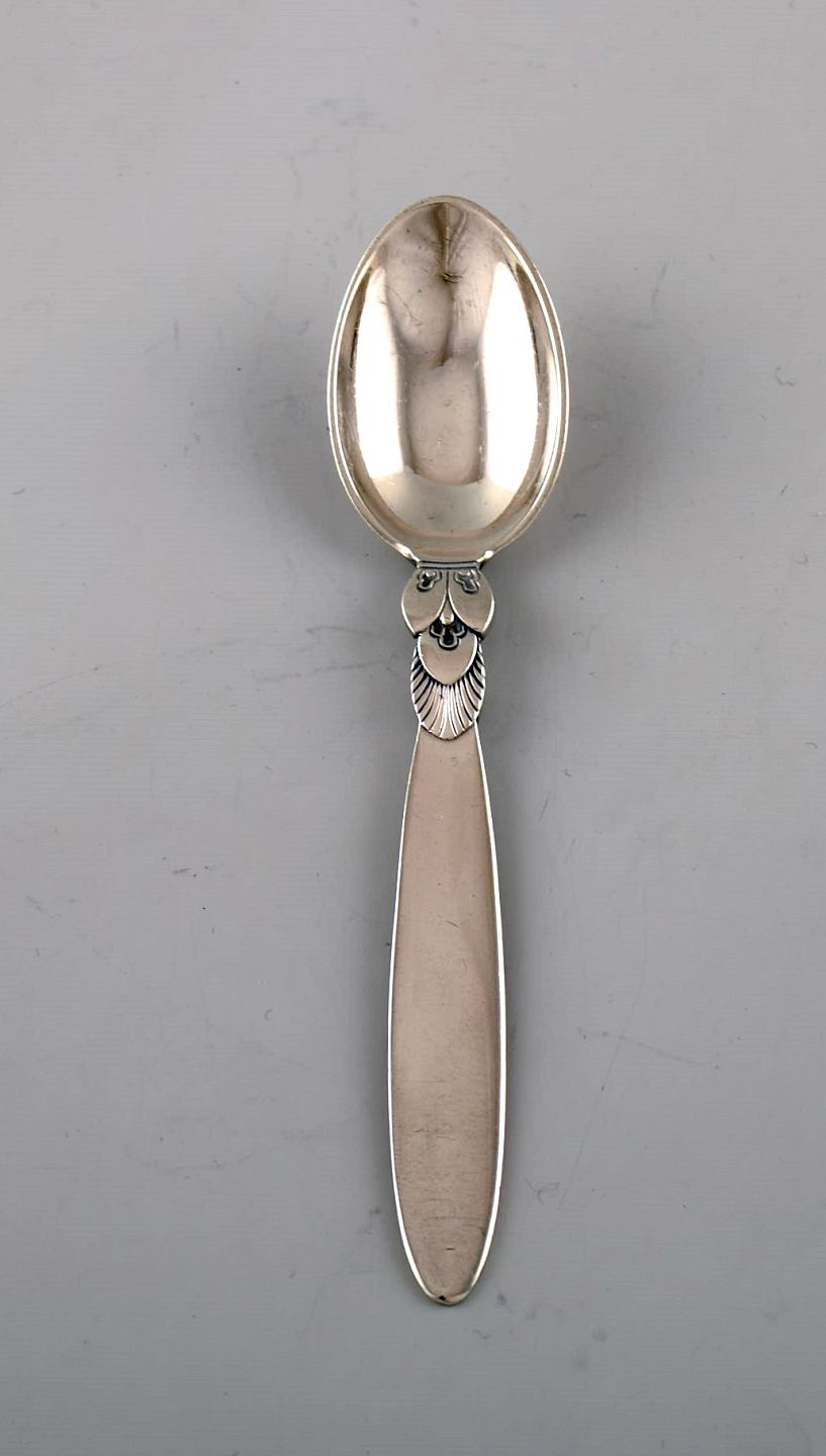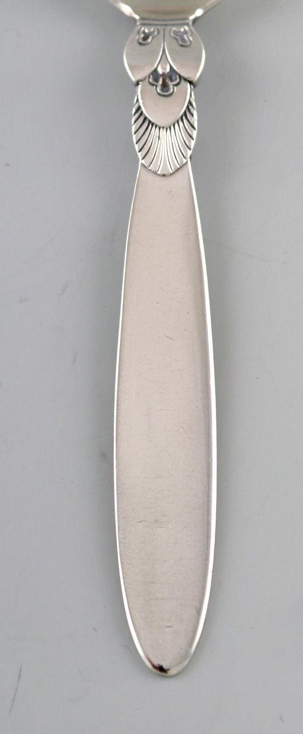 Tidlig Georg Jensen "Kaktus" teske i sterlingsølv. Dateret 1915-30. Fire stk på lager. To stk dateret efter 1945. Designer: Gundorph Albertus. Længde: 12,3 cm. Tidligt stempel: 1915-30. I flot stand.